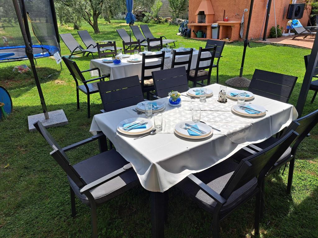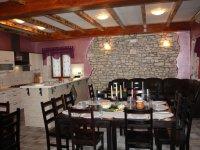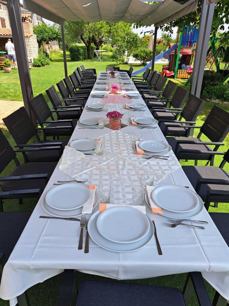 De traditionele Istrische architectuur is behouden gebleven, met toevoeging van onderdelen in een modernere stijl, wat heeft geresulteerd in een rustiek gebouw dat traditie uitstraalt en voldoet aan de moderne eisen van de hedendaagse gast. Op de begane grond bevindt zich het plattelandstoerisme waar gasten kunnen genieten van ontbijt of halfpension. Voor het ontbijt bieden wij autochtone delicatessen aan, voornamelijk onze eigen productie van verschillende soorten jam, brood, vleeswaren, kazen, yoghurt, fruit, zoete desserts, we bieden ook een bio-ontbijt aan, evenals een ontbijt op basis van speciale behoeften. Voor het diner bereiden we typisch Istrische gerechten (diverse fuji-pasta, gnocchi, ravioli, lasagne met verschillende sauzen en stoofschotels, en diverse vleesschotels met onze producten, kaas, prosciutto). In het plattelandstoerisme is er een prachtige open haard, een ruimte voor gezelligheid en rust, die, vooral in de winterperiode, deze sfeer zal versterken met de gastvrijheid van de gastheren. Naast gasten op accommodatie in ons plattelandstoerisme accepteren wij ook aangekondigde groepen van maximaal 30 personen voor alle gelegenheden.