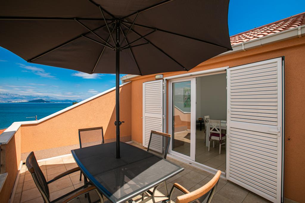 Mooi ingericht appartement met een groot terras en een prachtig uitzicht op zee. Het appartement ligt direct aan zee met een mooi strand en een rustige omgeving. Zeer vriendelijke gastheren. We kijken ernaar uit om volgend jaar terug te komen!