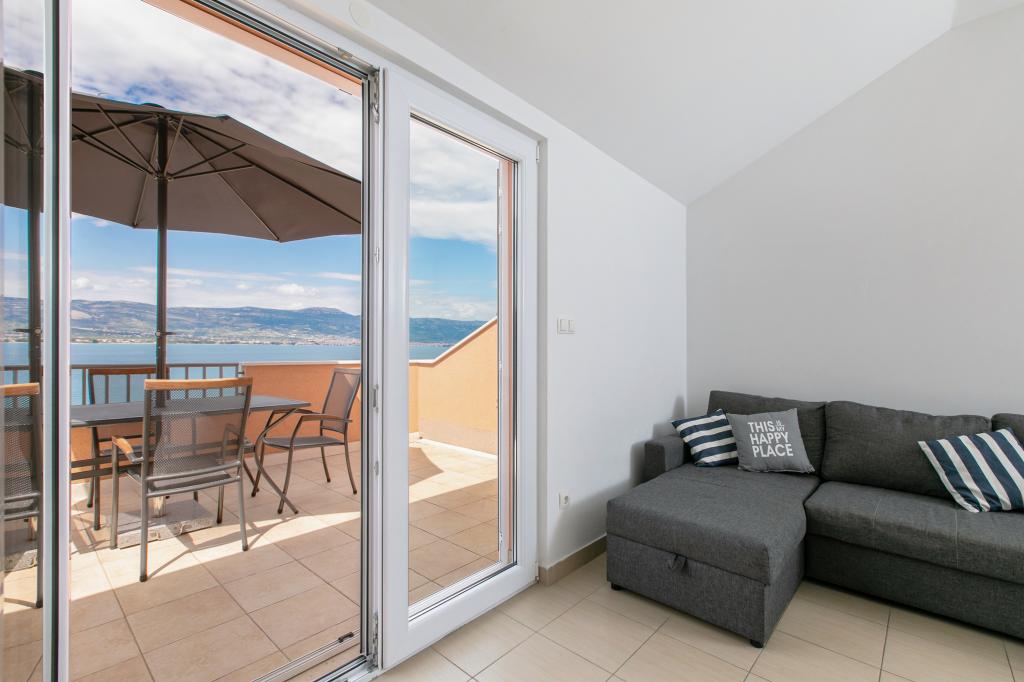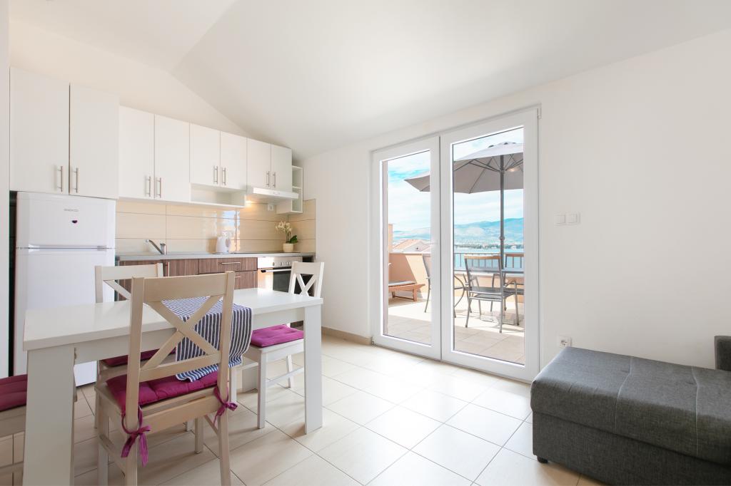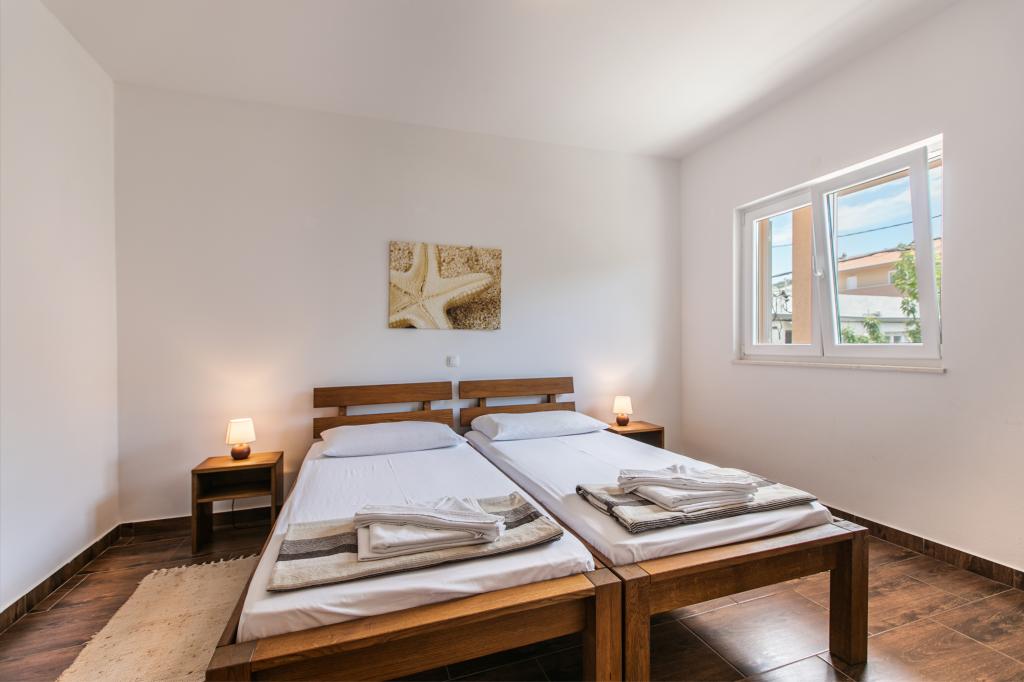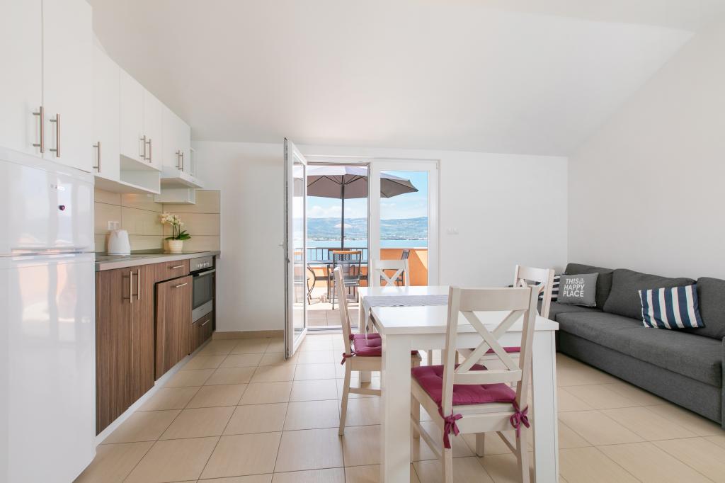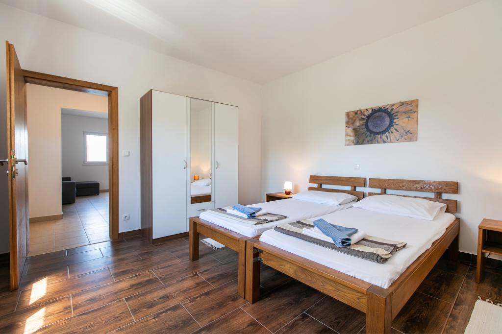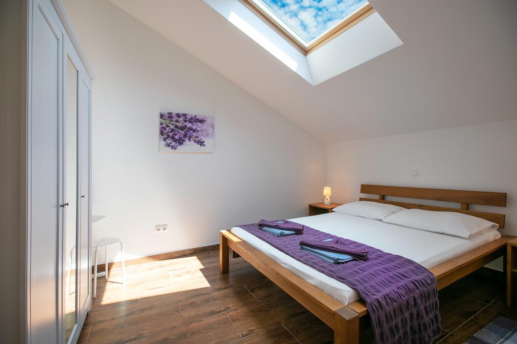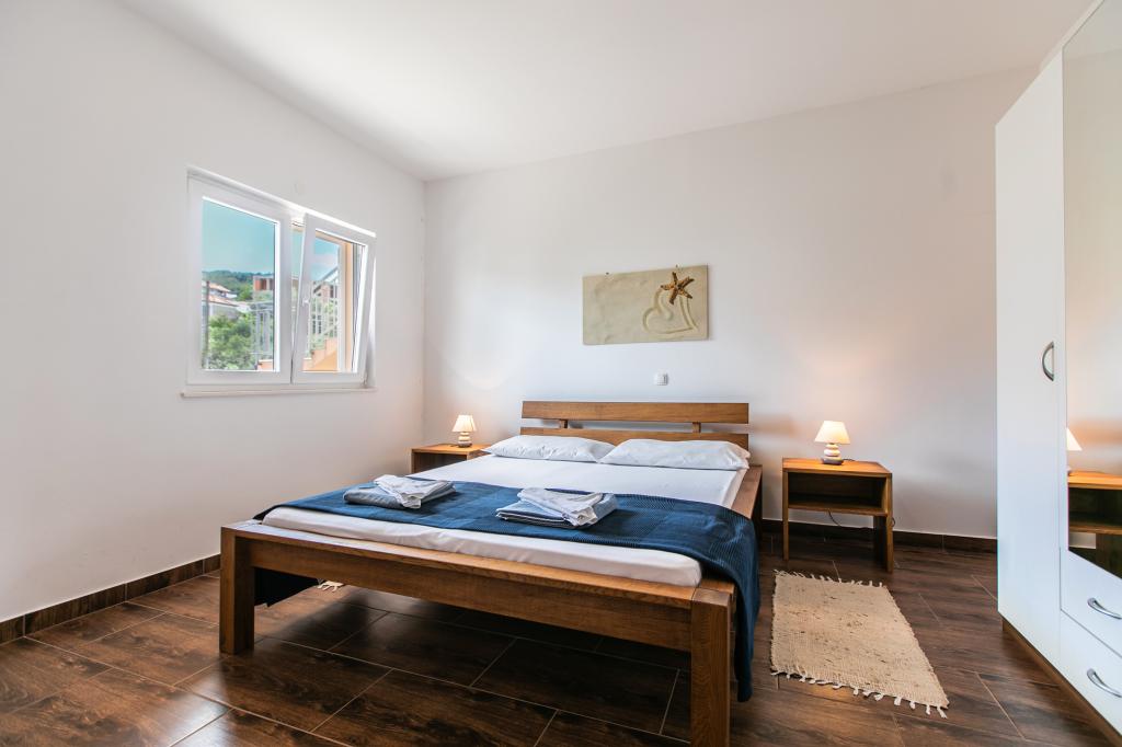 Wij zijn gevestigd in Arbanija op het eiland Ciovo. De appartementen zijn nieuw gebouwd in een huis op de eerste rij aan zee. In de tuin is er een zomerkeuken met open haard die beschikbaar is voor gebruik door gasten. De appartementen zijn comfortabel en modern ingericht. Appartementen 4 2 bestaan uit twee slaapkamers en een slaapbank in de woonkamer. Appartement 2 2, gelegen op de zolder van het huis, heeft een slaapkamer en een slaapbank in de woonkamer. Alle appartementen naast de badkamer hebben een apart klein toilet. In alle appartementen is gratis WiFi beschikbaar. Breng uw familievakantie bij ons door!
