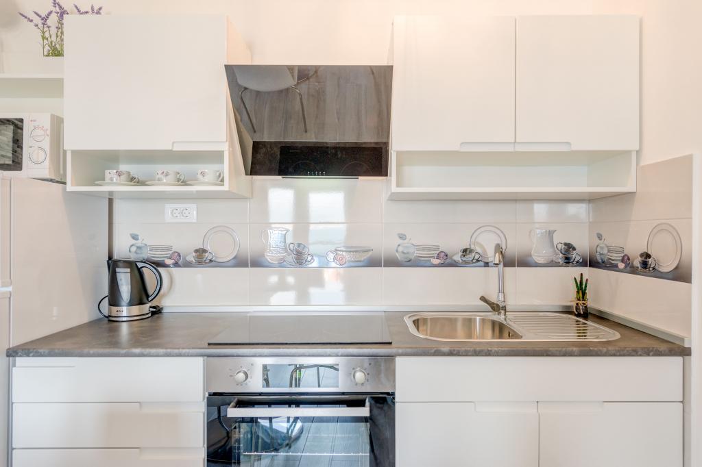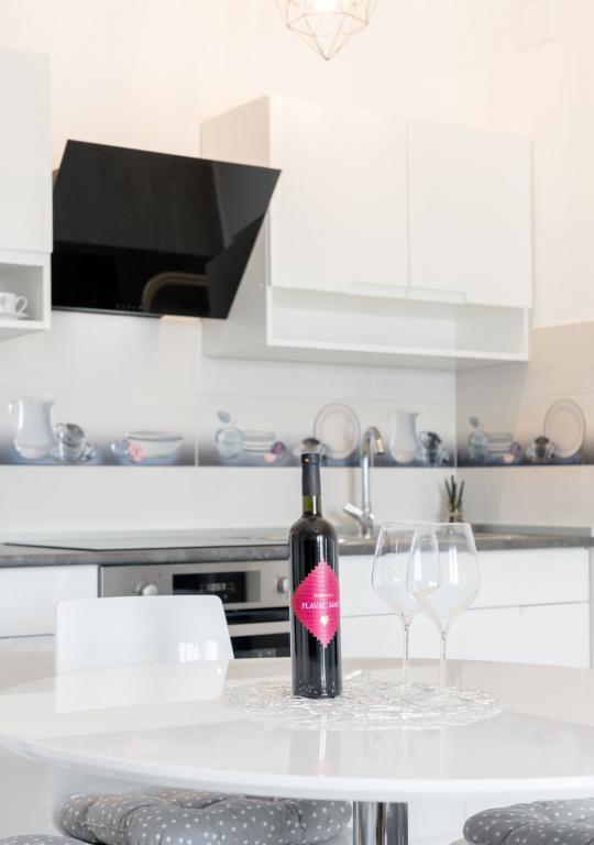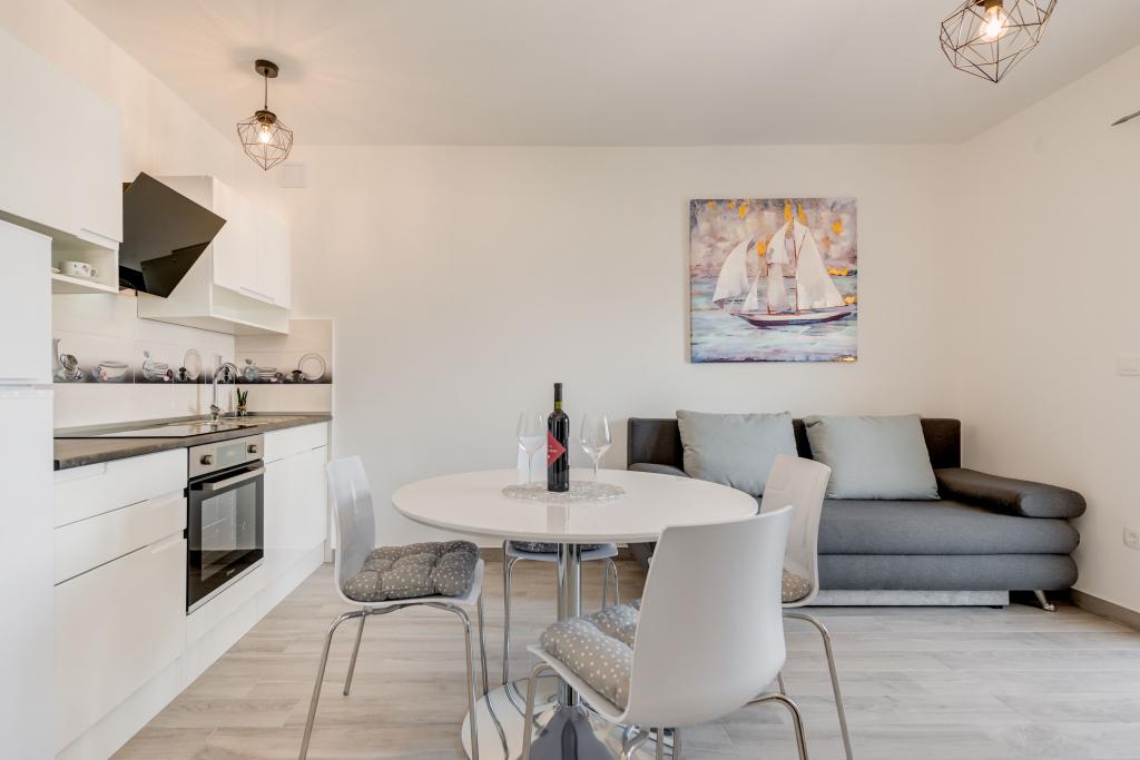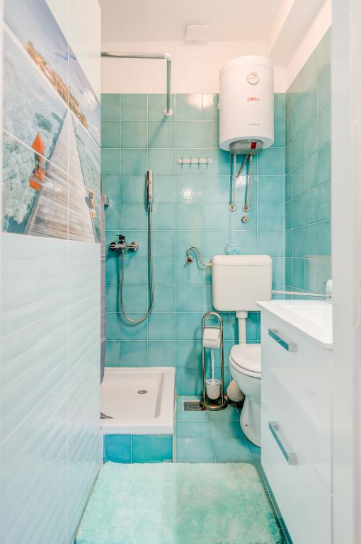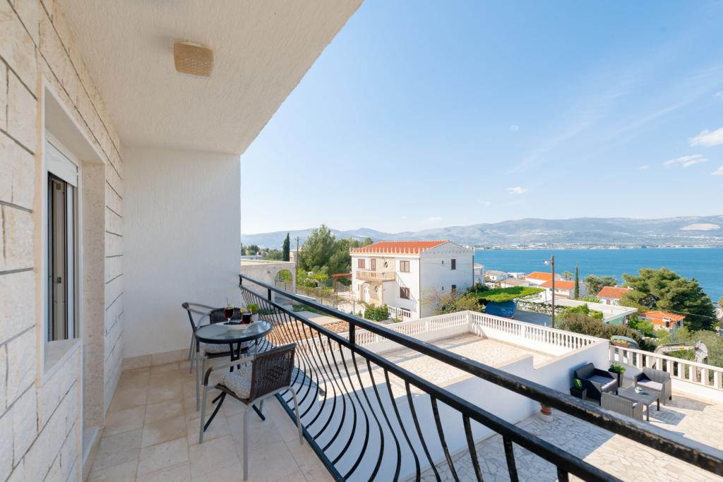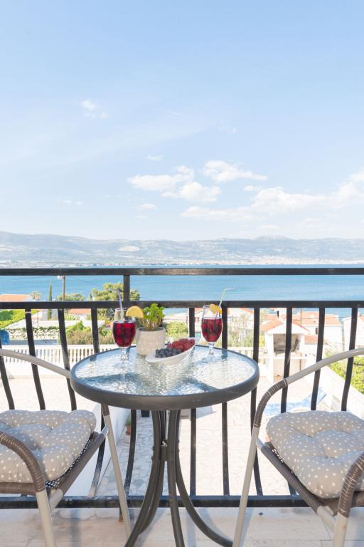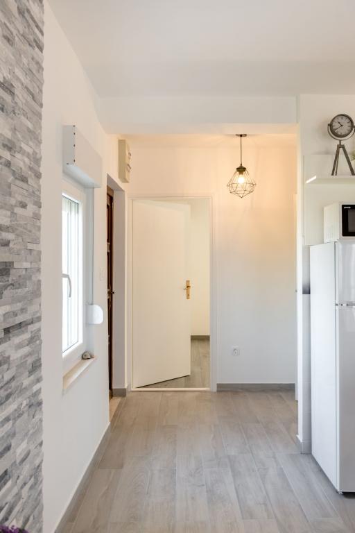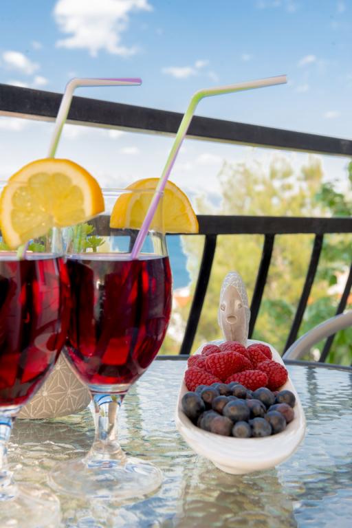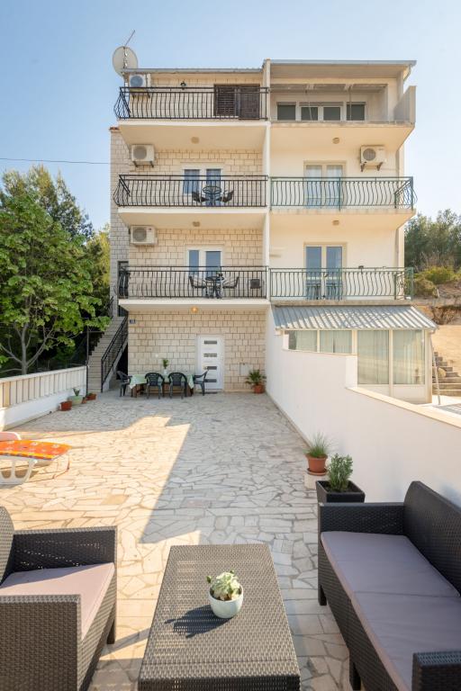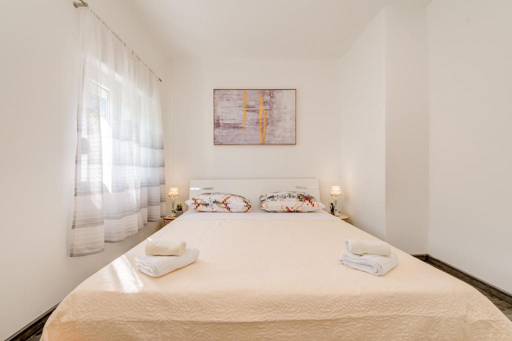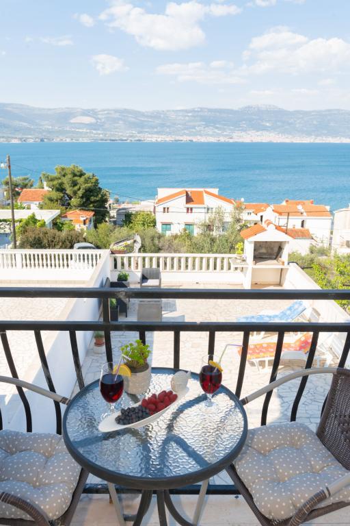 Stenen huis begane grond en drie verdiepingen met een groot terras en open haard op 70 meter van de zee. De eerste en tweede verdieping of het eerste en tweede appartement zijn te huur. Beide appartementen zijn even uitgerust en bestaan uit een slaapkamer, woonkamer met slaapbank, keuken uitgerust met alles wat nodig is voor het bereiden van voedsel, waaronder een magnetron, badkamer en balkon met prachtig uitzicht op zee. Daarnaast is er op aanvraag een extra bed en een draagbaar babybedje. Onbeperkt internet, slimme satelliet-tv. Airconditioning zonder extra kosten.