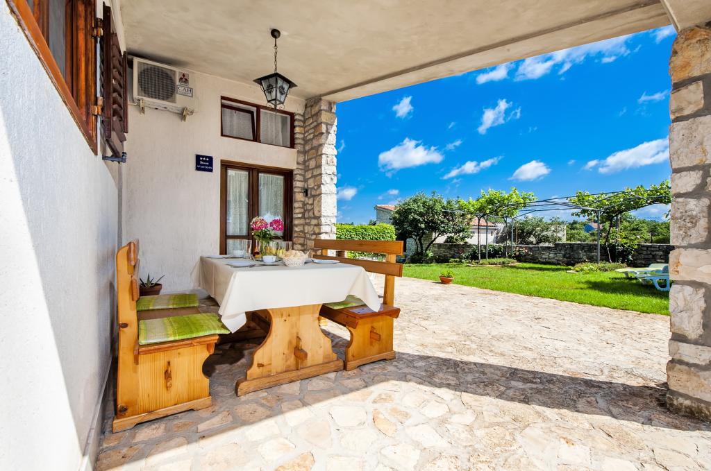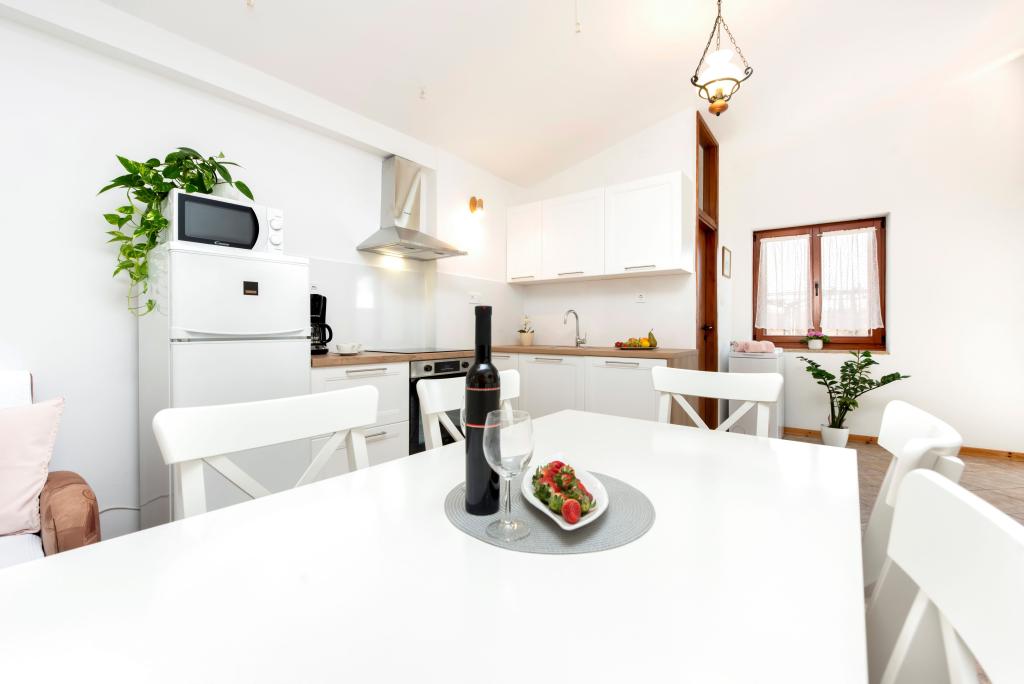 Huis Nino ligt in het dorp Krmed, een nederzetting 7 km ten noordoosten van de gemeente Bale. Het ligt aan de provinciale weg Bale-Smoljanci-Svetvinčenat. Het is slechts 8 minuten rijden naar Bal en 25 minuten naar Rovinj. Als u op zoek bent naar accommodatie ver weg van het stadslawaai, maar tegelijkertijd dicht genoeg bij alle omliggende bestemmingen, dan is dit de perfecte keuze voor u. Het dichtstbijzijnde strand in Bala (Colone of San Polo) ligt op slechts 13 km rijden met de auto, en het strand van Cisterna ligt op 16 km afstand. Het hele huis, de tuin, de houtskool- en houtgrill staan tot uw beschikking. Ideale accommodatie voor een gezin met kinderen en huisdieren. Het huis is gebouwd in de karakteristieke Istrische stijl en is bedekt met steen. Het is ons erfgoed en daarom zijn wij er bijzonder aan gehecht. Het heeft twee slaapkamers, woonkamer en keuken, badkamer en overdekt terras. Voor het huis ligt een omheinde tuin waar u in alle rust kunt verblijven. Huisdieren zijn welkom! Wij wonen in Rovinj en komen op afspraak naar Krmed. Wij respecteren uw privacy