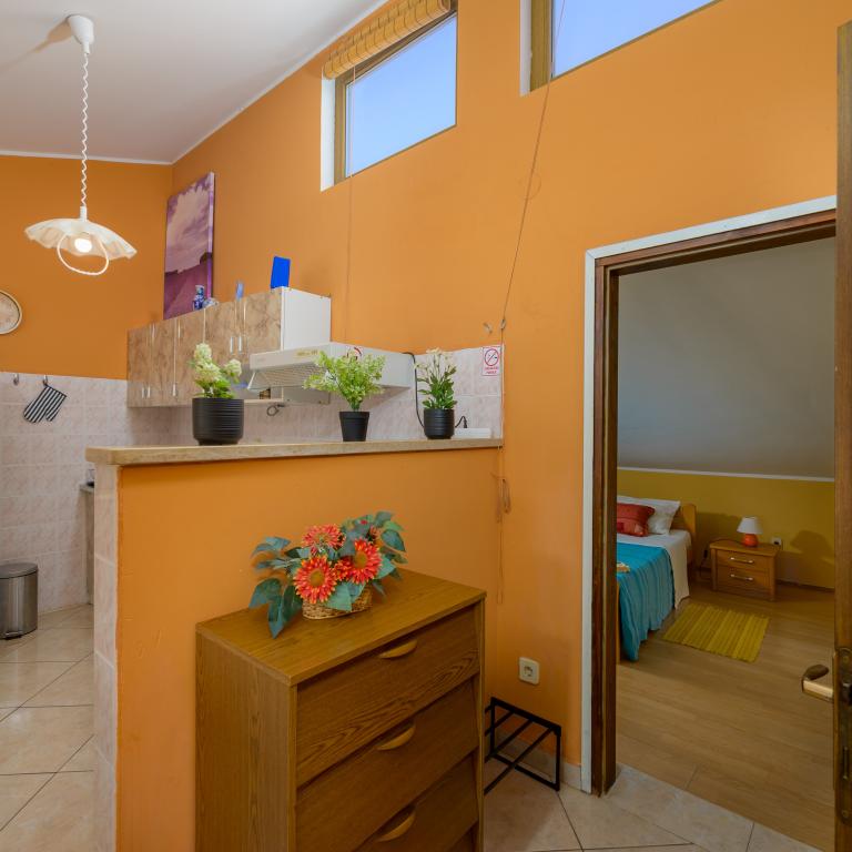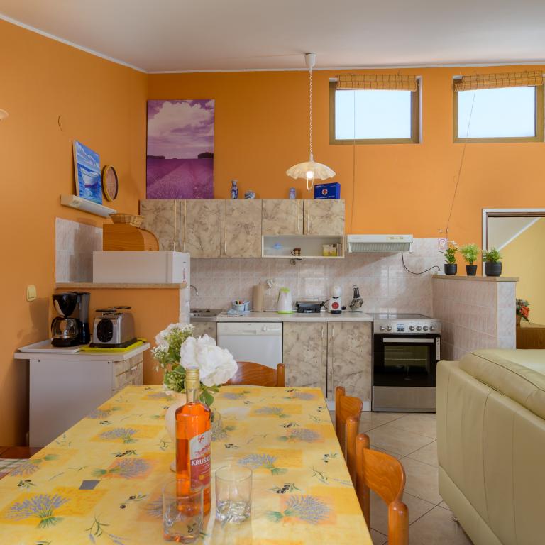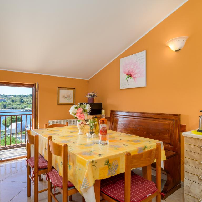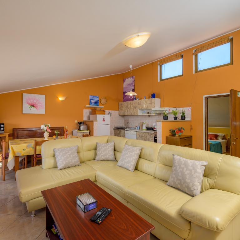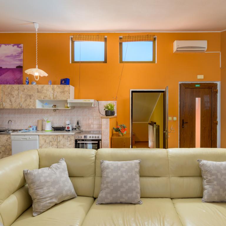 Appartement gelegen op de eerste rij aan zee, op de eerste verdieping, met een terras en een prachtig uitzicht op de blauwe zee en de lucht. Het ligt in een rustig deel van Banjole, het dorp Volme, stil en vredig, dichtbij alle voorzieningen. 5 minuten naar het strand, en 15 minuten naar het hotel aan de andere kant van de kust. nabijgelegen fietspaden leiden naar het Kamenjak Nationaal Park. Pula ligt op drie kilometer afstand en Premantura op vier kilometer.