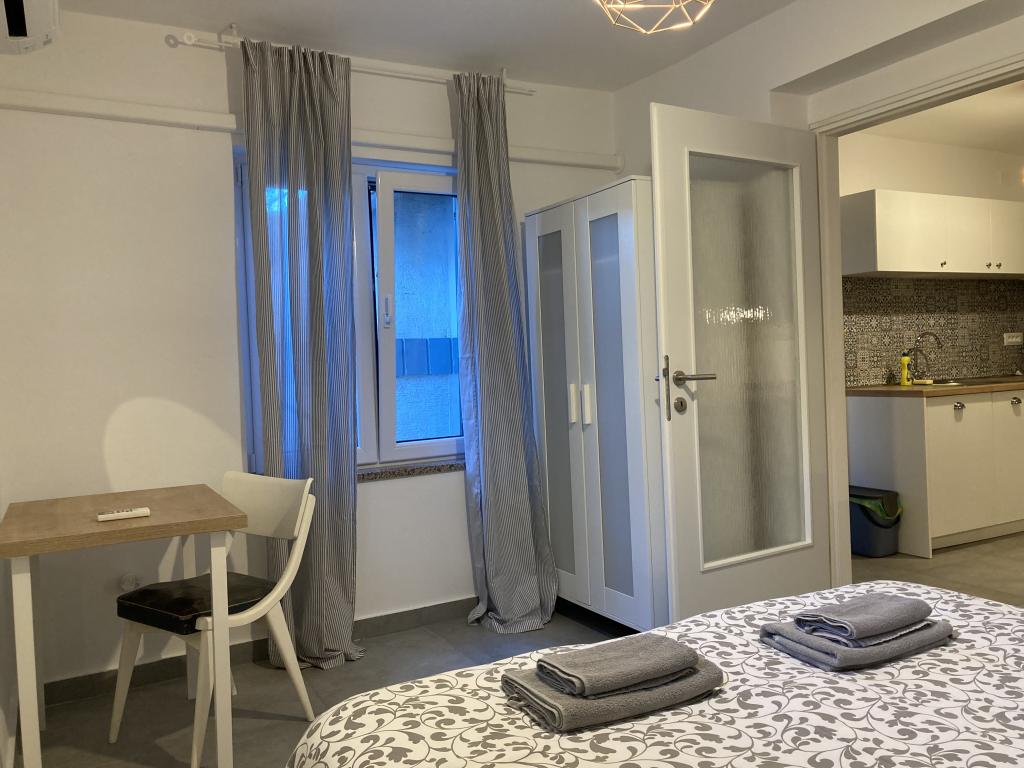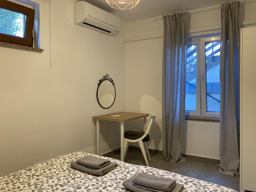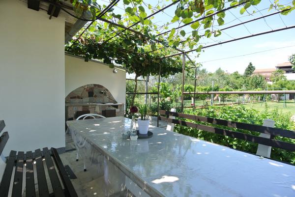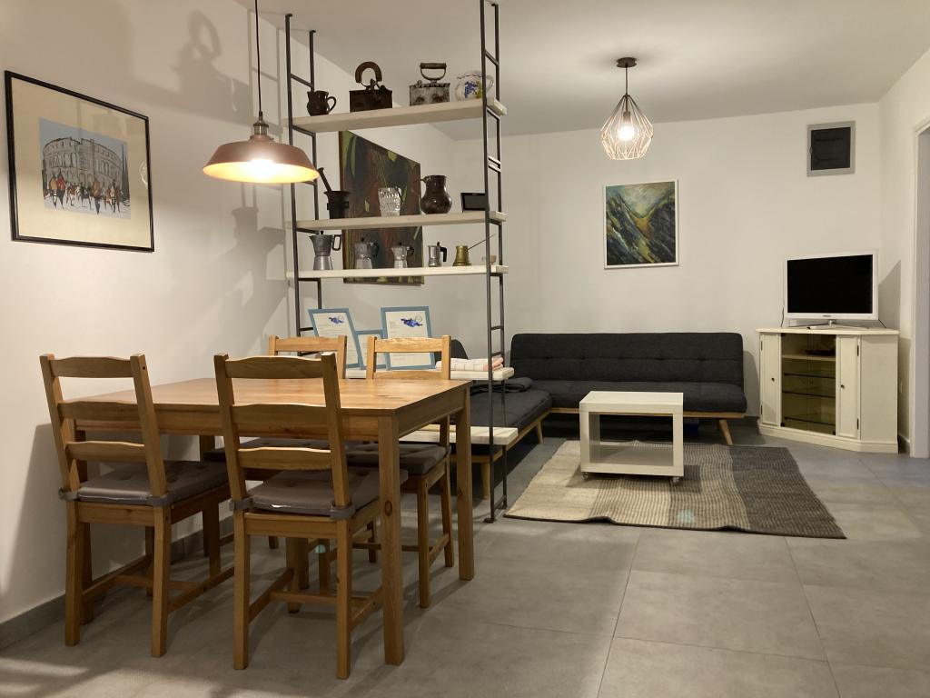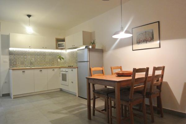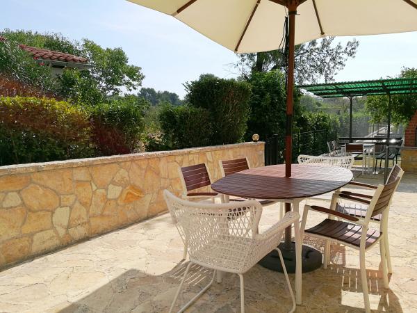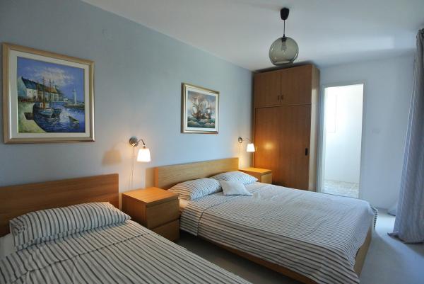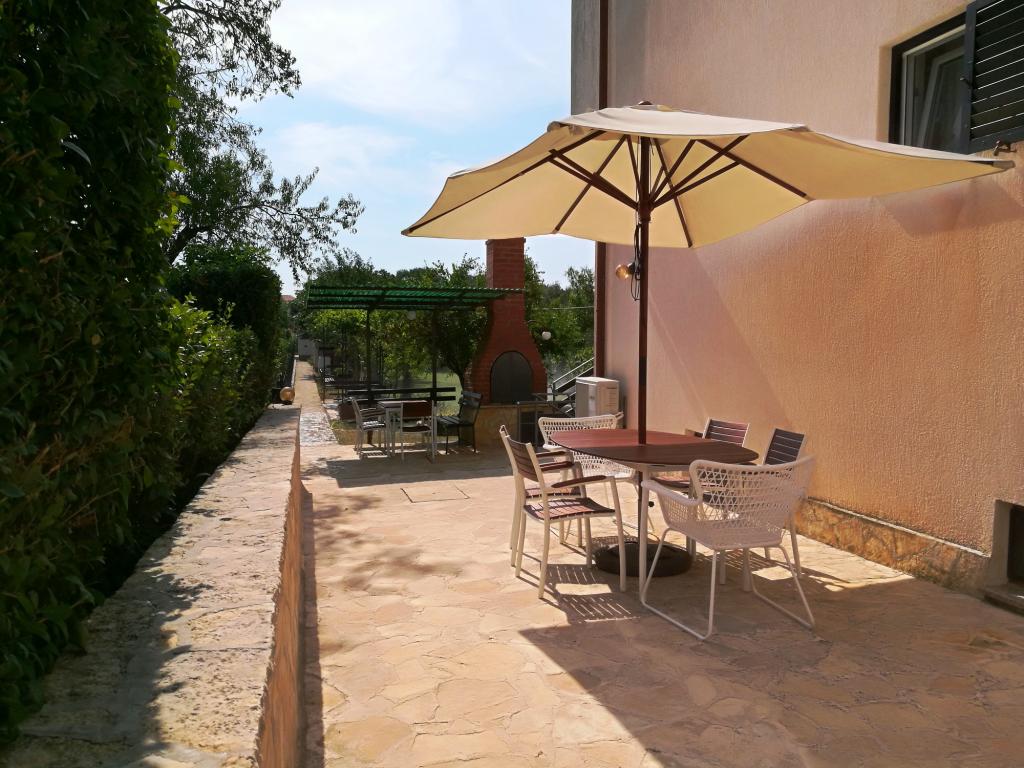 De accommodatie is gelegen in een rustige straat in Banjole, vlakbij Pula, Premantura en Medulin, dicht bij de zee en ver weg van de drukte. Het huis beschikt over drie ruime en comfortabele appartementen en een apart tuinhuis. We bevinden ons op slechts 200 meter van de zee en hebben een eigen parkeerplaats voor 3 auto's. Indien nodig is er extra parkeergelegenheid op een openbare parkeerplaats in de buurt. De tuin is 500 m² en het bijgebouw 900 m². We hebben 3 barbecues, airconditioning, terrassen en balkons tot onze beschikking. Er is ook een speeltuin in de tuin. Ideaal voor een rustige familievakantie in de buurt van diverse attracties en voorzieningen.