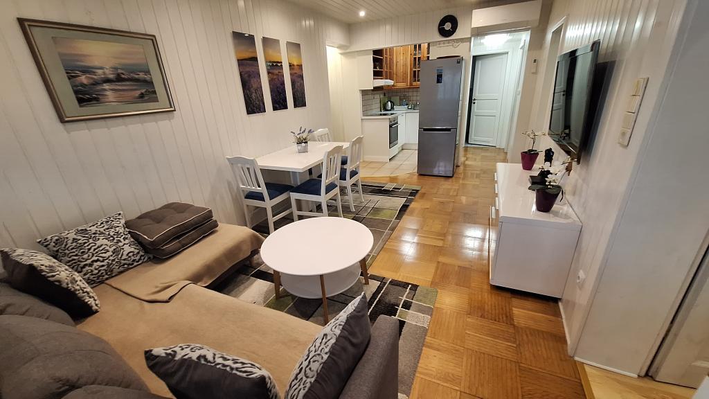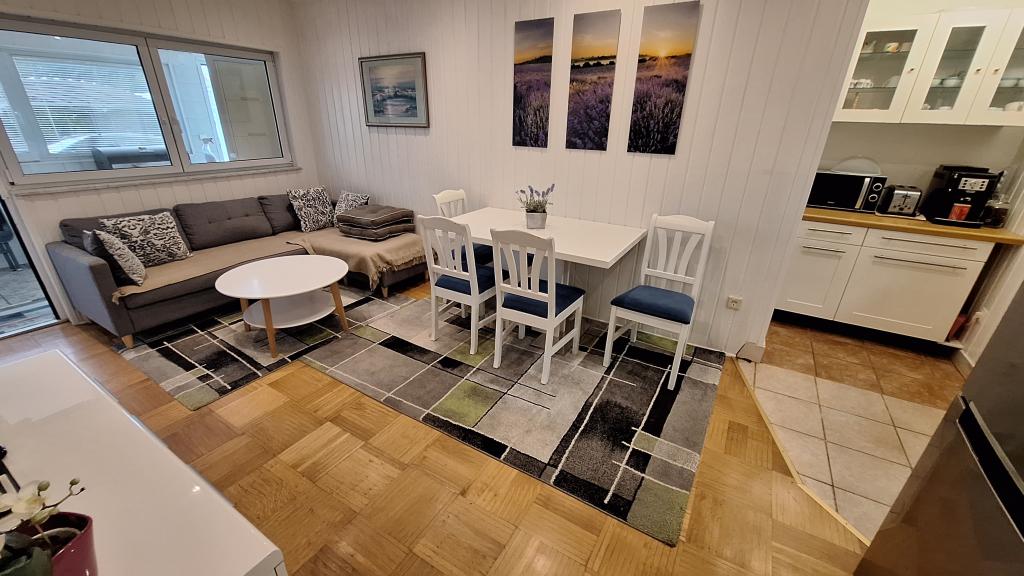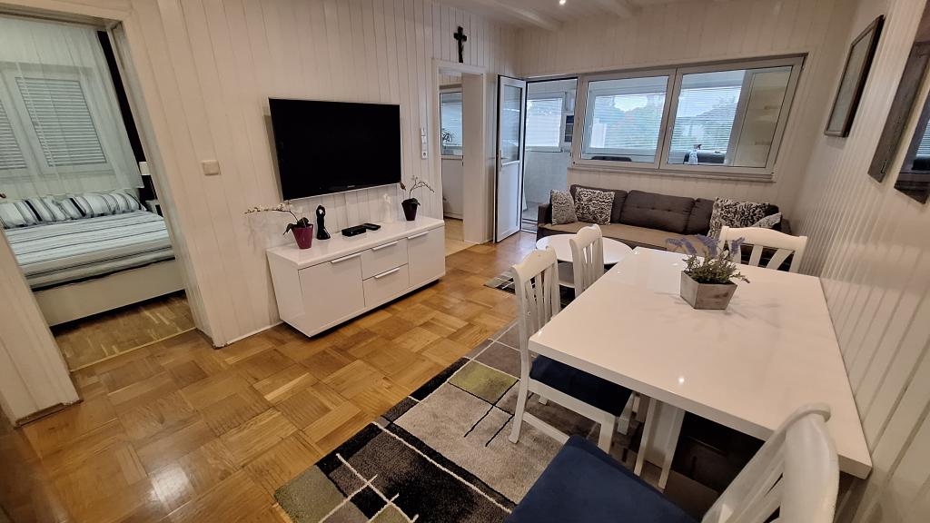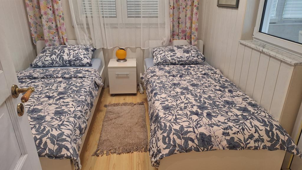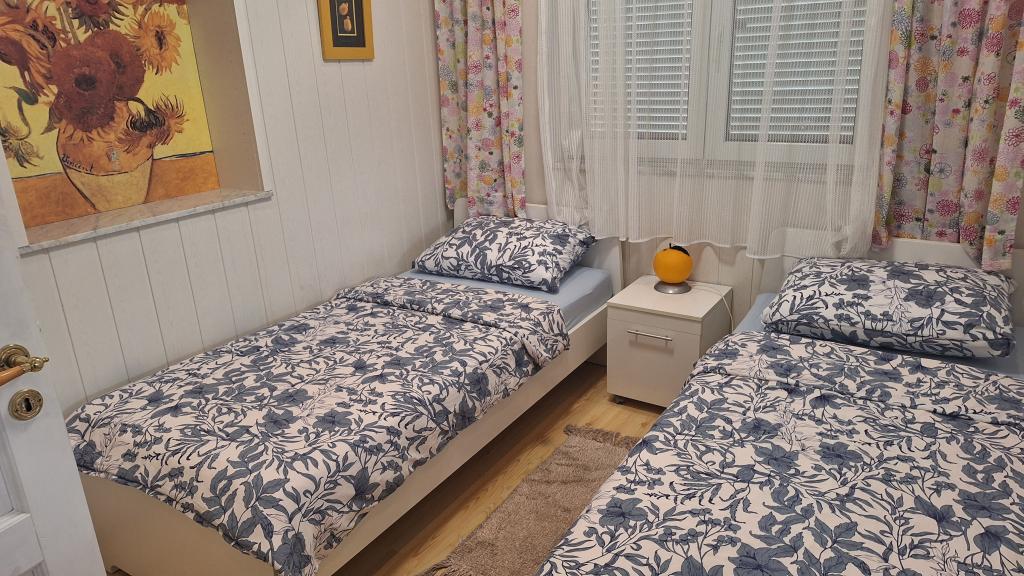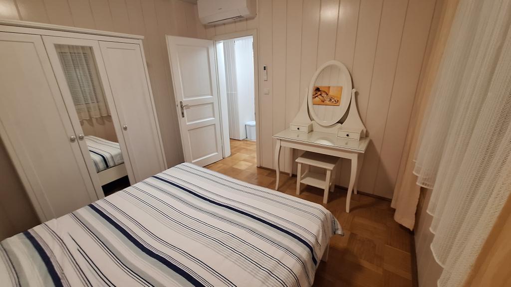 Appartement MARIJA is een ruim appartement met 3 slaapkamers en een woonkamer. Aan de voorzijde bevindt zich een overdekt en beglaasd terras. Naast de ingang is er een kleine vrije ruimte waar u kunt zitten en eventueel een barbecue kunt plaatsen, die in het appartement aanwezig is. Direct voor de ingang bevinden zich 2 overdekte parkeerplaatsen voor 2 auto's.