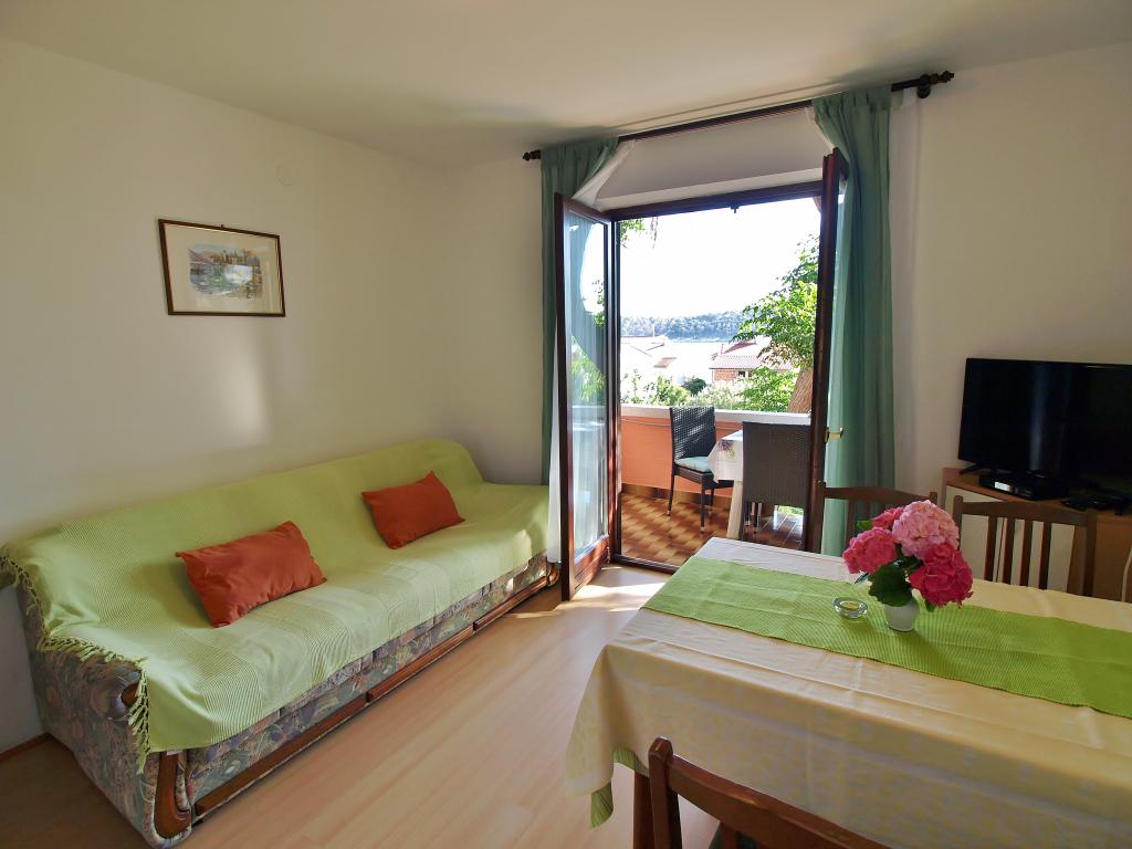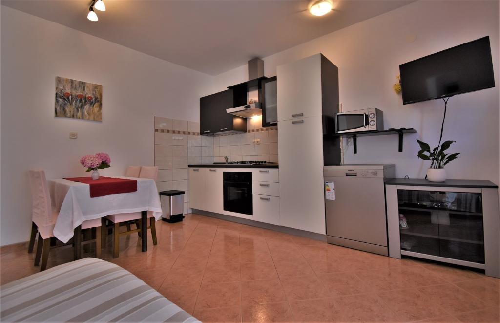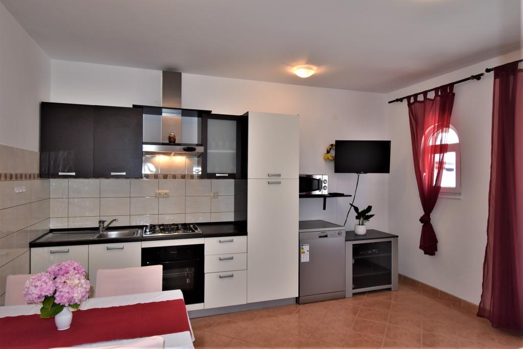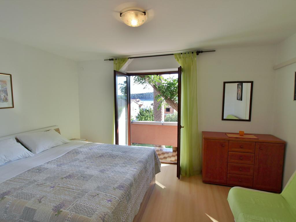 Het huis is gelegen op het eiland Rab, in de stad Barbat, dicht bij de zee. We zijn slechts 50 meter verwijderd van de zee. Het appartement bestaat uit twee tweepersoonskamers met een tweepersoonsbed, keuken met eetkamer en woonkamer, badkamer. Het appartement is 56 m2. Het appartement bevindt zich op de begane grond en heeft een groot terras in de schaduw, een buitenbarbecue en een ruimte om 's avonds te zitten en te socializen.