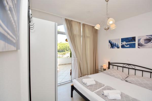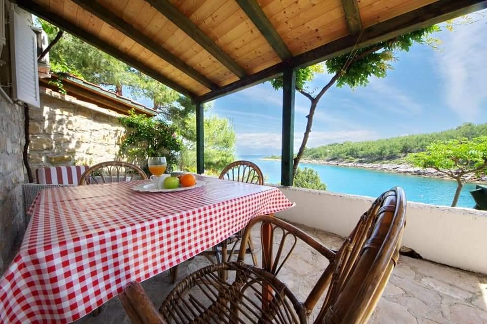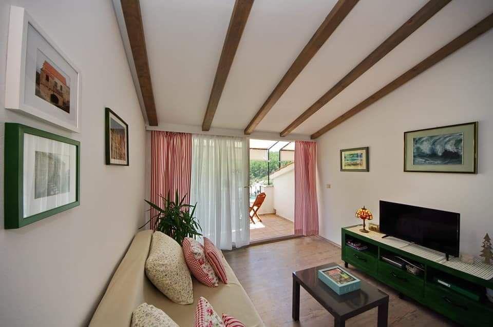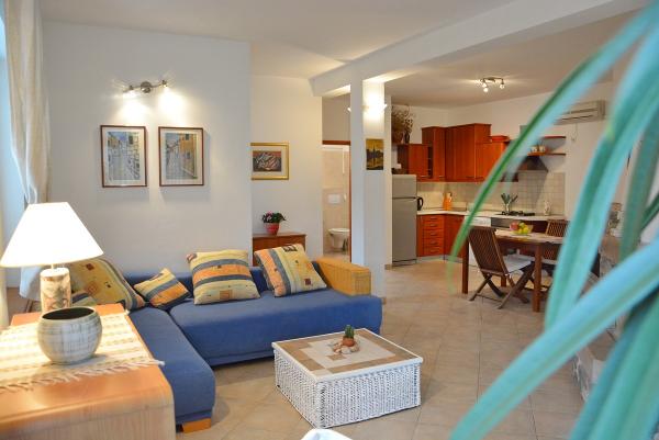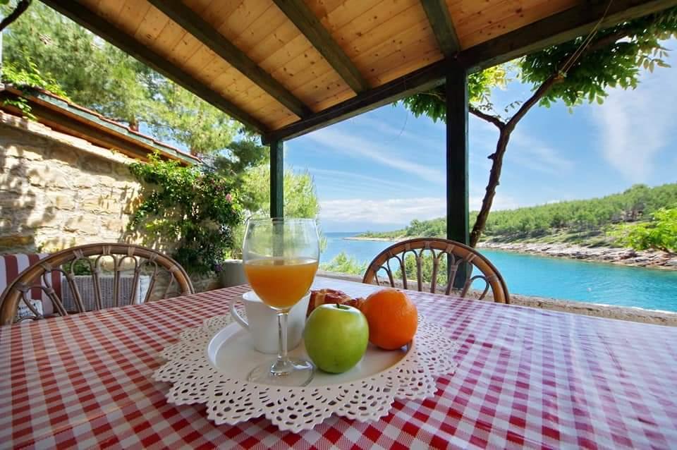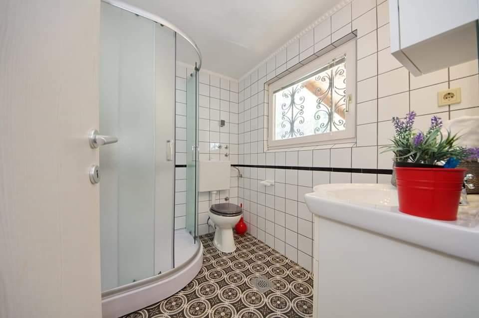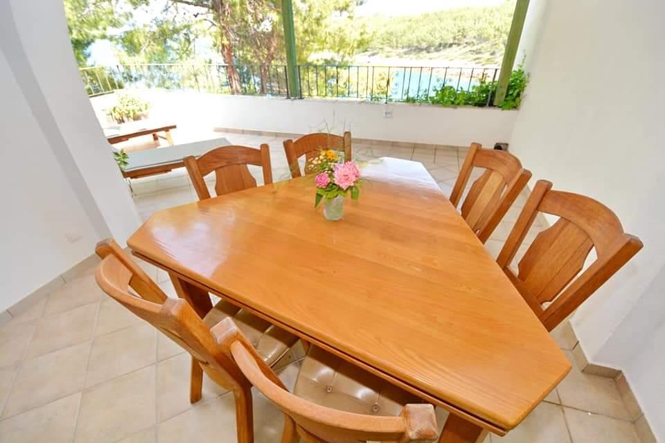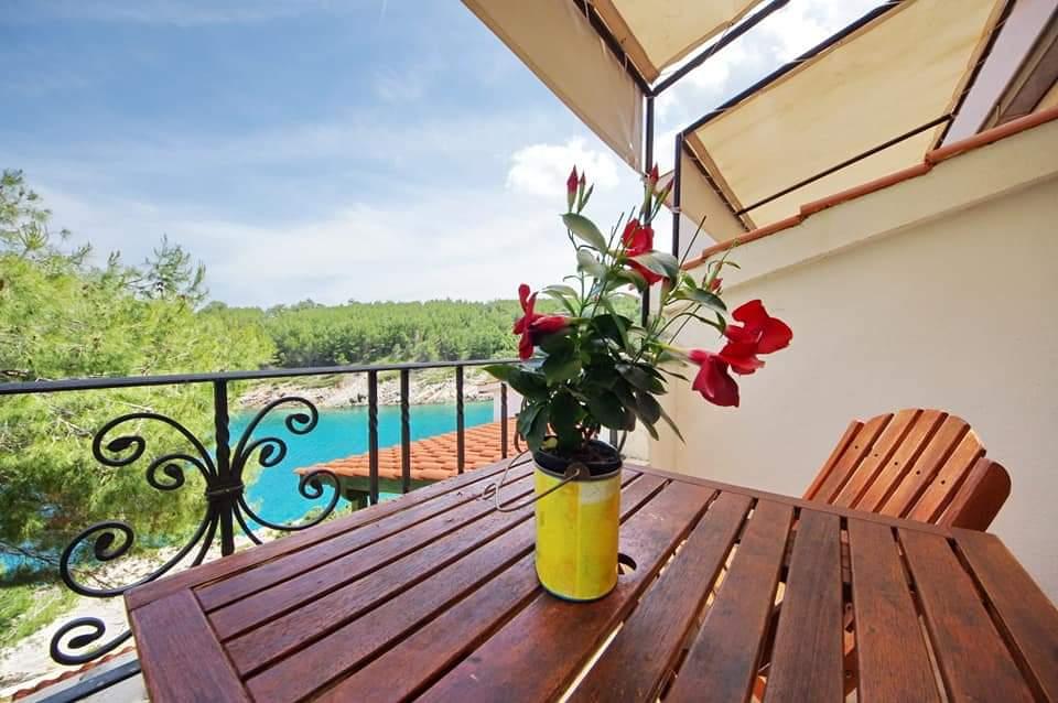 Appartementenhuis, trapsgewijs, in een prachtige rustige baai, eerste rij aan zee, met 6 volledig uitgeruste appartementen, fitnessruimte, privéparkeerplaats, 2 buitenhaarden, 2 buitendouches, ligweide, buitenjacuzzi, kinderspeelplaats en tuin. RUZMARIN (2) - 21 m2, aparte ingang, begane grond, terras 20 m2, woonkamer met keuken en toilet. KADULJA (4) - 60 m2, aparte ingang, middelste verdieping, terras 25 m2, woonkamer met keuken en 2 slaapkamers met 2 toiletten. FIG (2) - 40 m2, aparte ingang, bovenverdieping, terras 7 m2, woonkamer met keuken, toilet en slaapkamer op zolder. LAVANDA (4+1) - 60 m2, aparte ingang, bovenverdieping, terras 15 m2, inkomhal, woonkamer met keuken en 2 slaapkamers met 2 toiletten. MASLINA (4) - 65 m2, aparte ingang, middelste verdieping, terras 20 m2, hal, woonkamer met keuken en open haard, 2 slaapkamers met 2 toiletten. LOVOR (2+1) - 45 m2, aparte ingang, begane grond, terras 20 m2, woonkamer met keuken en slaapkamer met toilet.