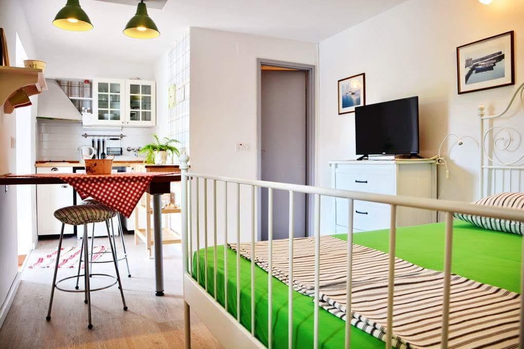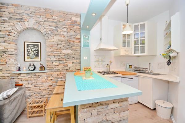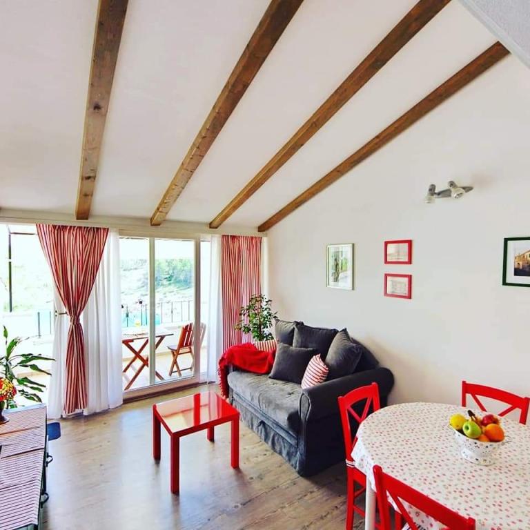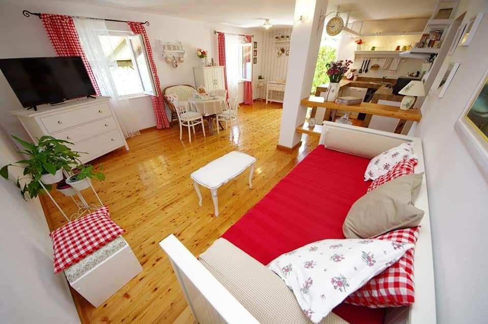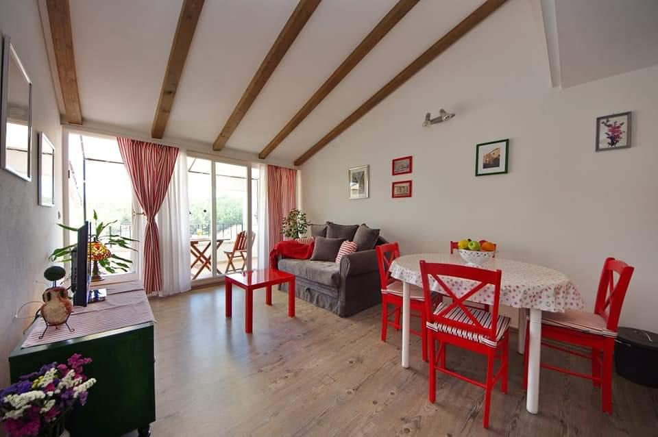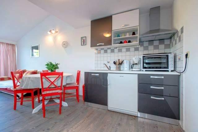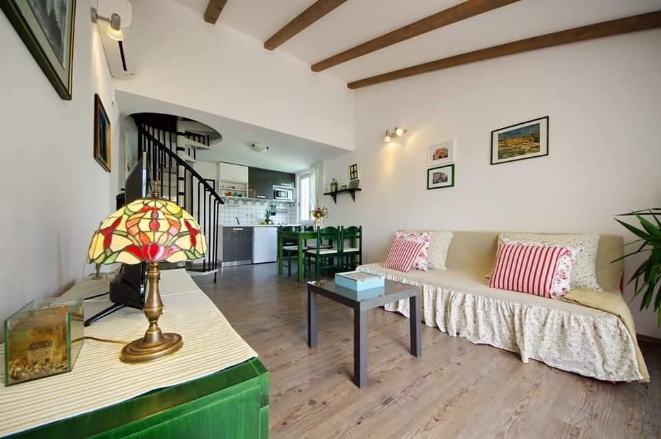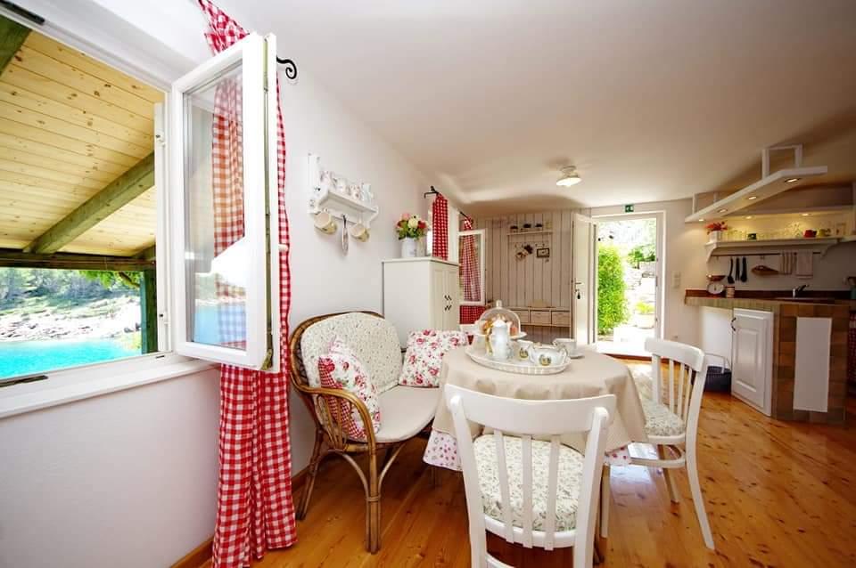 Appartementenhuis, trapsgewijs, in een prachtige rustige baai, eerste rij aan zee, met 6 volledig uitgeruste appartementen, fitnessruimte, privéparkeerplaats, 2 buitenhaarden, 2 buitendouches, ligweide, buitenjacuzzi, kinderspeelplaats en tuin. RUZMARIN (2) - 21 m2, aparte ingang, begane grond, terras 20 m2, woonkamer met keuken en toilet. KADULJA (4) - 60 m2, aparte ingang, middelste verdieping, terras 25 m2, woonkamer met keuken en 2 slaapkamers met 2 toiletten. FIG (2) - 40 m2, aparte ingang, bovenverdieping, terras 7 m2, woonkamer met keuken, toilet en slaapkamer op zolder. LAVANDA (4+1) - 60 m2, aparte ingang, bovenverdieping, terras 15 m2, inkomhal, woonkamer met keuken en 2 slaapkamers met 2 toiletten. MASLINA (4) - 65 m2, aparte ingang, middelste verdieping, terras 20 m2, hal, woonkamer met keuken en open haard, 2 slaapkamers met 2 toiletten. LOVOR (2+1) - 45 m2, aparte ingang, begane grond, terras 20 m2, woonkamer met keuken en slaapkamer met toilet.