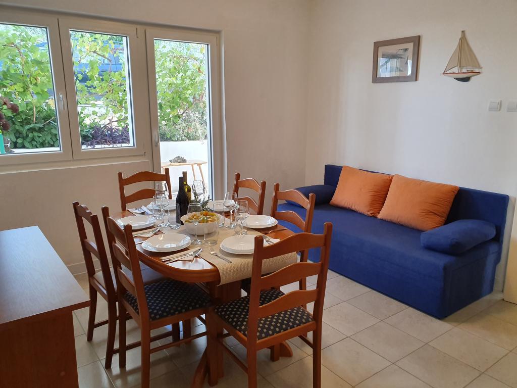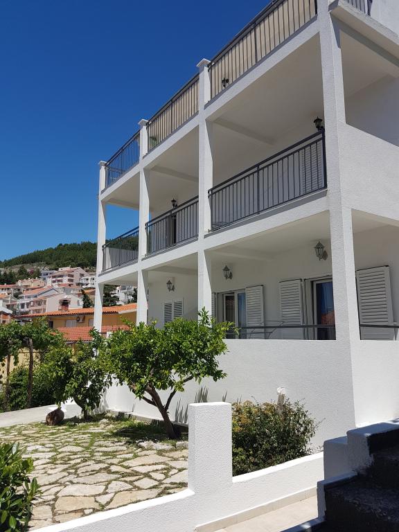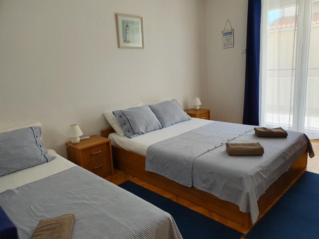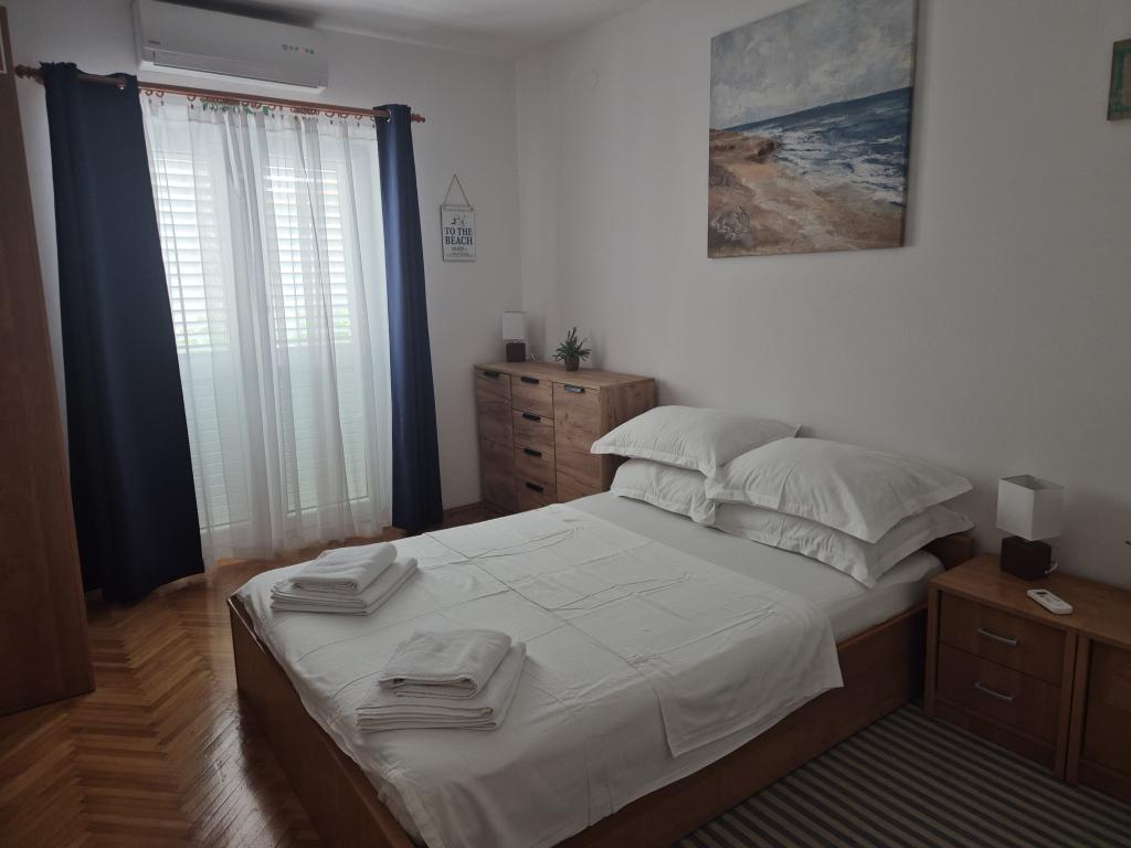 Groot appartement in een rustige buurt van Baska Voda, volledig uitgerust. De faciliteit ligt op 2 minuten lopen van het strand en op minder dan 5 minuten van het centrum. Groot balkon met uitzicht op de zee. Parkeergelegenheid voor de deur voor twee auto's.