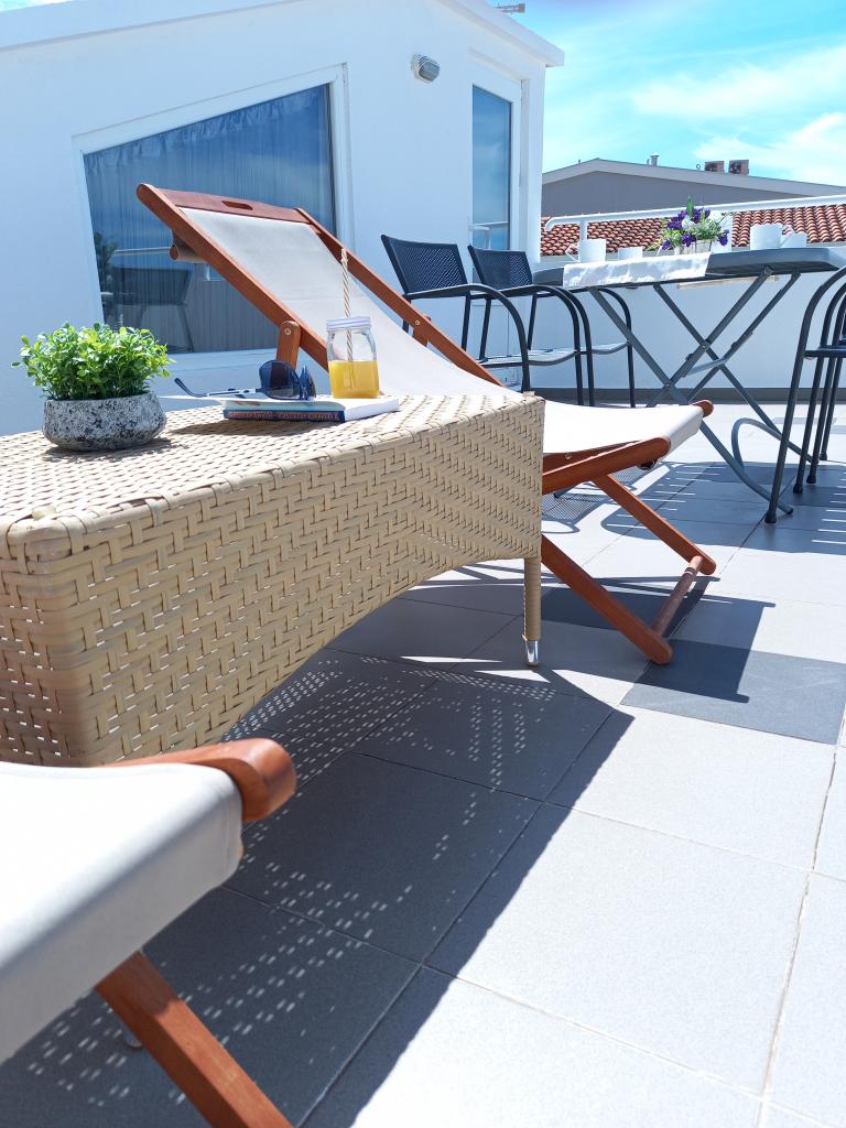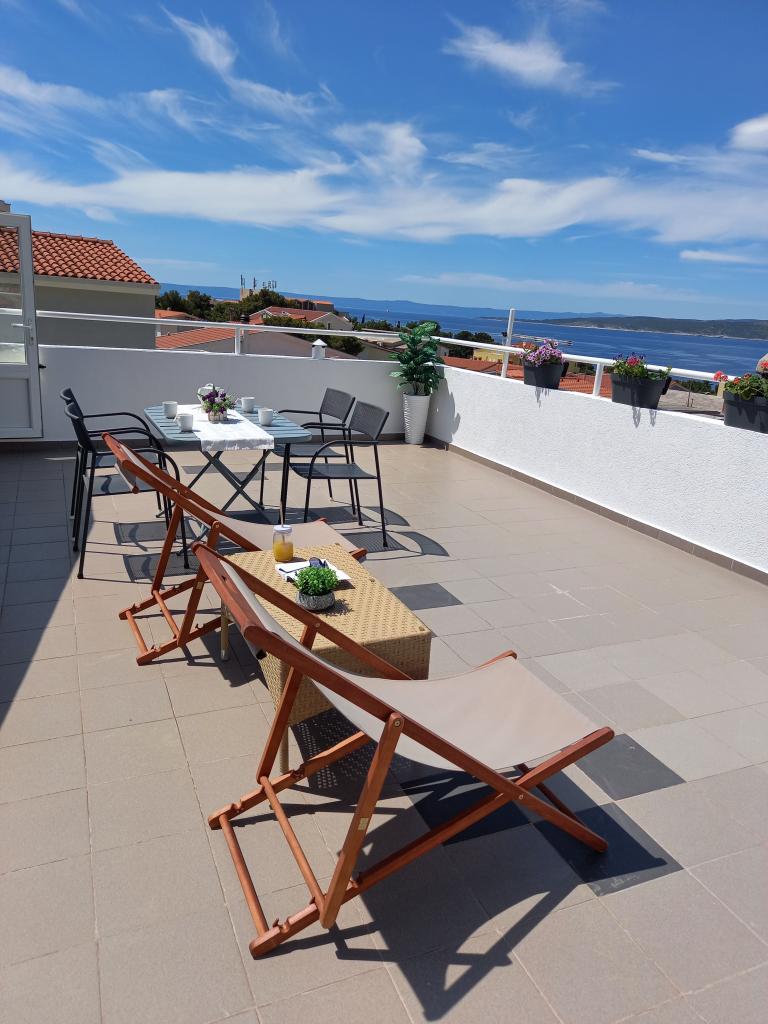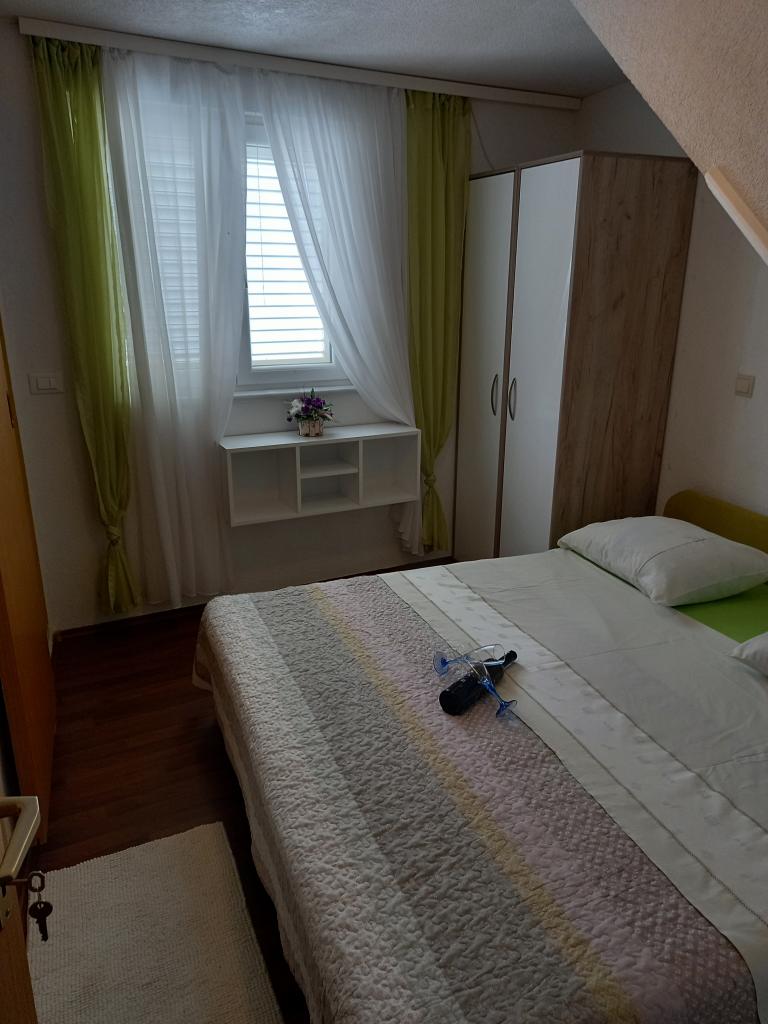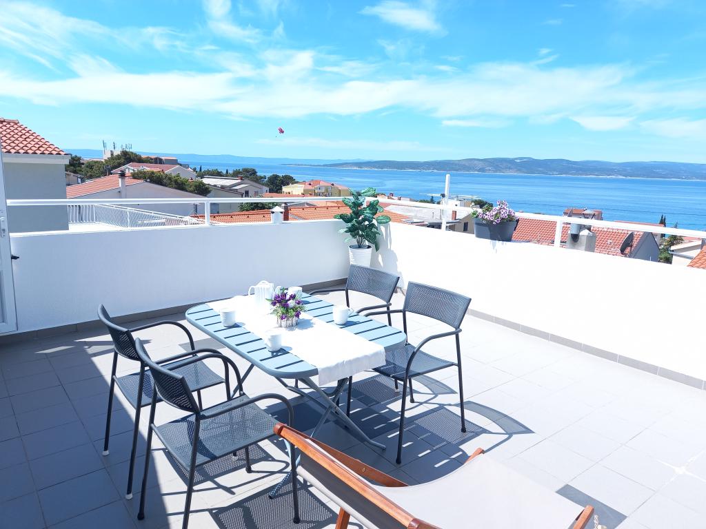 Appartement Nino is een modern appartement, voorzien van alles wat u nodig heeft voor uw vakantie. Het appartement is voorzien van airconditioning en een uitgeruste keuken. Twee slaapkamers zijn voorzien van televisie en hebben een eigen badkamer. Het appartement beschikt over een balkon en een terras met een prachtig uitzicht op de zee en de berg Biokovo. Naast een kleine eethoek in het appartement, is er op het terras een zithoek en ligstoelen. Ons appartement Nino ligt op 5 minuten lopen van het centrum en het hoofdstrand. In de buurt is er ook een speeltuin met kunstgras voor sportactiviteiten: voetbal, basketbal, ...