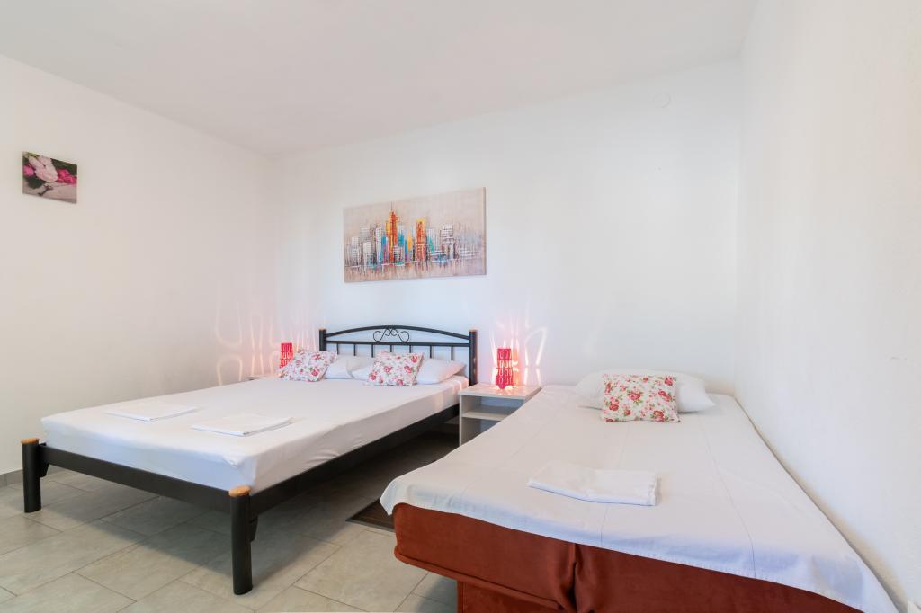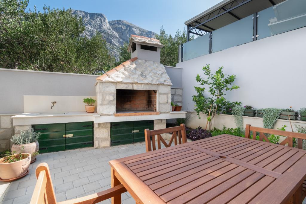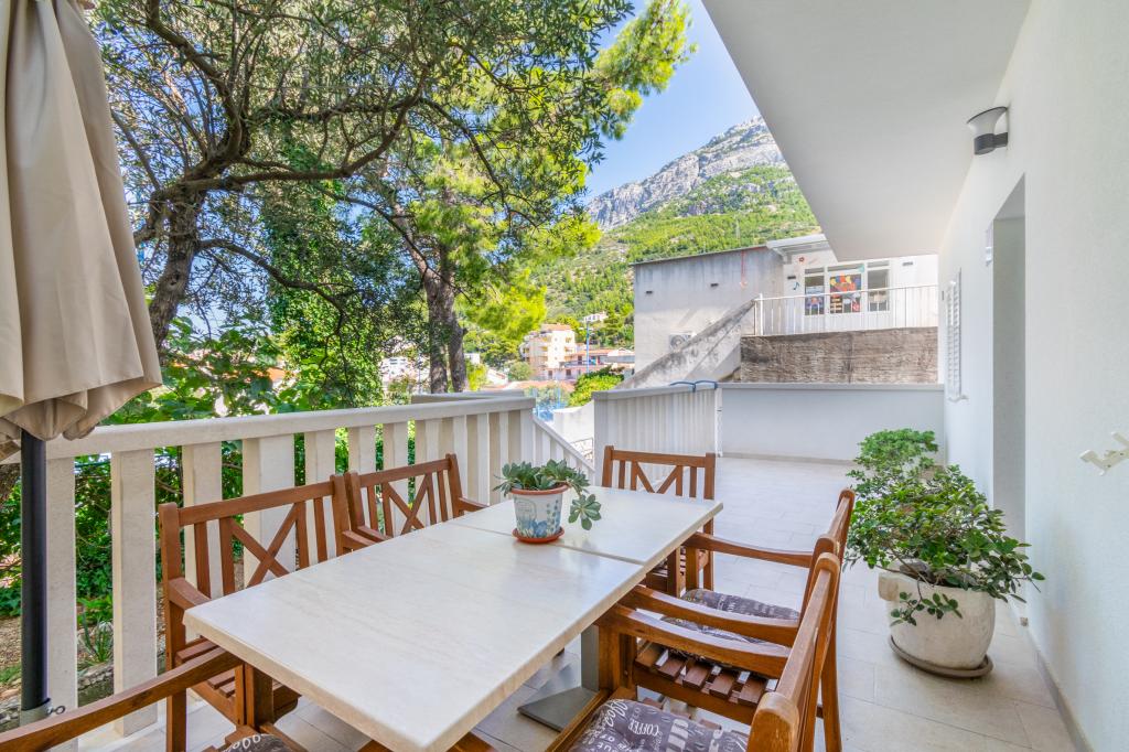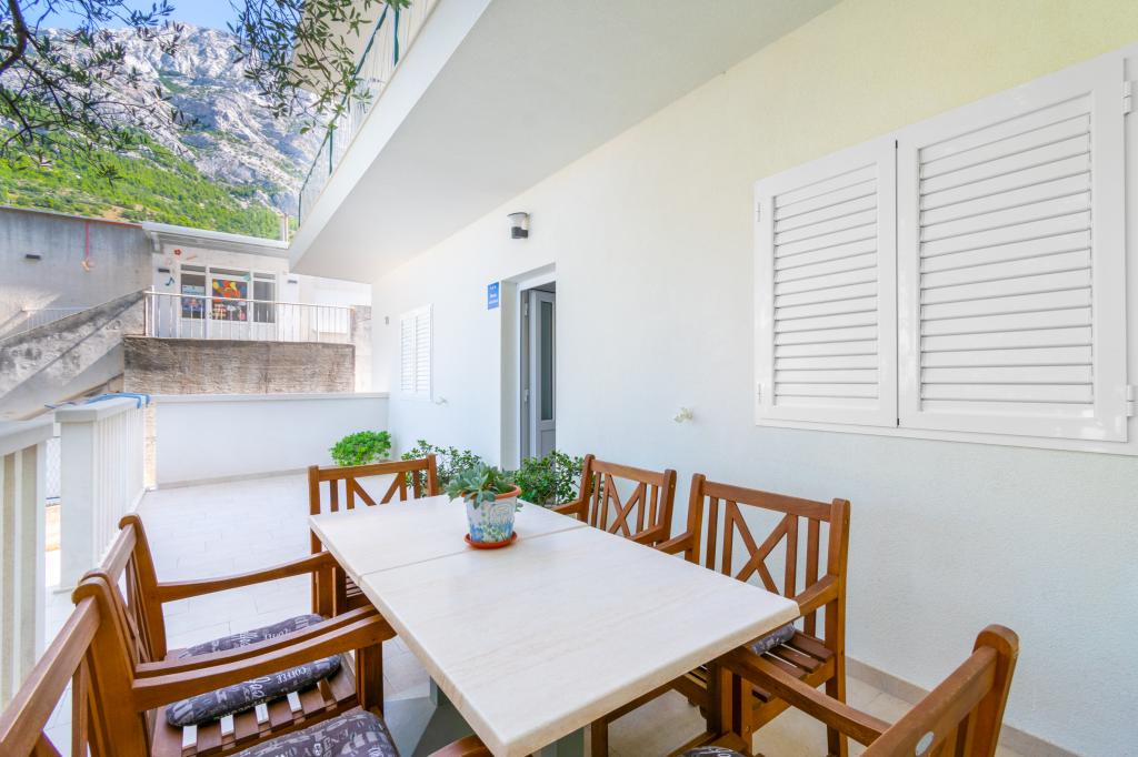 In het prachtige stadje Baška Voda aan de voet van Biokovo ligt een ruim en onlangs gerenoveerd driekamerappartement (6+1). Het appartement beschikt over 2 ruime kamers met een tweepersoonsbed, en één kamer met een tweepersoonsbed en een extra bed, 2 badkamers, een moderne en uitgeruste keuken en een ruim terras met uitzicht op Biokovo en de zee. Het appartement bevat alles wat u nodig heeft voor een zorgeloze, aangename en rustige vakantie: groot terras, airconditioning, wifi, LCD/SMART TV, wasmachine, barbecue, parkeerplaats, beddengoed, handdoeken. Een markt, bakker, slager, postkantoor, apotheek, cafés en stranden liggen op slechts een paar minuten lopen. Het centrum van Baška Voda ligt op slechts 5 minuten lopen van het appartement met een breed scala aan restaurants, horecagelegenheden en souvenirwinkels. Ook in de zomer is er een rijk aanbod aan adrenalinesporten, (jetski, supboard, parasailing) entertainment voor de allerkleinsten (nieuwe en aantrekkelijke waterfietsen, semi-onderzeeër), ligstoelen. Vanwege de ligging van het appartement en de nabijheid van het centrum, heeft u het hele jaar door niet eens een auto nodig.