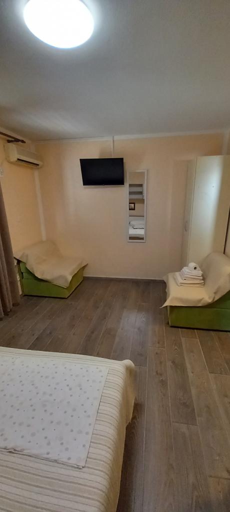 De faciliteit bevindt zich op de tweede rij aan zee, op 2 minuten lopen naar het centrum, hetzelfde naar het eerste strand. Studio app 2 1 heeft een basic bed en een fauteuil, en Studio 2 2 heeft een basic bed en 2 fauteuils. Studio-app biedt plaats aan 2 personen, studio-app 2 1 is geschikt voor 2 volwassenen en 1 kind, 2 2 twee volwassenen en 1 tot 2 kinderen. Parkeren mogelijk, gelegen aan de voorkant van het huis. WELKOM!!!