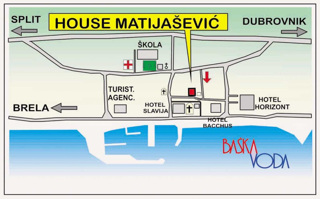 De appartementen bevinden zich in het hart van Baška Voda, op 50 meter van het strand en 100 meter van het centrum.
