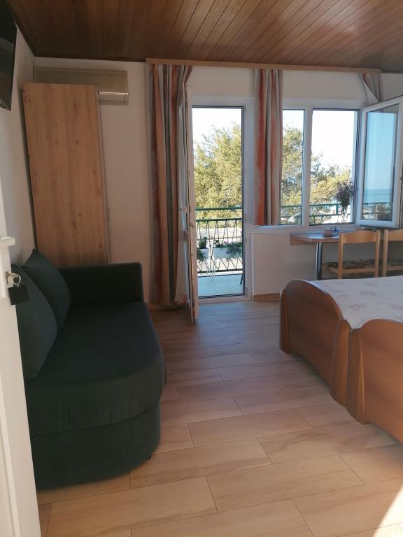 Ons huis ligt midden in het centrum van de stad, op slechts 1 minuut lopen van het belangrijkste kiezelstrand Nikolina, dat een blauwe vlag heeft. Alle benodigde voorzieningen bevinden zich binnen 100 meter. Er is parkeergelegenheid voor onze gasten op de privé-erf naast het huis.