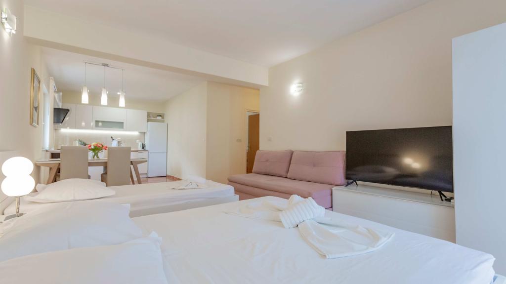 Ik heb voor het tweede jaar op rij in appartementen Pavokovic verbleven en ik heb er alleen de beste dingen over te zeggen. De locatie is geweldig, net als het minder dan een minuut lopen van het strand. Het appartement is schoon en heeft alles wat u nodig heeft voor een vakantie. Er is gratis parkeergelegenheid voor de deur inbegrepen. Eigenaren zijn beleefd en erg vriendelijk. De bonuskant is dat de eigenaren betalen voor het huren van strandbedden en parasols op het strand, dus je kunt ze daar krijgen en die voor je op het strand hebben gereserveerd. Alle aanbevelingen gaan voor deze plek. Ik hoop er snel weer te zijn.
