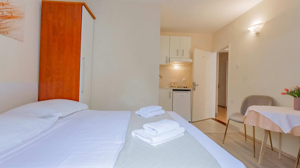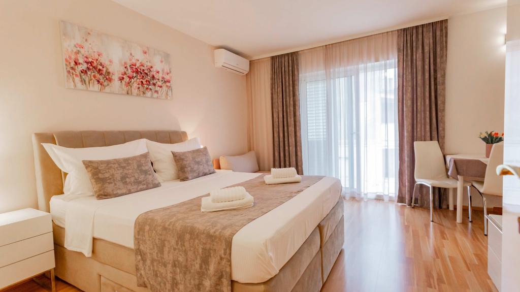 Onze volledig uitgeruste appartementen liggen aan een rustige straat in het hart van Baška Voda, op slechts 2 minuten lopen van het strand, winkels, restaurants en het stadscentrum. Elk appartement beschikt over airconditioning, gratis WiFi en een privéparkeerplaats voor het gebouw. Ze vormen een ideale keuze voor gasten die willen genieten van de nabijheid van de zee, maar die tijdens hun vakantie ook rust en comfort willen.