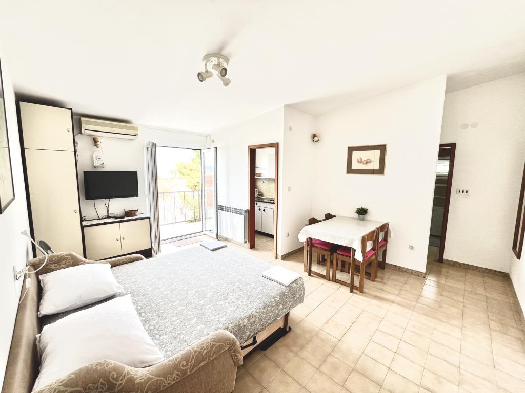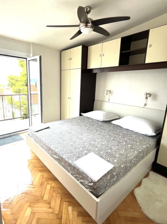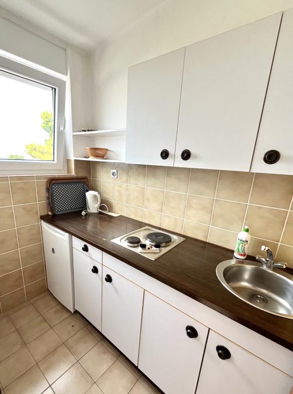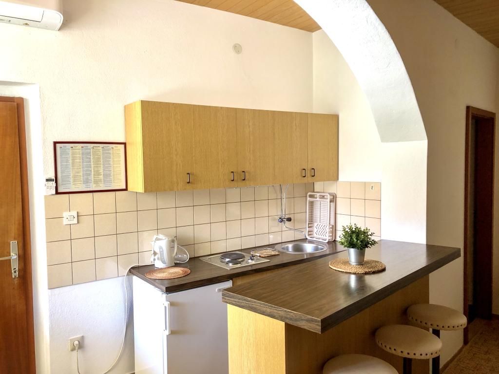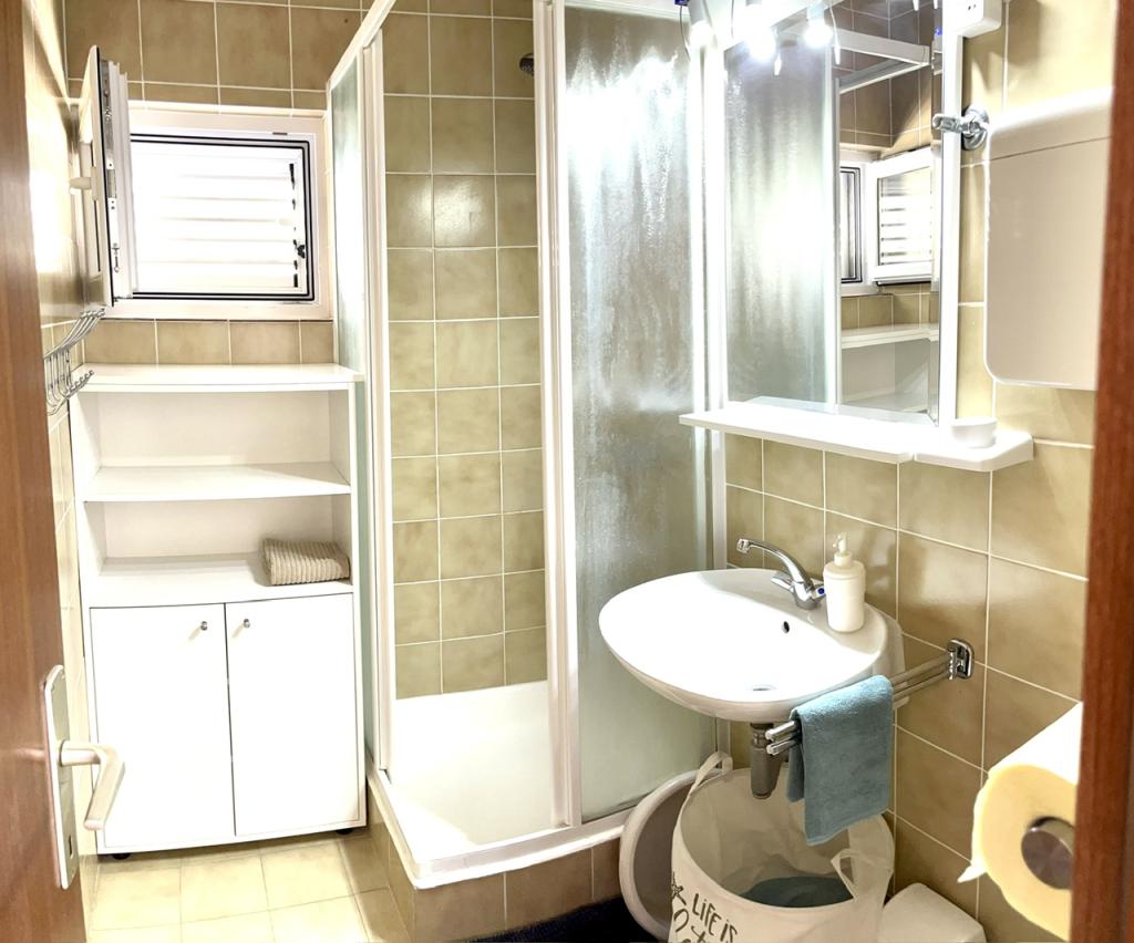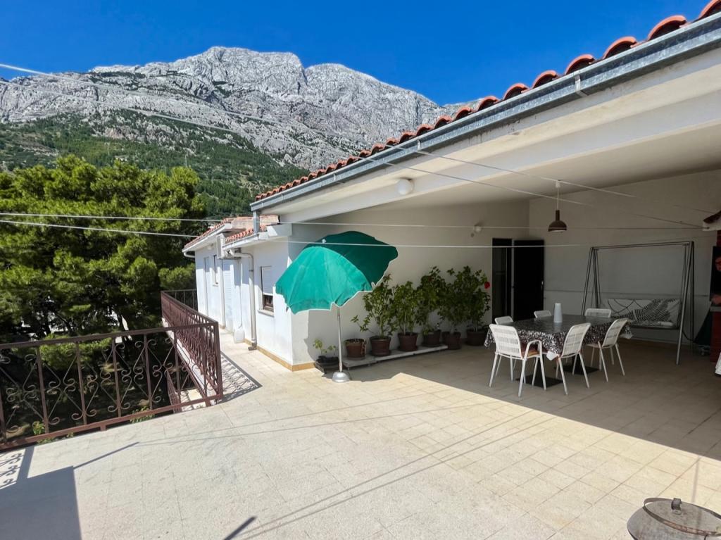 Welkom in ons familiehuis in een rustig deel van het centrum van Baška Voda, direct naast het dennenbos en de kerk van St. Liefde. Het huis ligt op 2 minuten lopen van de zee en het kiezelstrand en biedt een prachtig uitzicht op de berg Biokovo en de eilanden Brač en Hvar. Het appartement op de begane grond is ideaal voor een stel met kinderen of twee stellen. Het omvat een keuken, een hoofdslaapkamer met badkamer en een aparte kamer met eigen badkamer, wat zorgt voor extra privacy en comfort. Het terras biedt uitzicht op onze tuin en het nabijgelegen dennenbos en is perfect voor een kopje koffie in de ochtend of voor een avondje ontspanning. Het appartement op de tweede verdieping biedt een bijzonder vrij uitzicht en is ideaal voor een stel met kinderen of gewoon voor een stel. Het heeft een aparte keuken, een woonkamer met een grote slaapbank, een slaapkamer en een badkamer. Het grote terras is een ideale plek om tijdens uw vakantie van privacy te genieten. Wij bieden onze gasten een eigen parkeerplaats op 7 minuten lopen van het huis. Kom en ervaar onze gastvrijheid en geniet van de ideale locatie voor een perfecte vakantie in Baška Voda!