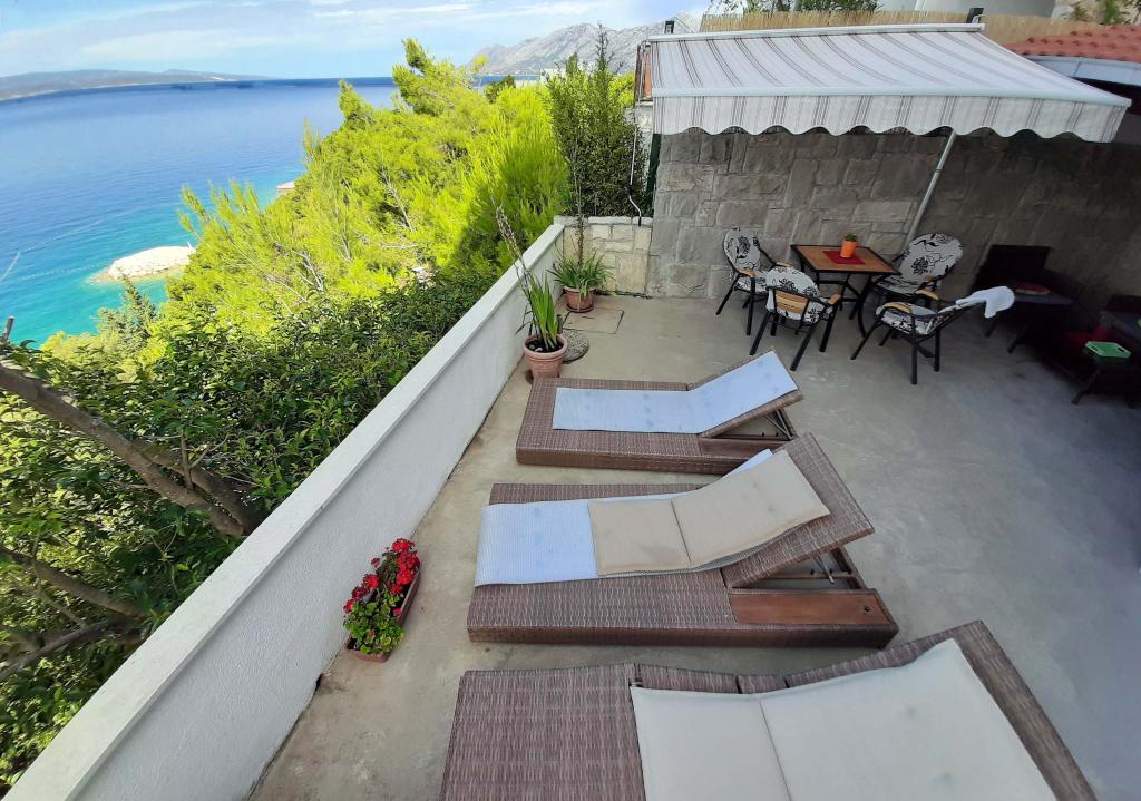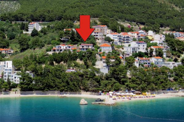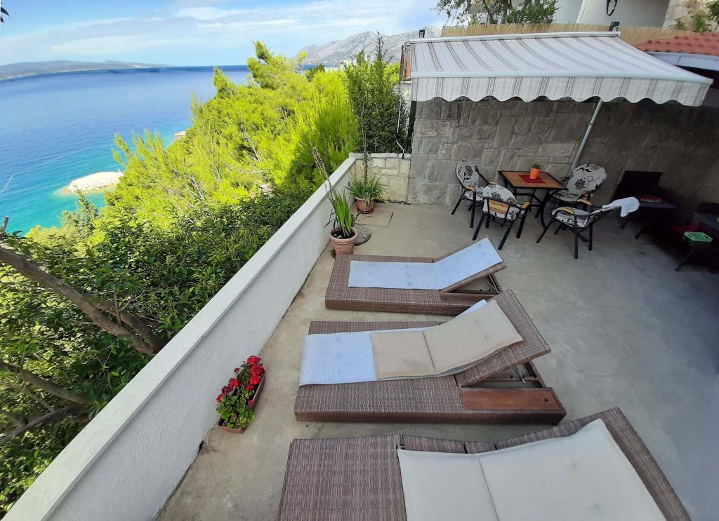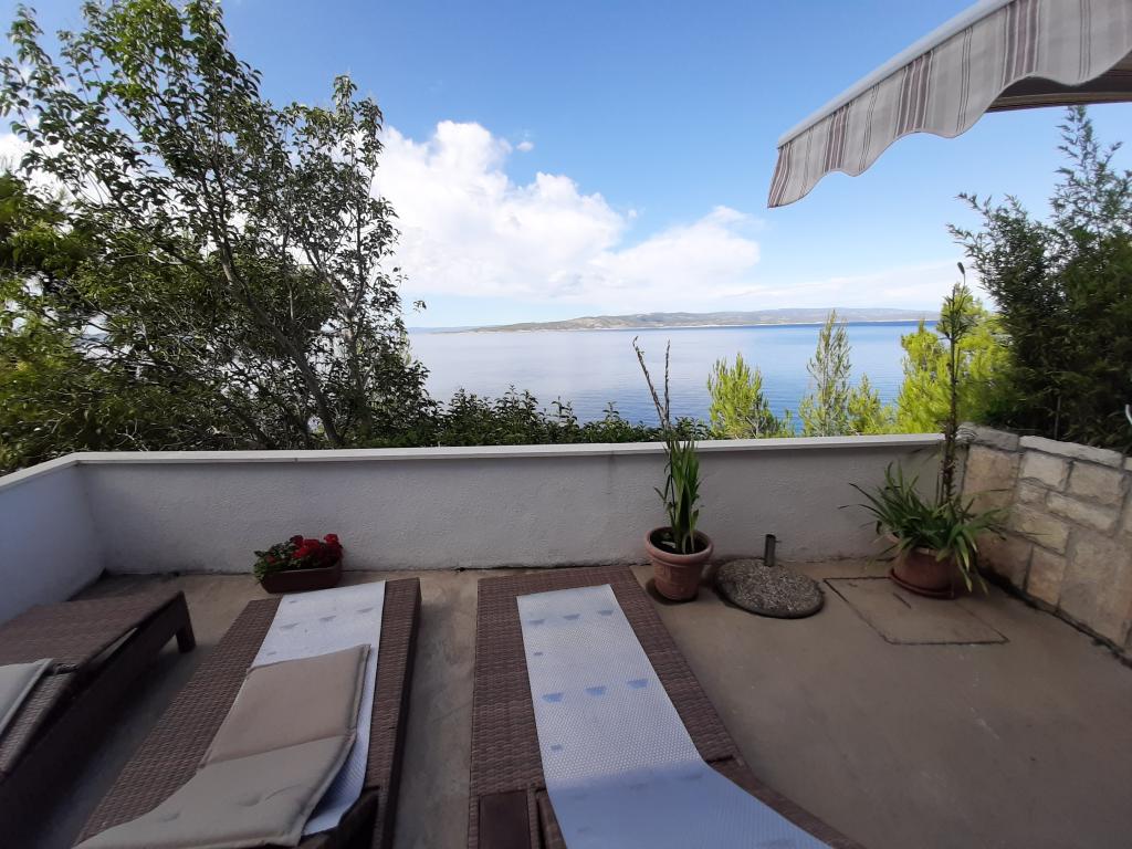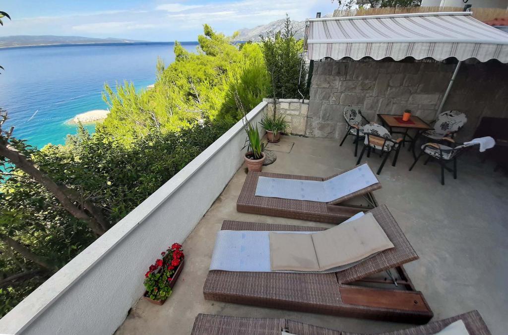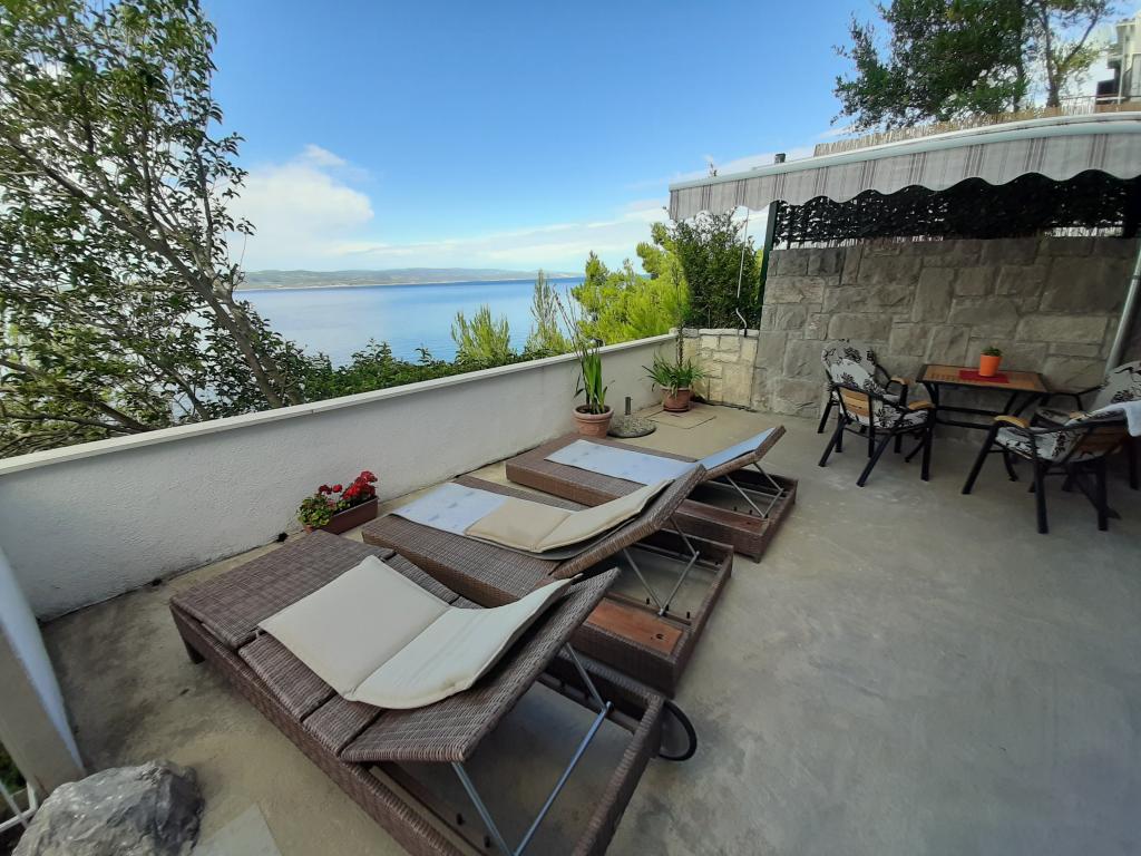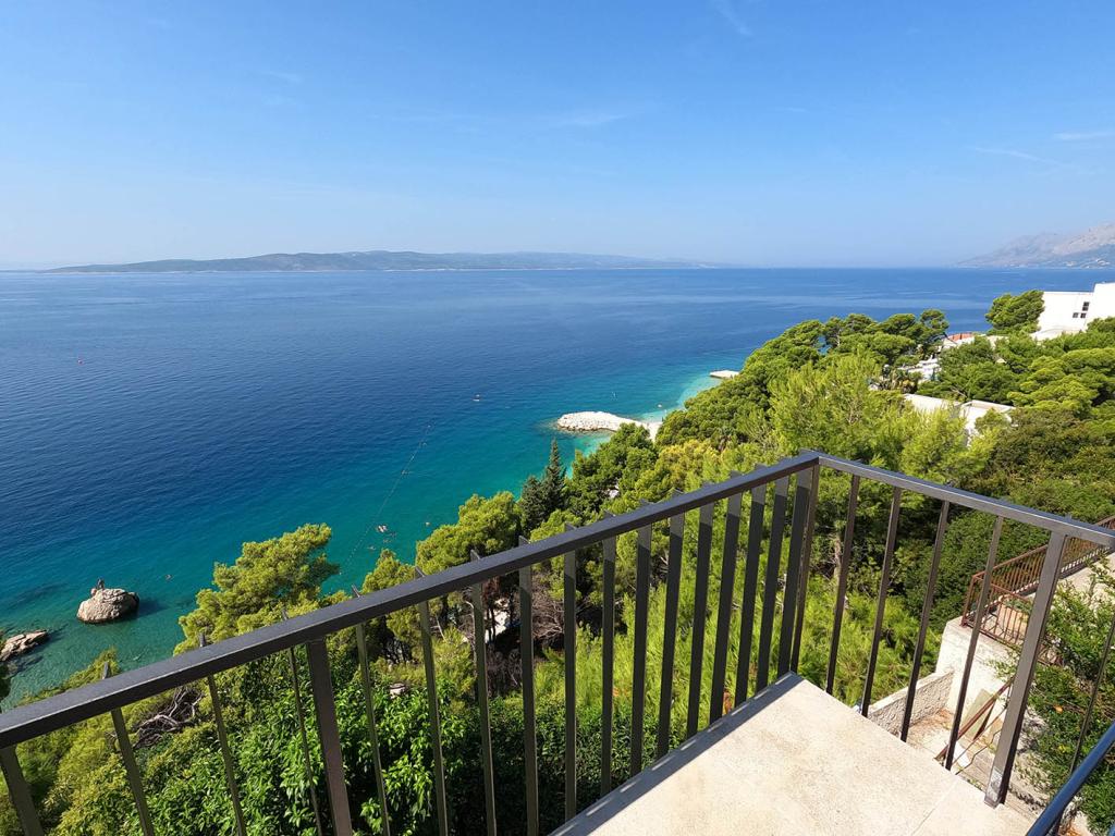 Pas gerenoveerd en volledig uitgerust appartement in een rustige omgeving tussen Baska Voda en Brela, gelegen eerste rij aan zee, boven een prachtig strand. De voorziening is gelegen op 10 minuten lopen (ca. 500 m) van het centrum van beide plaatsen. Groot terras met luifel en uitzicht op zee, 2 tweepersoonsslaapkamers, twee badkamers en keuken met toegang tot het terras. Alles nieuw. Het appartement is gelegen op een aparte verdieping met een aparte ingang, een grote tuin gescheiden van alle buren. Prive parkeerplaats in de schaduw net boven het huis.