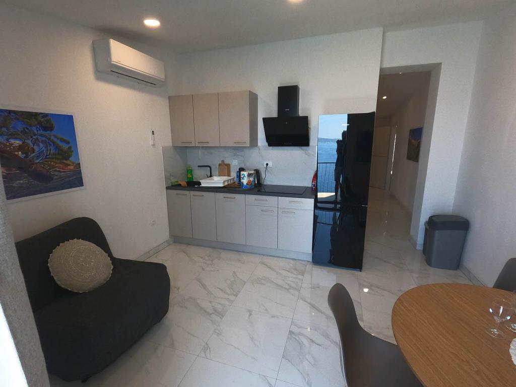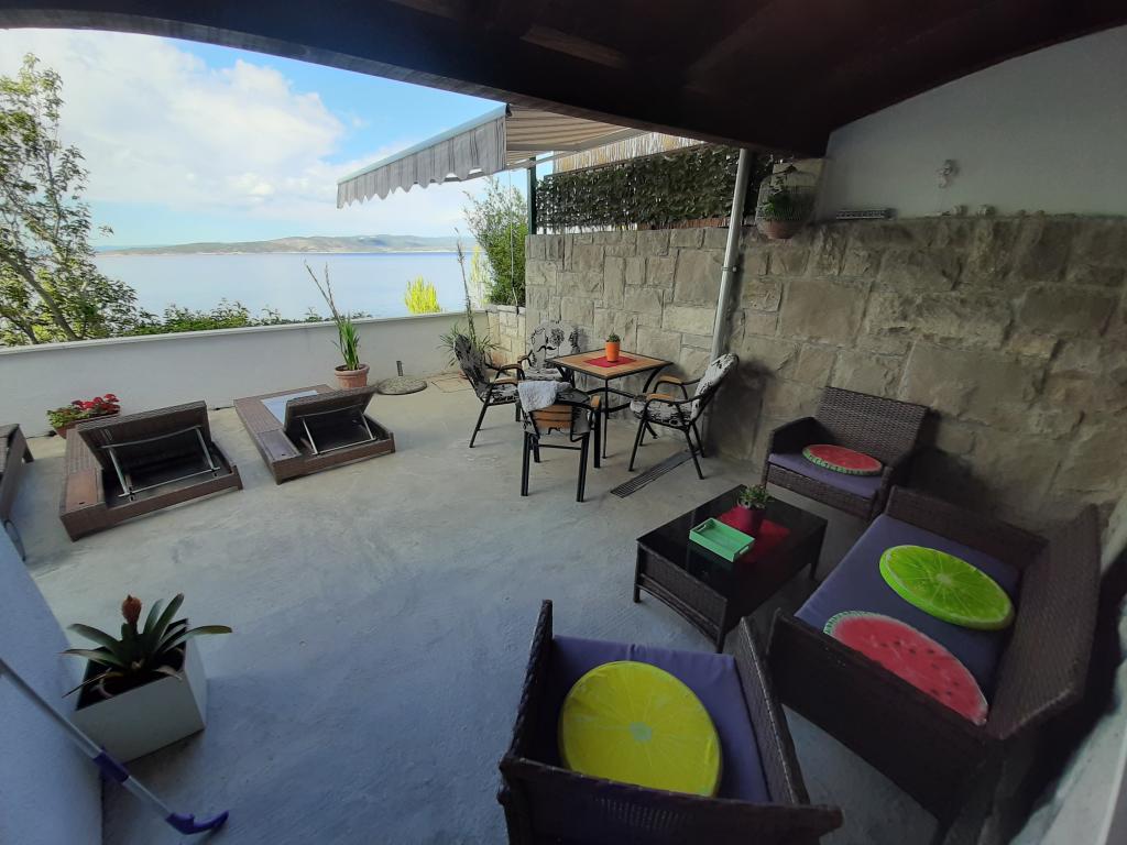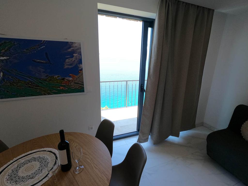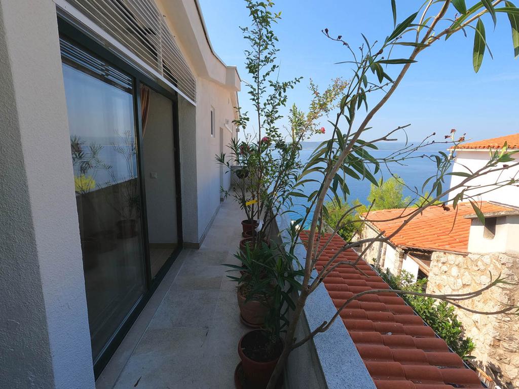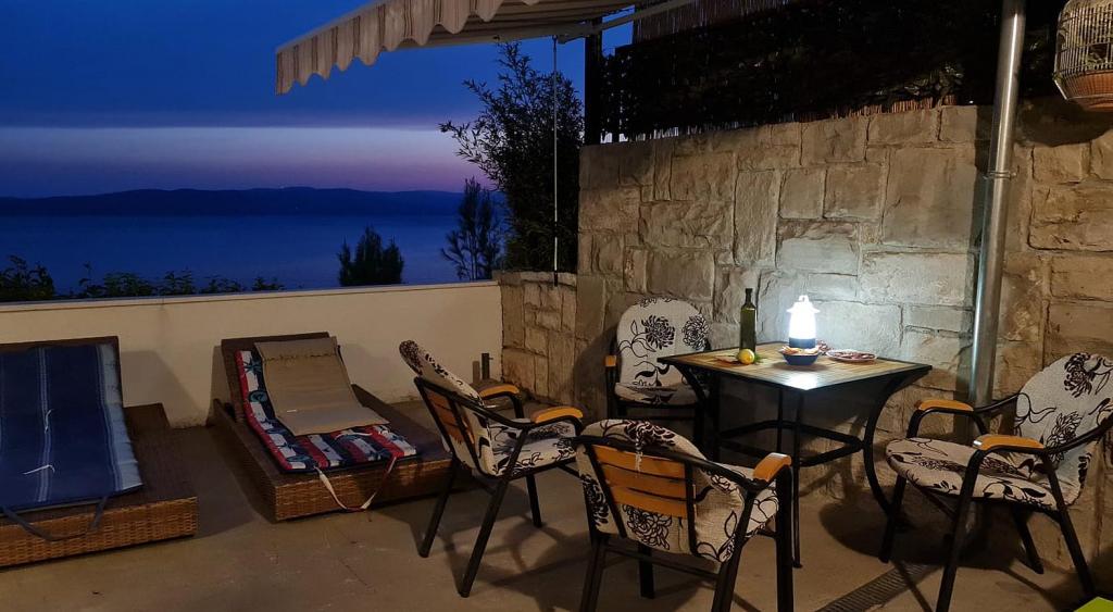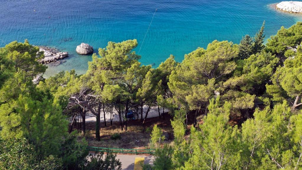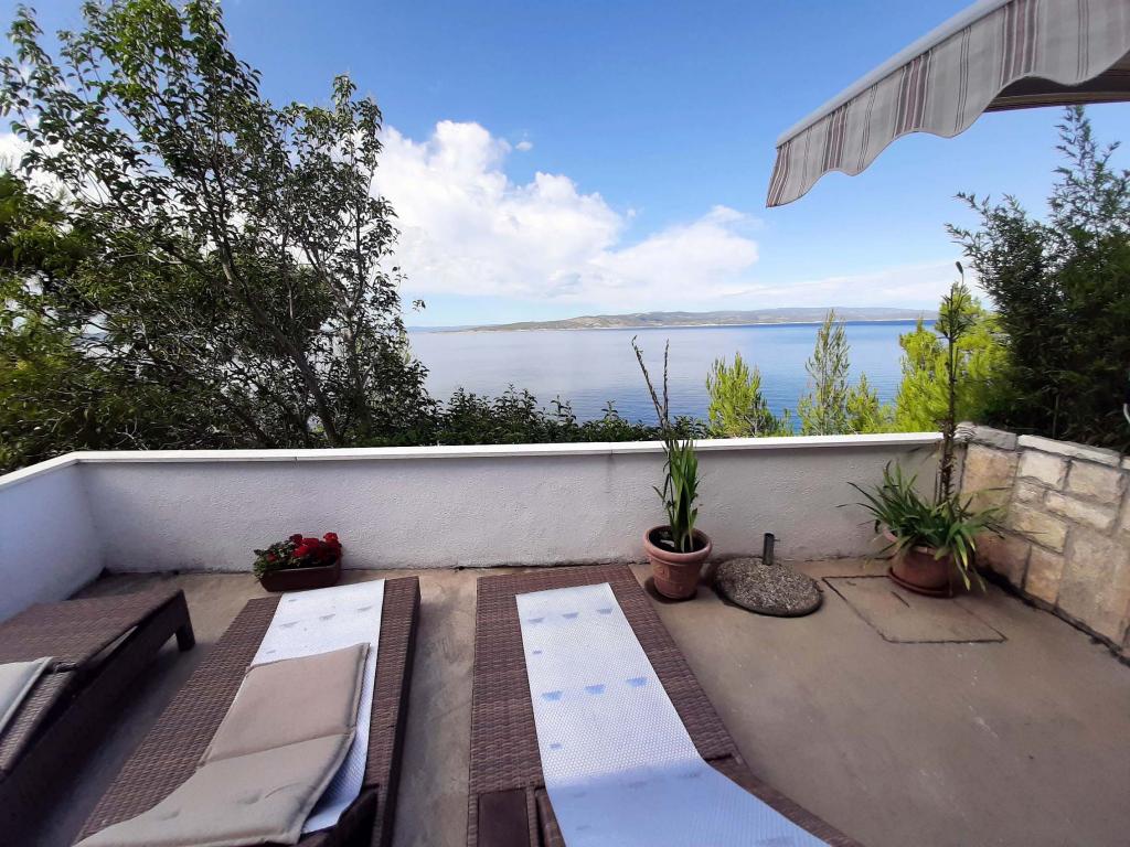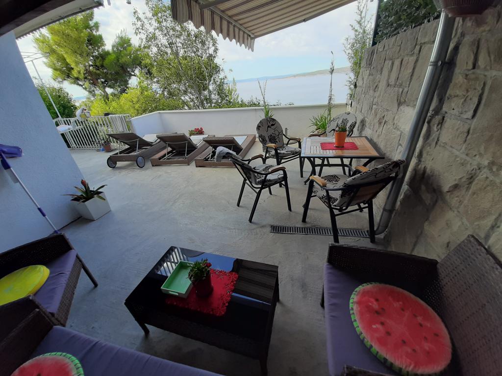 Pas gerenoveerd en volledig uitgerust appartement in een rustige omgeving tussen Baska Voda en Brela, gelegen eerste rij aan zee, boven een prachtig strand. De voorziening is gelegen op 10 minuten lopen (ca. 500 m) van het centrum van beide plaatsen. Groot terras met luifel en uitzicht op zee, 2 tweepersoonsslaapkamers, twee badkamers en keuken met toegang tot het terras. Alles nieuw. Het appartement is gelegen op een aparte verdieping met een aparte ingang, een grote tuin gescheiden van alle buren. Prive parkeerplaats in de schaduw net boven het huis.