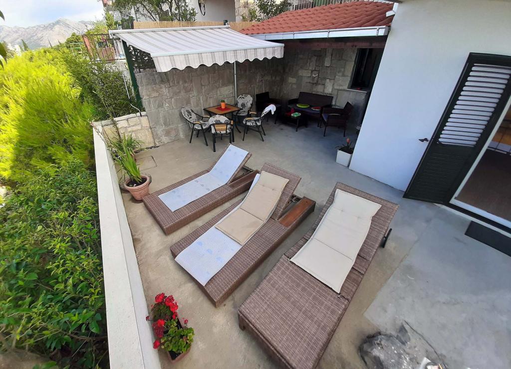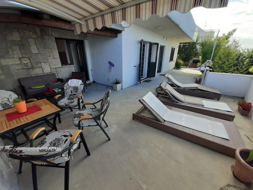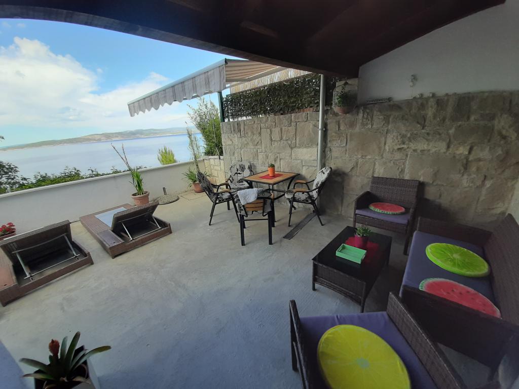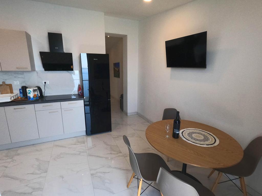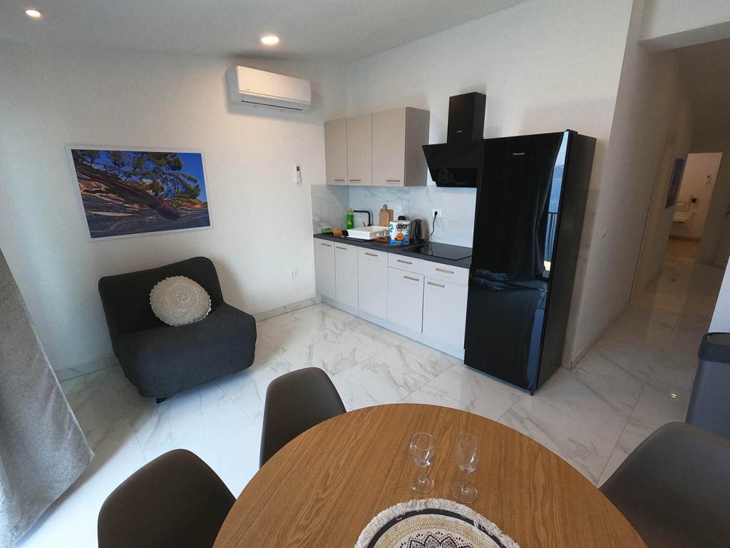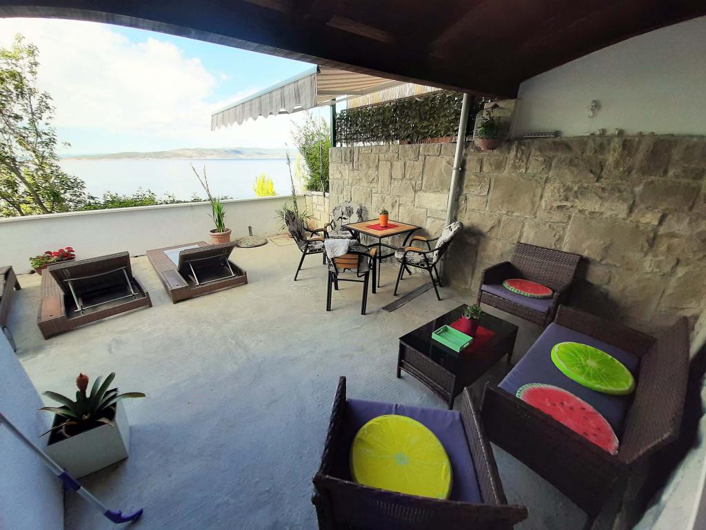 Pas gerenoveerd en volledig uitgerust appartement in een rustige omgeving tussen Baska Voda en Brela, gelegen eerste rij aan zee, boven een prachtig strand. De voorziening is gelegen op 10 minuten lopen (ca. 500 m) van het centrum van beide plaatsen. Groot terras met luifel en uitzicht op zee, 2 tweepersoonsslaapkamers, twee badkamers en keuken met toegang tot het terras. Alles nieuw. Het appartement is gelegen op een aparte verdieping met een aparte ingang, een grote tuin gescheiden van alle buren. Prive parkeerplaats in de schaduw net boven het huis.