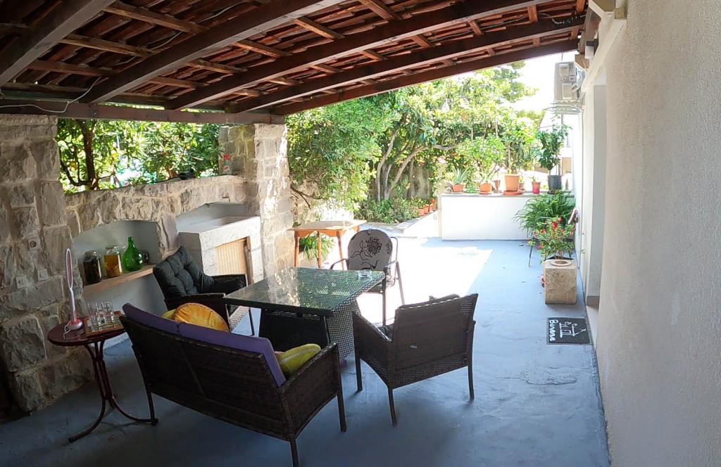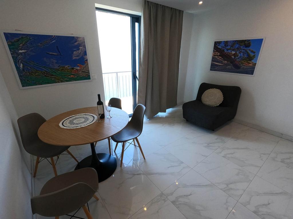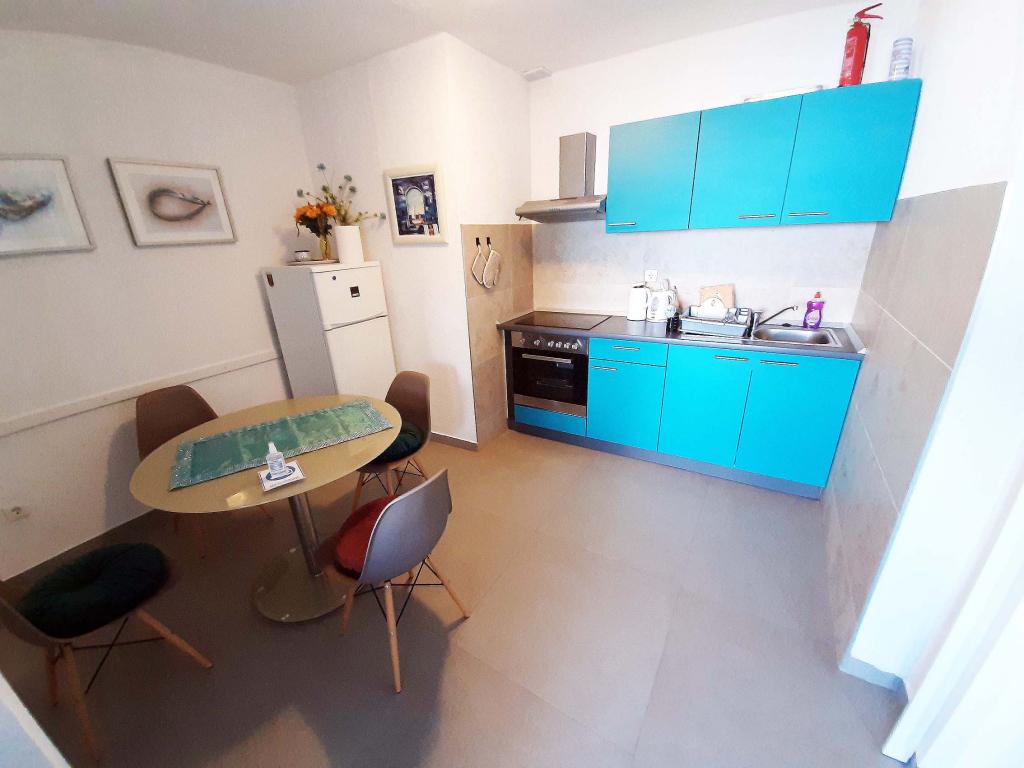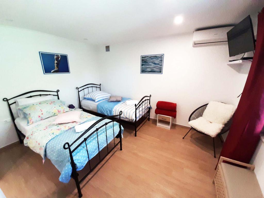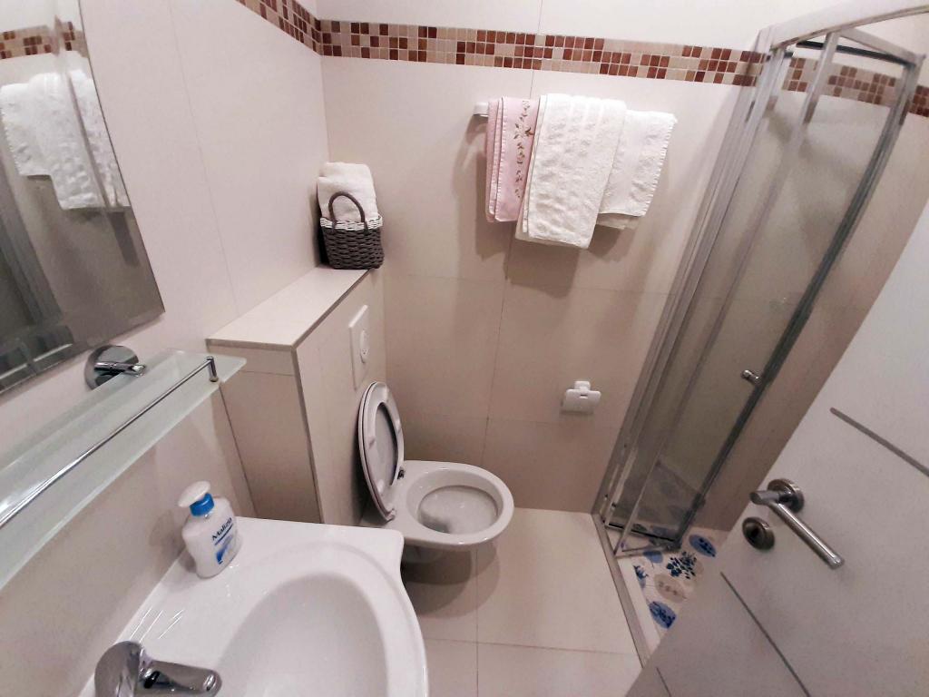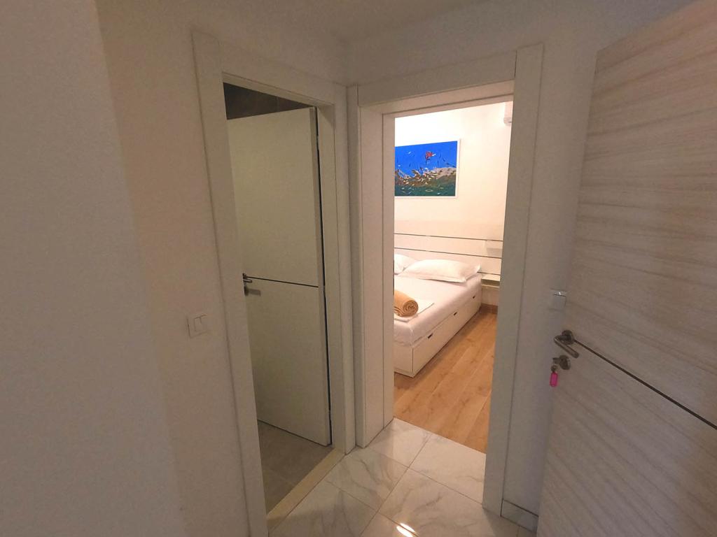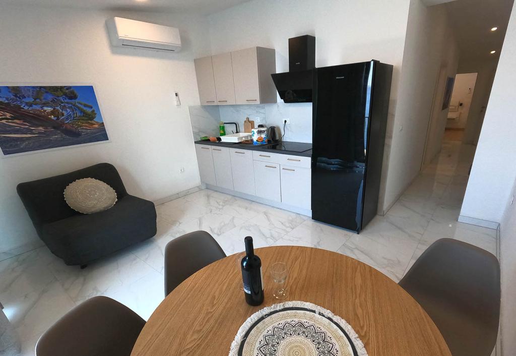 Pas gerenoveerd en volledig uitgerust appartement in een rustige omgeving tussen Baska Voda en Brela, gelegen eerste rij aan zee, boven een prachtig strand. De voorziening is gelegen op 10 minuten lopen (ca. 500 m) van het centrum van beide plaatsen. Groot terras met luifel en uitzicht op zee, 2 tweepersoonsslaapkamers, twee badkamers en keuken met toegang tot het terras. Alles nieuw. Het appartement is gelegen op een aparte verdieping met een aparte ingang, een grote tuin gescheiden van alle buren. Prive parkeerplaats in de schaduw net boven het huis.