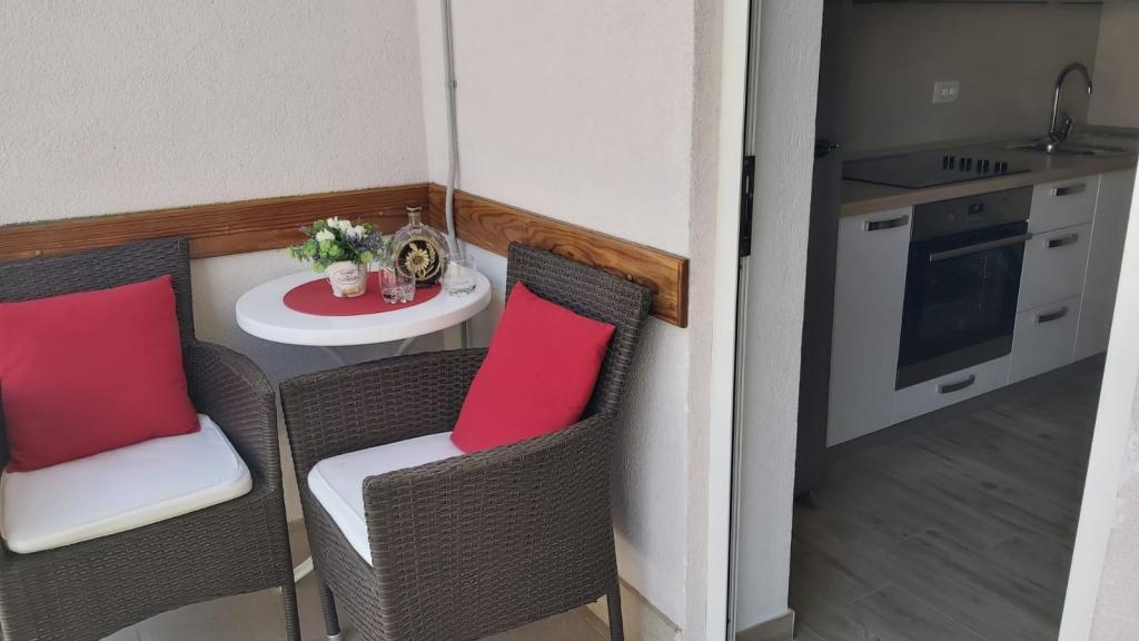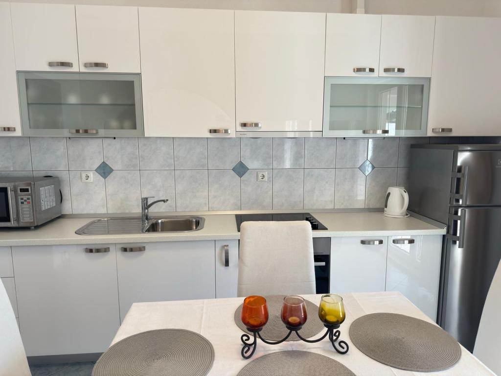 Zeer mooi appartement met uitzicht op zee. Grote keuken met apparatuur. Groot terras. Dicht bij de haven en het strand, 5 minuten lopen. In de buurt is er een dokter, een bakker en een winkel. Zeer aardige en behulpzame eigenaren. Om 5 uur kwamen ze bij ons om afscheid te nemen. Het appartement beschikt over parkeerplaatsen. ik raad aan