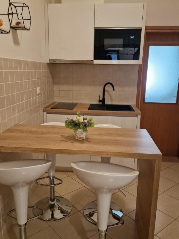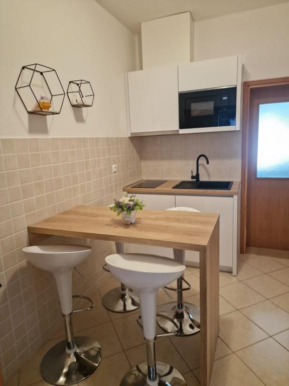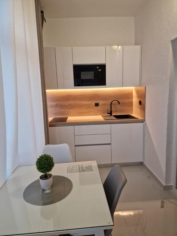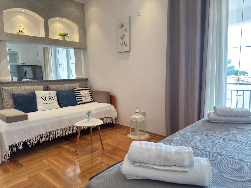 Wij zijn gevestigd in het centrum van Baška Voda, maar in een rustige omgeving, weg van de zomerdrukte. Wij bieden u comfortabel ingerichte appartementen, modern ingericht en van alle gemakken voorzien voor uw zorgeloze en aangename vakantie. We benadrukken de nabijheid van de zee en het strand, dat versierd is met de Blauwe Vlag!