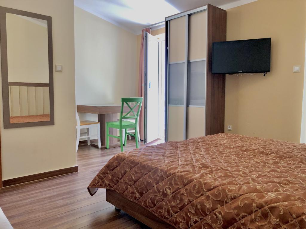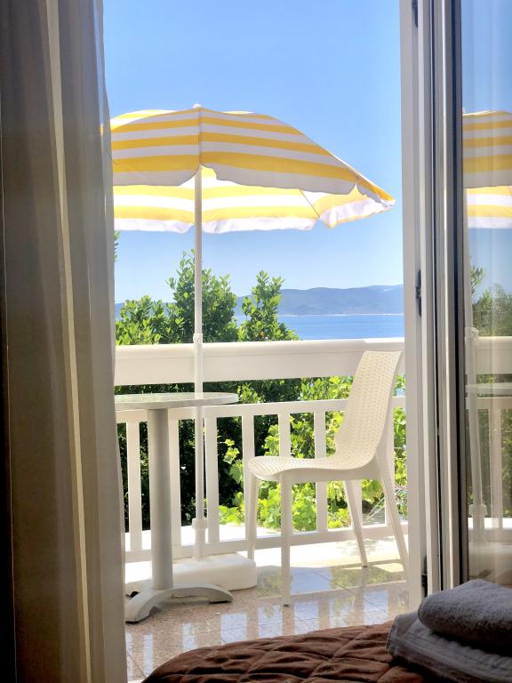 Inlusief wel Toeristenbelasting.Alle kamers en appartementen zijn smaakvol ingericht en elke kamer/elk appartement heeft een eigen balkon. De voorkant van het huis kijkt uit over de zee. Roken is verboden in alle kamers en appartementen. Huisdieren hebben helaas geen toegang! We hebben 3 tweepersoonskamers, die zijn uitgerust met het volgende: - WiFi - Airconditioning (gedeeltelijk) - koelkast - douche/toilet - GEEN KEUKEN We hebben ook 4 appartementen met de volgende opties: 3 bedden (2 1); tweemaal 4 bedden (2 2); 5 slaapplaatsen (4 1). Ze zijn voorzien van: - Wifi - Airconditioning (gedeeltelijk) - Eigen complete keuken - Woonkamer (m.u.v. appartementen 8 en 10) - Douche/toilet Extra services: - Parkeren mogelijk tegen meerprijs (ca. 200 meter, 24 uur bewaakt) - Als u gratis een kinderbedje wilt
