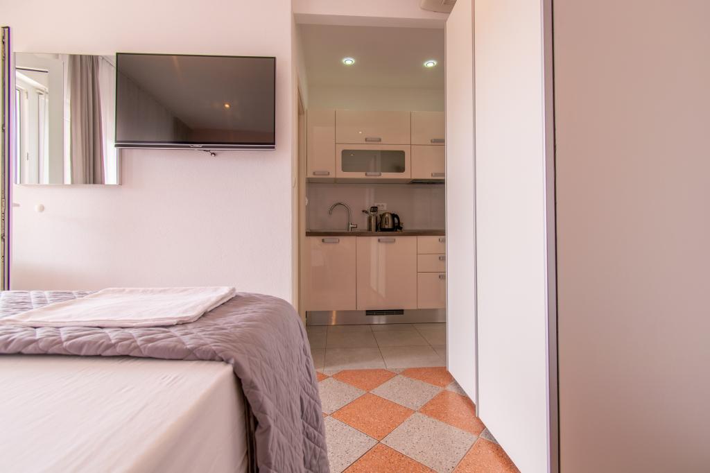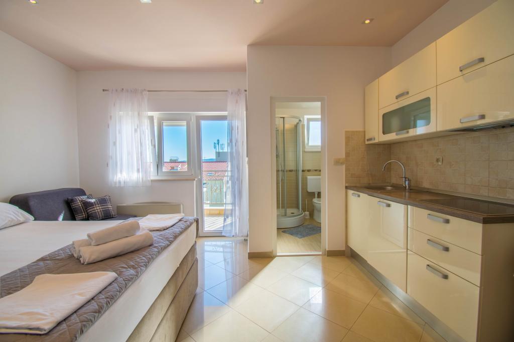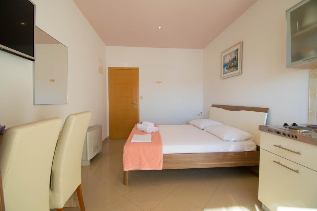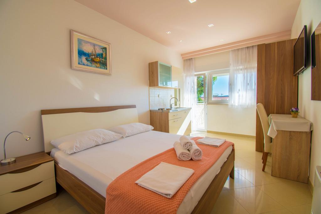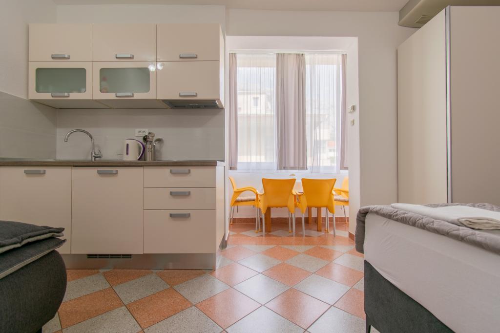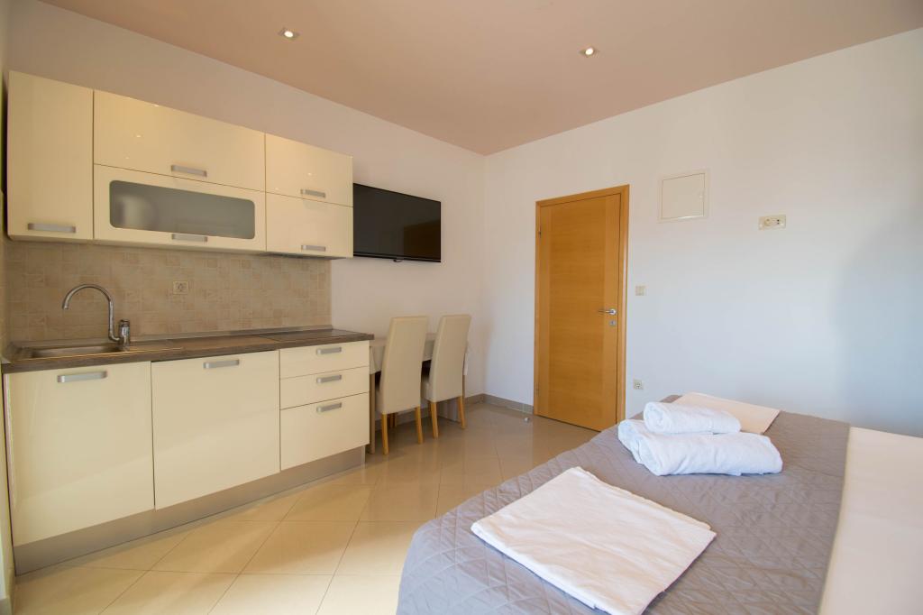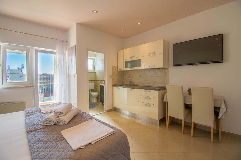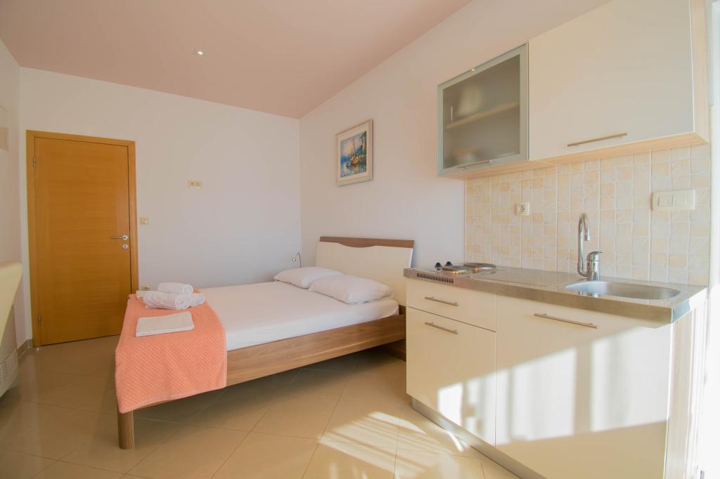 We verbleven in een studio-appartement 2+2. Het appartement is hetzelfde als op de foto's, zeer schoon en netjes, alle lof voor het appartement en het onderhoud ervan. De eigenares is zeer vriendelijk, niet opdringerig en zal je altijd helpen als je het nodig hebt... Het balkon in het appartement heeft een prachtig uitzicht, het uitzicht is betoverend. Wij zijn er erg blij mee en de kinderen hebben het erg naar hun zin gehad. Ik raad het iedereen van harte aan, je zult er geen spijt van krijgen!