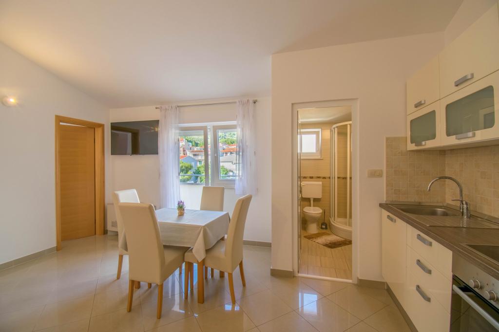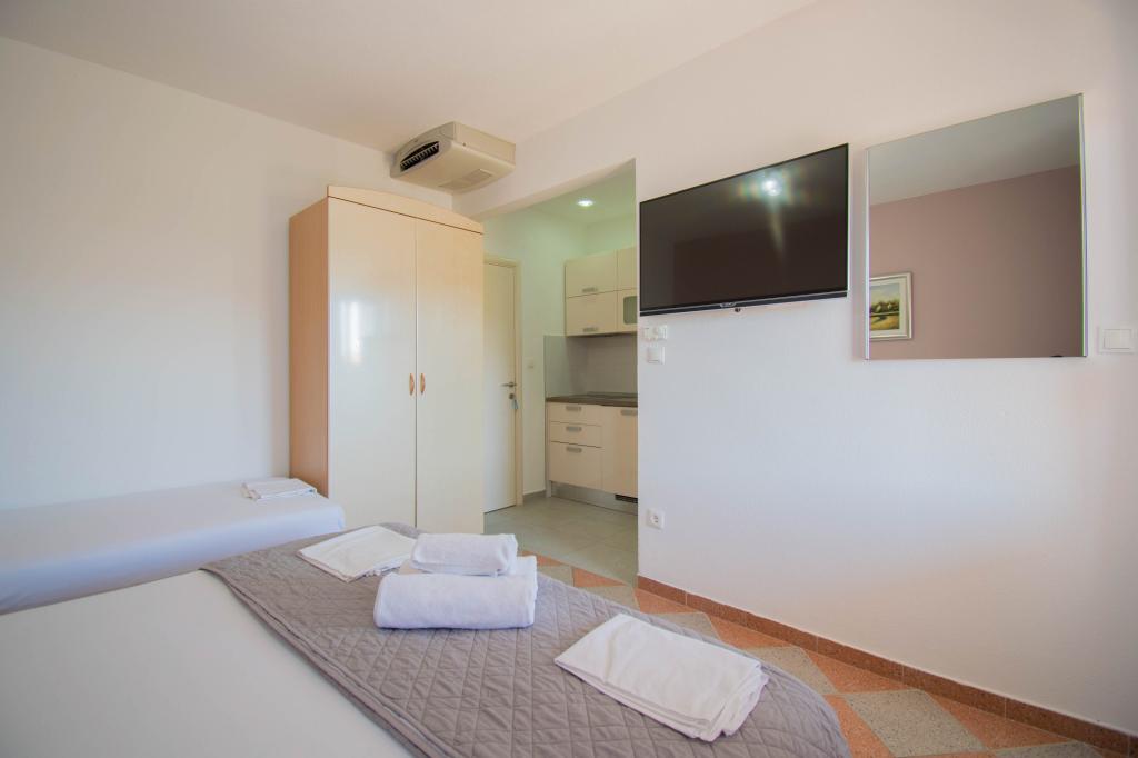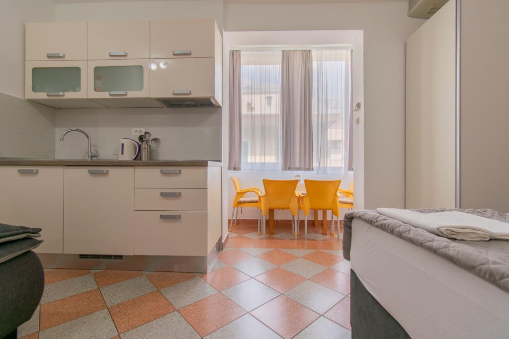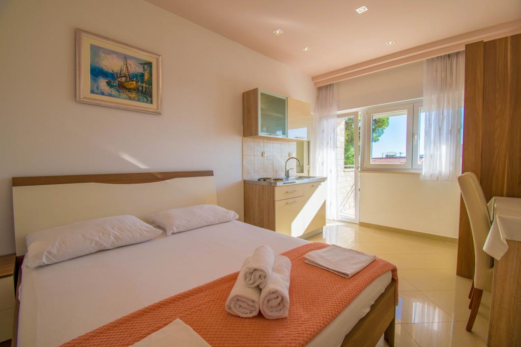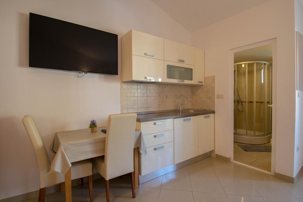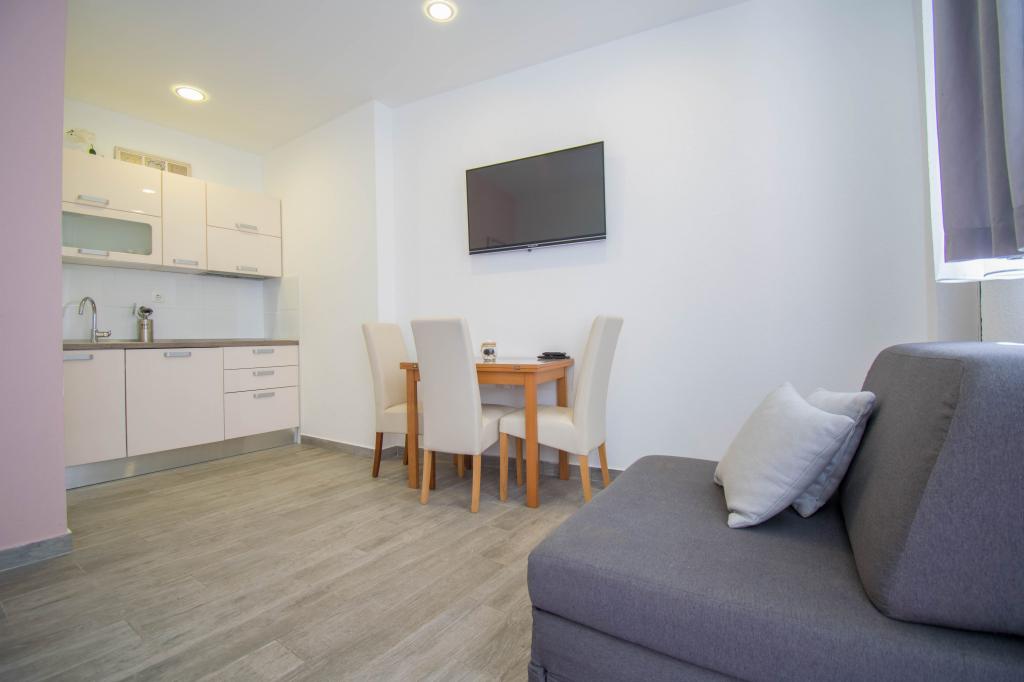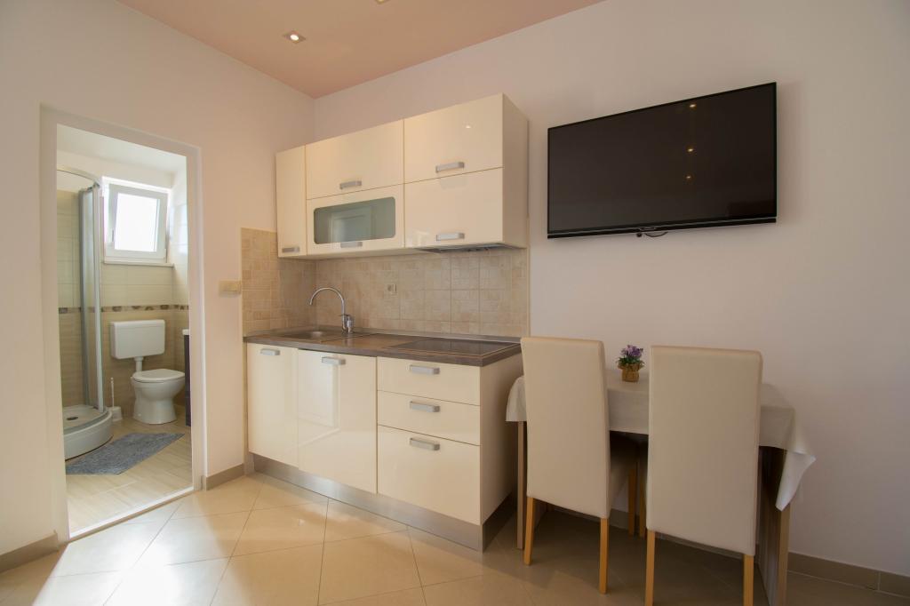 We verbleven in een studio-appartement 2+2. Het appartement is hetzelfde als op de foto's, zeer schoon en netjes, alle lof voor het appartement en het onderhoud ervan. De eigenares is zeer vriendelijk, niet opdringerig en zal je altijd helpen als je het nodig hebt... Het balkon in het appartement heeft een prachtig uitzicht, het uitzicht is betoverend. Wij zijn er erg blij mee en de kinderen hebben het erg naar hun zin gehad. Ik raad het iedereen van harte aan, je zult er geen spijt van krijgen!