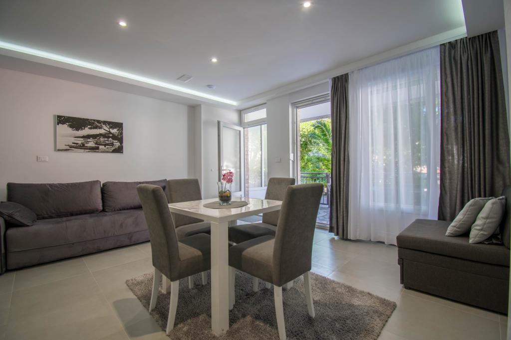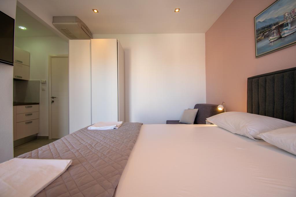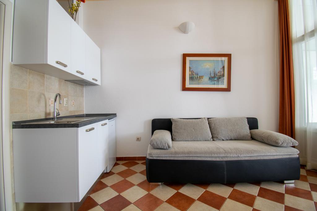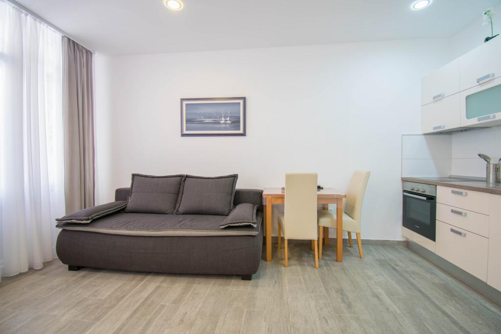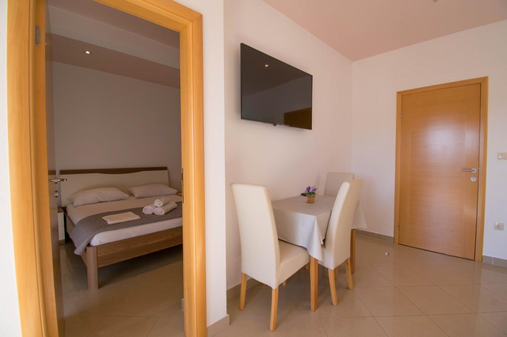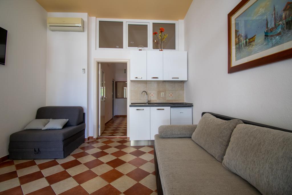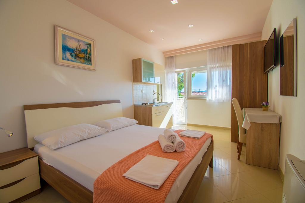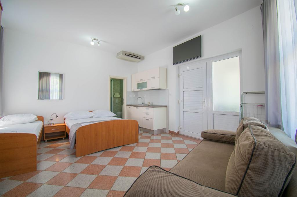 We verbleven in een studio-appartement 2+2. Het appartement is hetzelfde als op de foto's, zeer schoon en netjes, alle lof voor het appartement en het onderhoud ervan. De eigenares is zeer vriendelijk, niet opdringerig en zal je altijd helpen als je het nodig hebt... Het balkon in het appartement heeft een prachtig uitzicht, het uitzicht is betoverend. Wij zijn er erg blij mee en de kinderen hebben het erg naar hun zin gehad. Ik raad het iedereen van harte aan, je zult er geen spijt van krijgen!