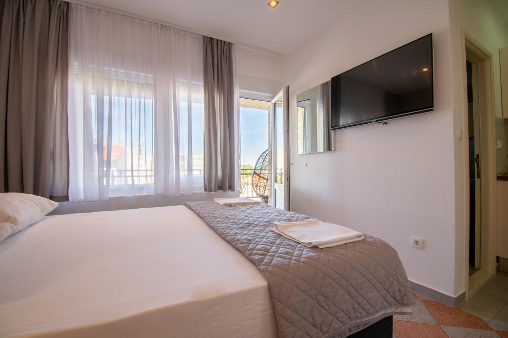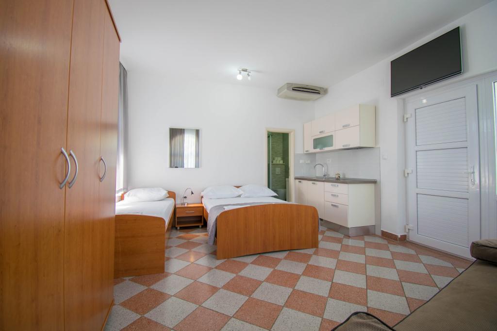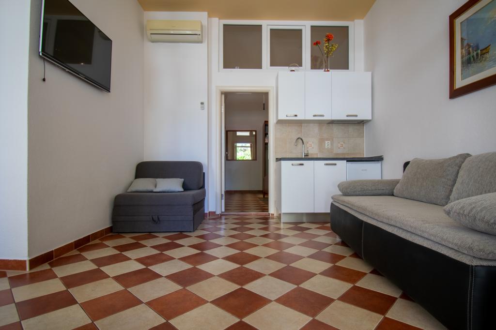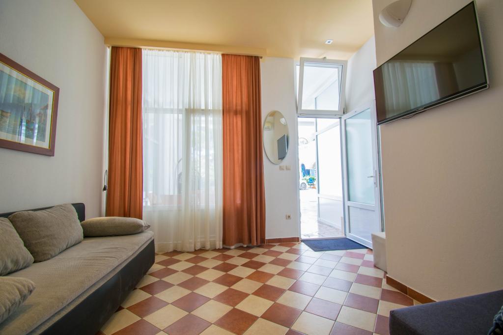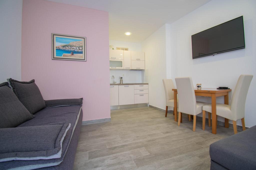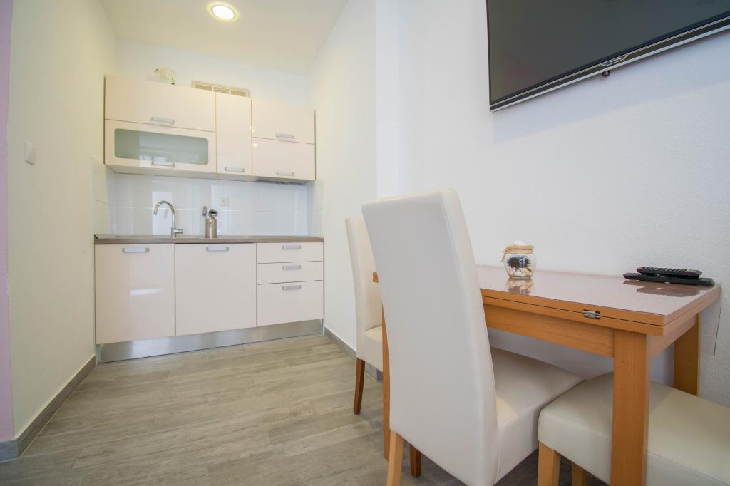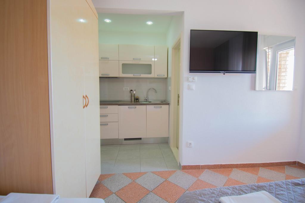 We verbleven in een studio-appartement 2+2. Het appartement is hetzelfde als op de foto's, zeer schoon en netjes, alle lof voor het appartement en het onderhoud ervan. De eigenares is zeer vriendelijk, niet opdringerig en zal je altijd helpen als je het nodig hebt... Het balkon in het appartement heeft een prachtig uitzicht, het uitzicht is betoverend. Wij zijn er erg blij mee en de kinderen hebben het erg naar hun zin gehad. Ik raad het iedereen van harte aan, je zult er geen spijt van krijgen!