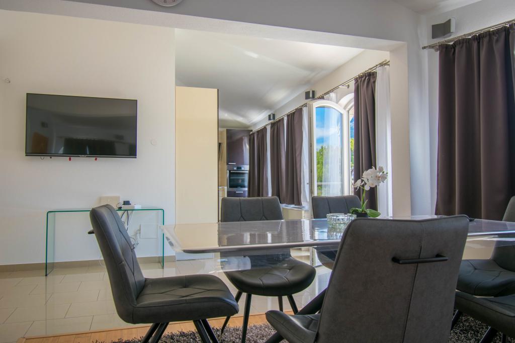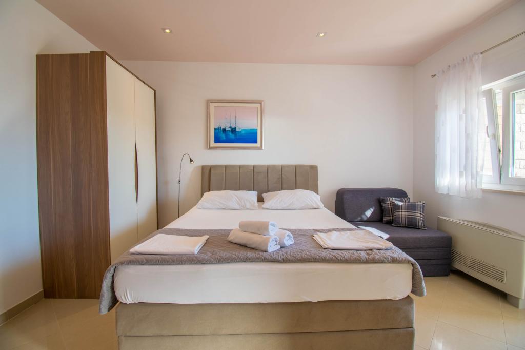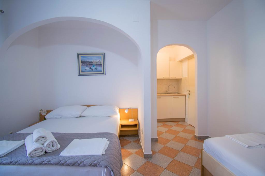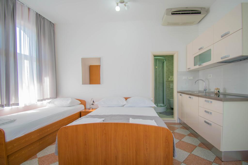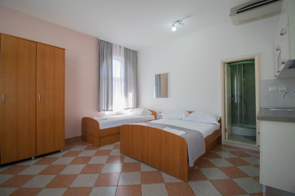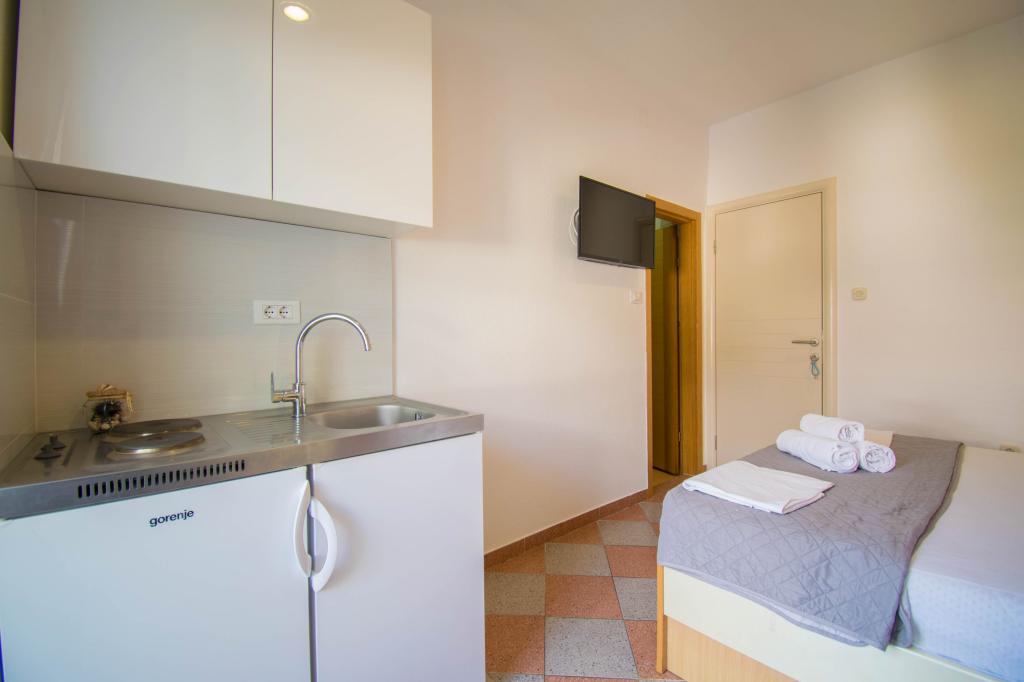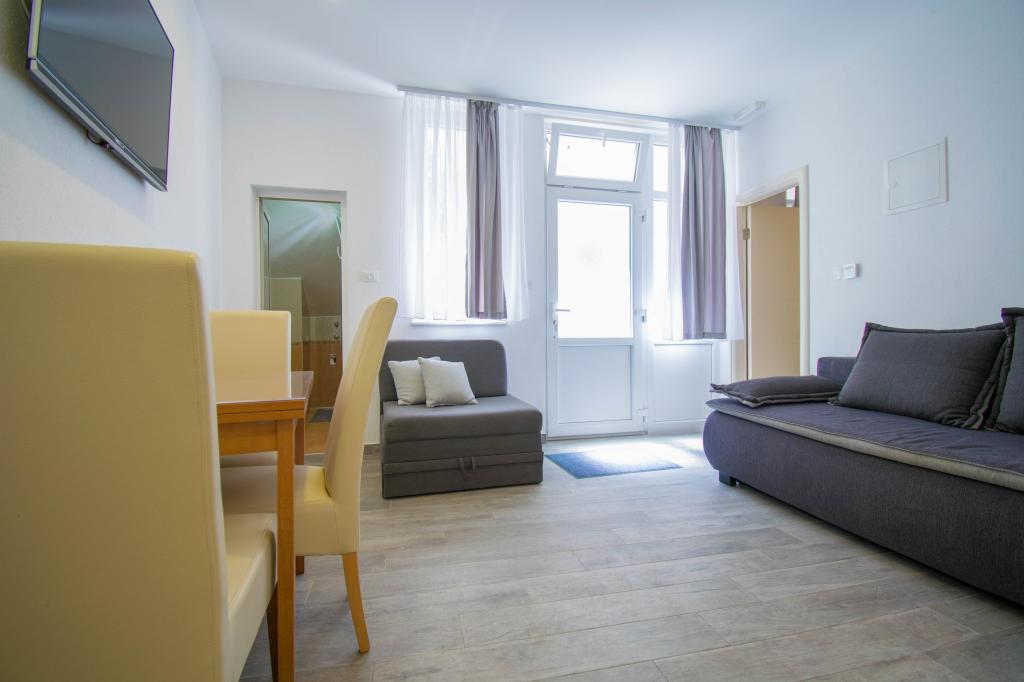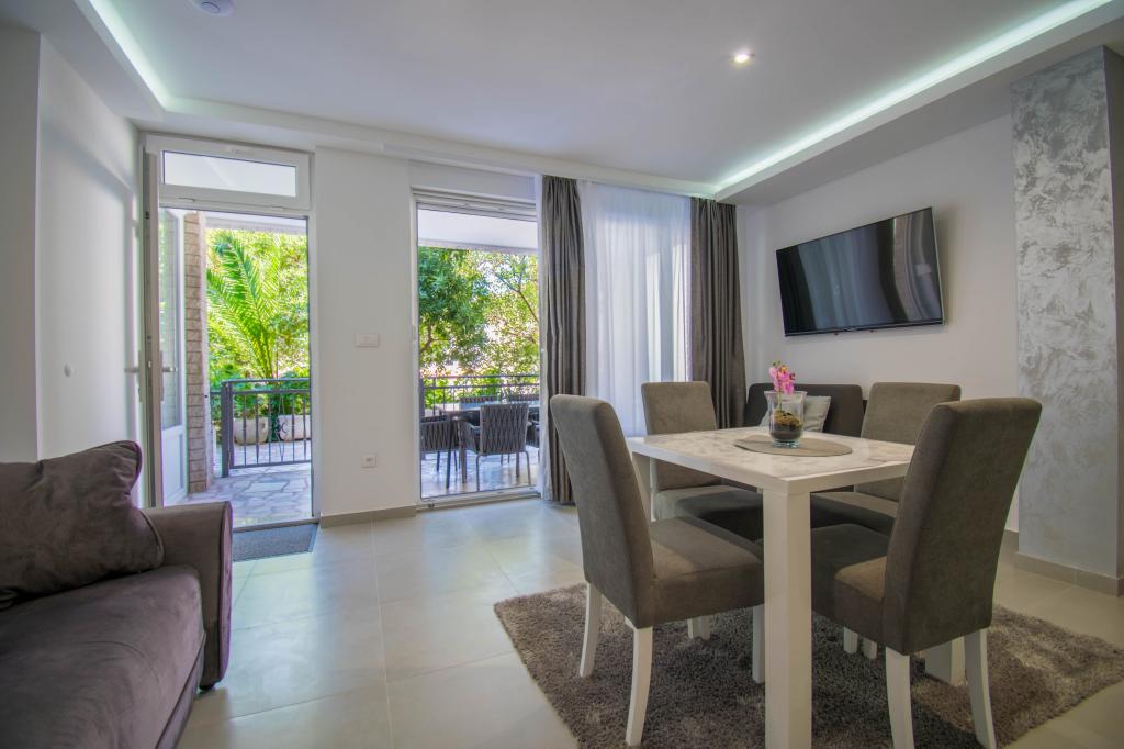 We verbleven in een studio-appartement 2+2. Het appartement is hetzelfde als op de foto's, zeer schoon en netjes, alle lof voor het appartement en het onderhoud ervan. De eigenares is zeer vriendelijk, niet opdringerig en zal je altijd helpen als je het nodig hebt... Het balkon in het appartement heeft een prachtig uitzicht, het uitzicht is betoverend. Wij zijn er erg blij mee en de kinderen hebben het erg naar hun zin gehad. Ik raad het iedereen van harte aan, je zult er geen spijt van krijgen!