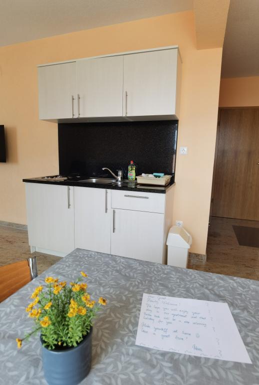 Het appartement was geweldig: een prachtig uitzicht op zee, ruime kamers, een zeer goed uitgeruste kitchenette en een groot balkon. Het appartement was ongelooflijk schoon – er was geen stofje te bekennen. De eigenaar was erg vriendelijk. We konden eerder inchecken – vóór de inchecktijd – nadat het appartement was schoongemaakt na de vorige gasten. De zee is direct verbonden met het strand, maar de dichtstbijzijnde toegang is helaas een lange trap, maar je kunt direct afdalen naar het strand en de boulevard met zijn restaurants en andere voorzieningen.