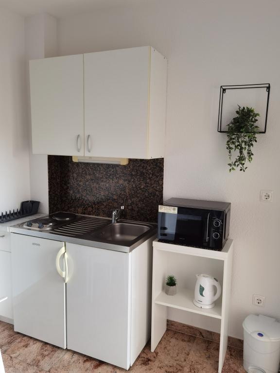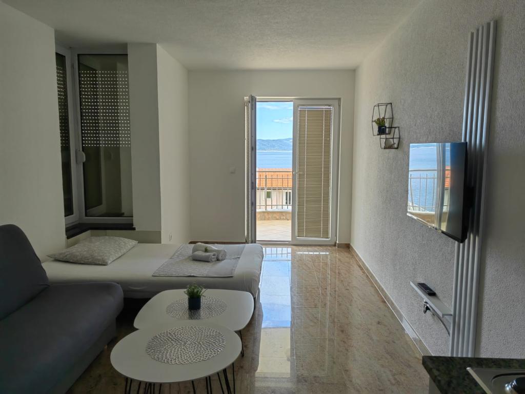 Villa Marić ligt in een rustig deel van Baska Voda, op 200 meter van de zee. De villa biedt een prachtig uitzicht op de zee, de eilanden en de omliggende bergen. Er zijn markten, restaurants en cafés in de buurt. De ruime appartementen bestaan uit een tweepersoonsslaapkamer, een badkamer, een keuken, een eetkamer en een woonkamer. In de woonkamer staat een slaapbank. Modern ingerichte appartementen maken uw verblijf comfortabeler: satelliet-tv, WiFi, airconditioning en het nodige keukengerei, en een terras met prachtig uitzicht op zee. Voor de villa is er een ruime parkeerplaats. Op verzoek en tegen een toeslag kan er in de garage geparkeerd worden. De rustige omgeving rondom het huis zorgt voor rust van straatlawaai en veiligheid voor kinderen. Vriendelijk personeel staat altijd voor je klaar. Wij heten u van harte welkom en wensen u een thuisgevoel. We hopen dat u geniet van onze appartementen en dat u onvergetelijk zult genieten van Baška Voda! We kijken uit naar uw komst!