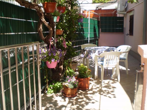 Appartement charmante ondanks zijn eenvoud en relatief bescheiden. Super locatie - in het hart van de prachtige oude stad, zeer dicht bij de belangrijkste straat lopen en toch is het niet afkomstig is van enig tumult en lawaai. De enige ergernis is het geluid van de klokken van een nabijgelegen kerk, maar daarvoor moet je wennen. Ook dicht bij het strand, waar geen problemen een plaats voor veroudering kon vinden. De vriendelijke gastheren, zeer gastvrij en behulpzaam. Het appartement beschikt over een terras in de schaduw van de wijnstokken, waar u kunt eten en drinken en vergasten de lokale wijn.