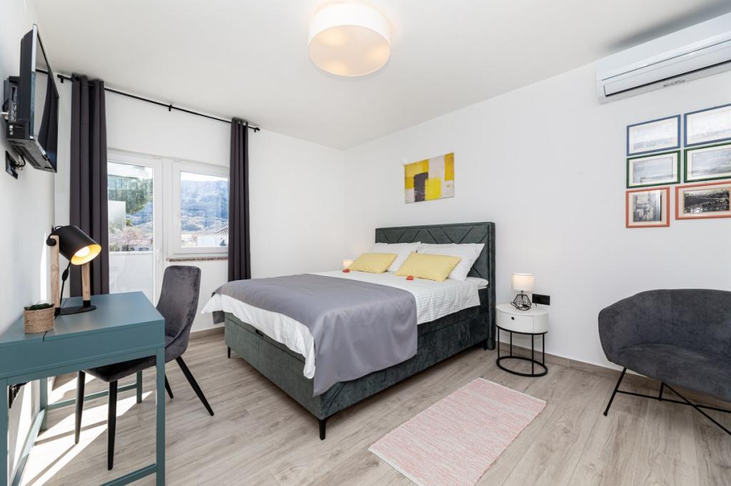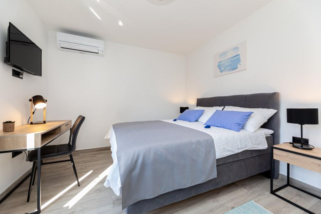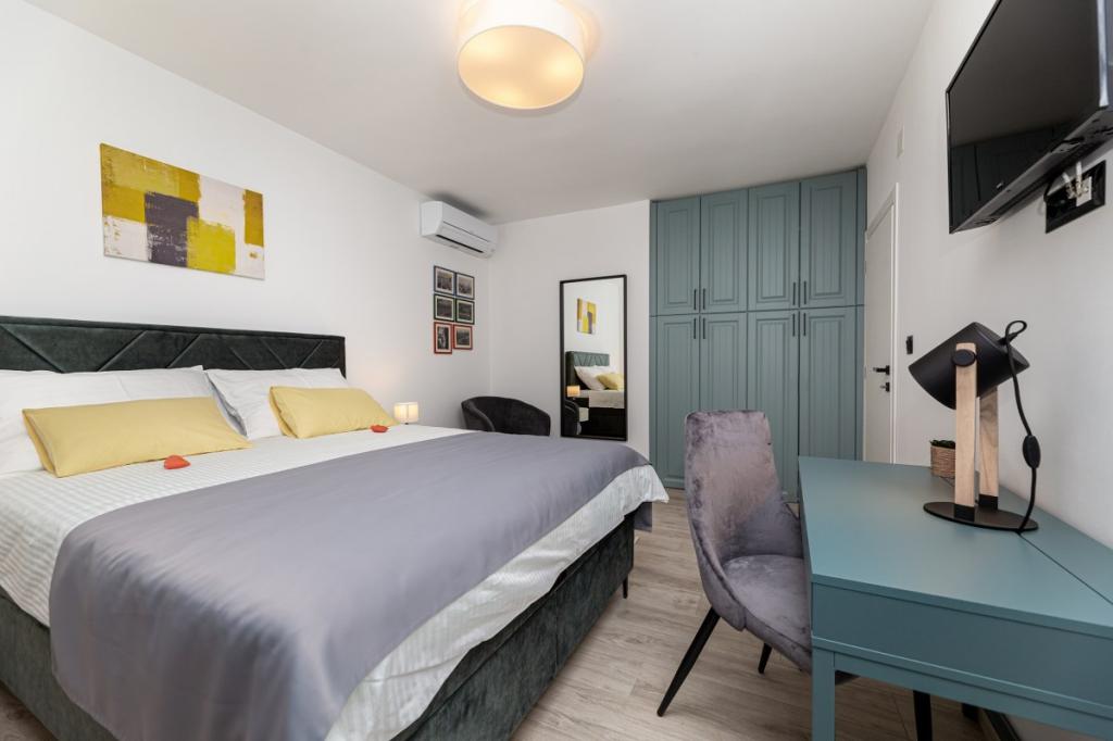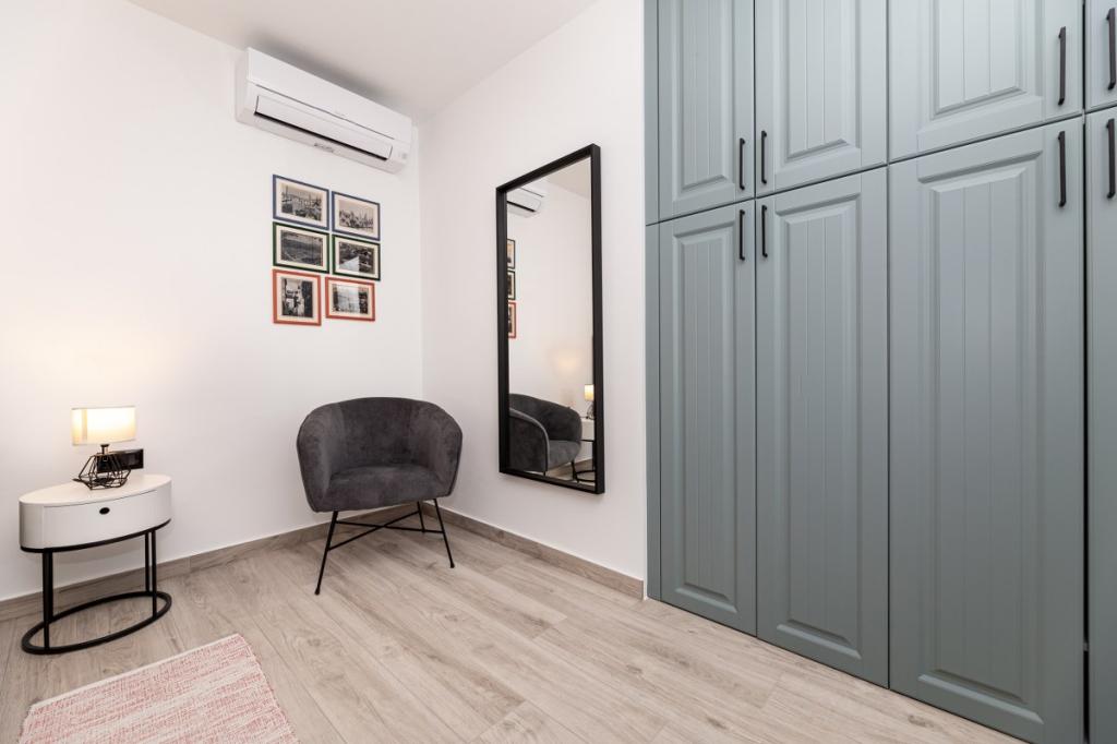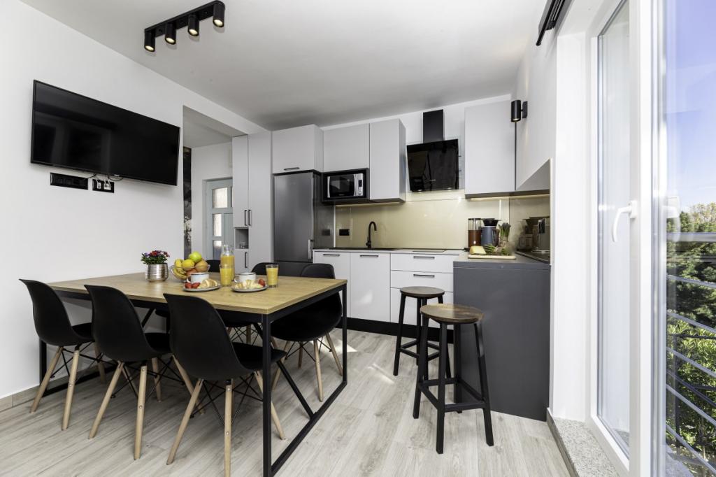 Modern appartement in een rustige omgeving, ongeveer 200 m van de zee. Het is gelegen op de 1e verdieping van een gezinswoning. De faciliteit ligt op 5 tot 10 minuten lopen van het strand of het stadscentrum en heeft 2 parkeerplaatsen. Het appartement bestaat uit 3 slaapkamers, waarvan 2 met een balkon. Elke kamer is voorzien van airconditioning, satelliet-tv en een haardroger. Keuken uitgerust met koelkast, vriezer, vaatwasser, kookplaat, magnetron, koffiezetapparaat, waterkoker, broodrooster en alle benodigde keukengerei. De woonkamer is ook voorzien van airconditioning en heeft satelliet-tv. Het appartement heeft 2 badkamers met douche. WI-FI bij de prijs inbegrepen. Het appartement heeft ook een tuinterras met zitje en barbecue. Wij wensen u een prettig verblijf in ons appartement.