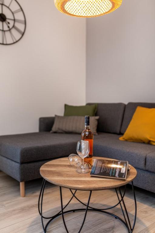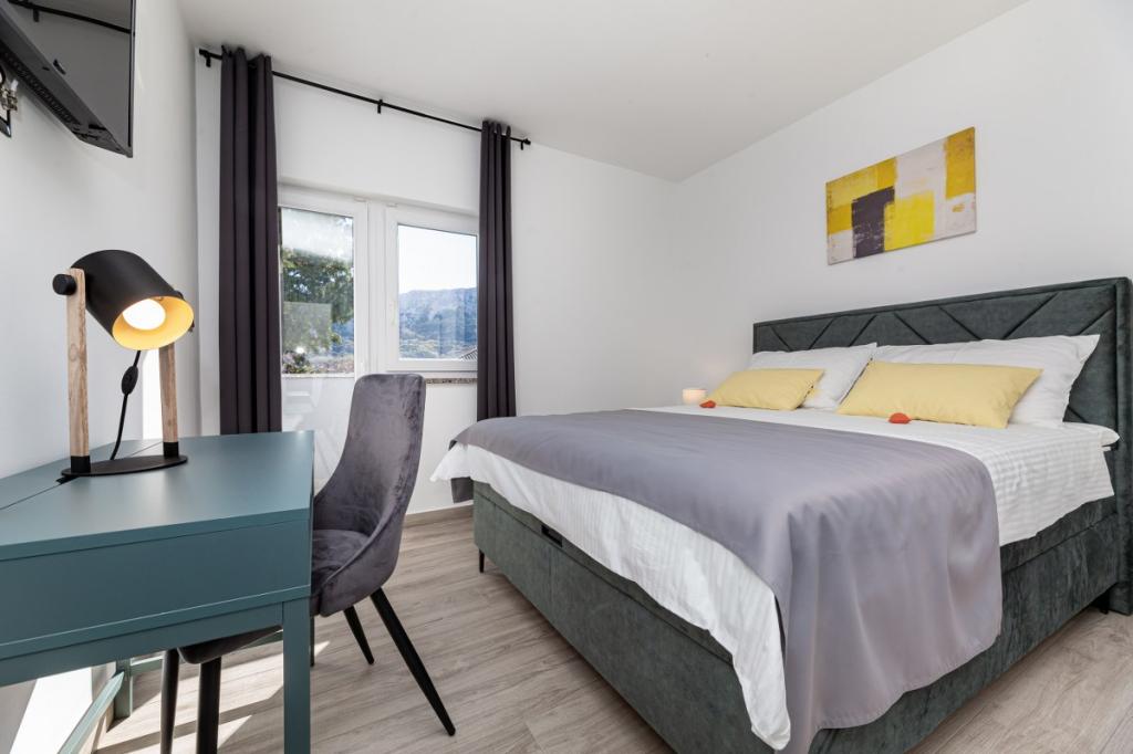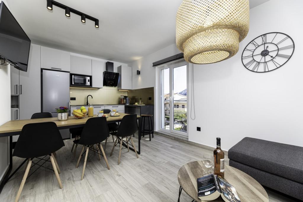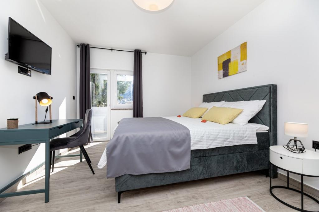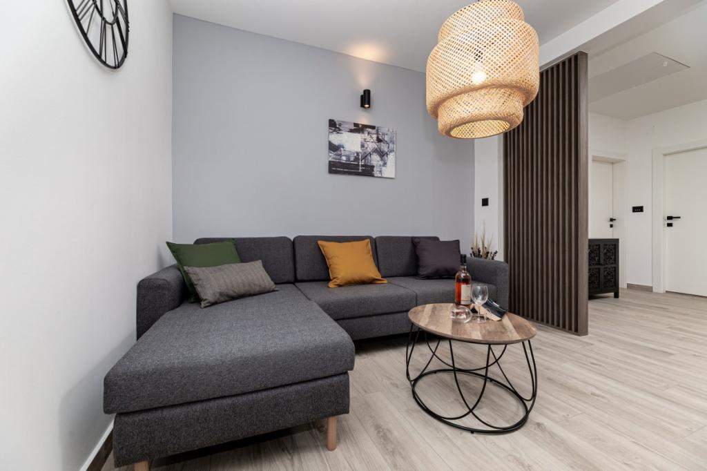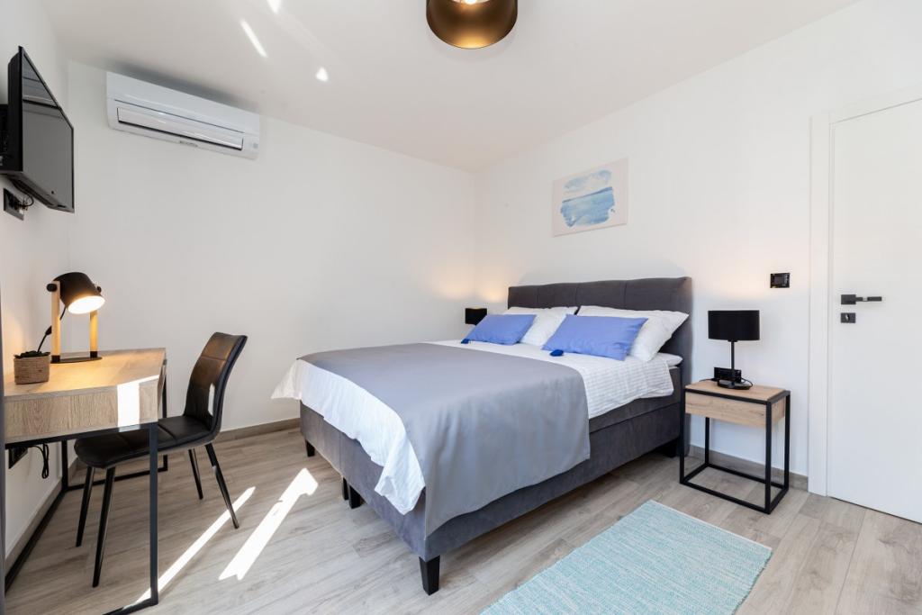 Modern appartement in een rustige omgeving, ongeveer 200 m van de zee. Het is gelegen op de 1e verdieping van een gezinswoning. De faciliteit ligt op 5 tot 10 minuten lopen van het strand of het stadscentrum en heeft 2 parkeerplaatsen. Het appartement bestaat uit 3 slaapkamers, waarvan 2 met een balkon. Elke kamer is voorzien van airconditioning, satelliet-tv en een haardroger. Keuken uitgerust met koelkast, vriezer, vaatwasser, kookplaat, magnetron, koffiezetapparaat, waterkoker, broodrooster en alle benodigde keukengerei. De woonkamer is ook voorzien van airconditioning en heeft satelliet-tv. Het appartement heeft 2 badkamers met douche. WI-FI bij de prijs inbegrepen. Het appartement heeft ook een tuinterras met zitje en barbecue. Wij wensen u een prettig verblijf in ons appartement.