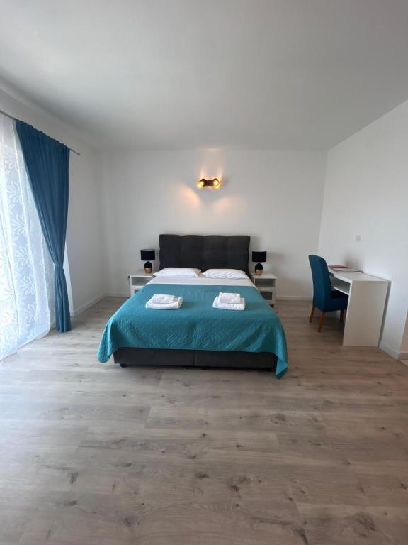 Apartments Velnić ligt in Baška op het eiland Krk, vlak bij het busstation en de waterkant. De faciliteit biedt gratis WiFi en gratis parkeergelegenheid. Het appartement heeft een flatscreen-tv en een eigen badkamer met een haardroger en een douche. Barbecuebenodigdheden en een kleine hoek voor kinderen zijn beschikbaar voor gasten in het appartement. Gasten van het appartement Velnić kunnen wandelen in de buurt of ontspannen op het balkon met een prachtig uitzicht over het hele bekken en het prachtige strand. Populaire bezienswaardigheden in de buurt van het gebouw zijn de kerk van St. Lucie in Jurandvor, de haven van Baška en de kerk van St. Merk. De luchthaven van Rijeka ligt op 46 km van Velnić Apartments.