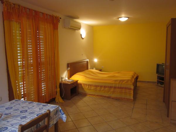 In het appartementencomplex zijn er 4 appartementen. Van deze twee grote suites voor een totaal van elk 4 personen met 42 m2. In de achterkant van het huis zijn er 2 studio's voor 2 personen. In het gebouw is er parkeergelegenheid met parkeerplaats voor elk appartement. Alle appartementen zijn voorzien van airconditioning en satelliet-tv. Appartementencomplex ligt op 10 minuten lopen van het beroemde strand (1800 meter lang, die is vooral geschikt voor kinderen) en een 10 minuten lopen naar het centrum van de stad. In de buurt zijn er twee winkels op een afstand van 100 meter, en een zeer goed restaurant. Schoonmaak is inbegrepen in de prijs, is het beddengoed elke 7 dagen verschoond.