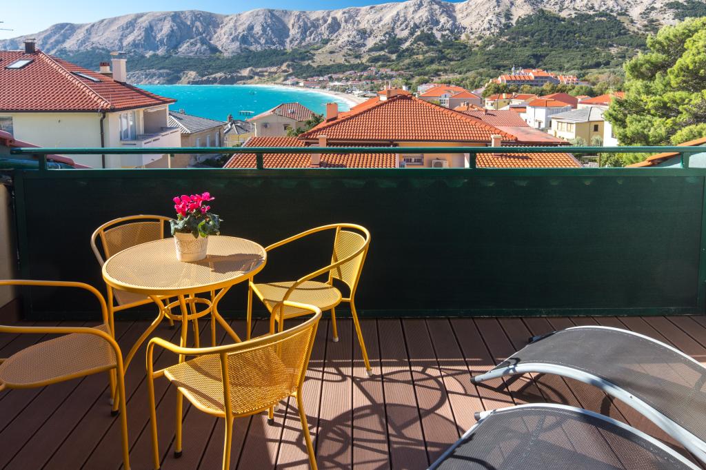 Apartments DDD ligt in Baška op het eiland Krk, op 2 minuten lopen van het strand Vela Baška. Het biedt accommodatie met gratis WiFi, barbecuefaciliteiten en een tuin. Tuin en gratis privéparkeergelegenheid. Het huis ligt midden in het centrum, vlak bij het strand. De accommodaties zijn voorzien van airconditioning, een zithoek, een flatscreen-tv met satellietzenders, een keuken en een terras of balkon met uitzicht op zee en de bergen. De accommodaties beschikken over een volledig uitgeruste eigen badkamer met een douche en een haardroger. Populaire bezienswaardigheden in de buurt van Apartments DDD zijn onder andere het Helena-strand, het Bunculuka-strand en het busstation van Baška. De luchthaven van Rijeka ligt op 44 km van de accommodatie.