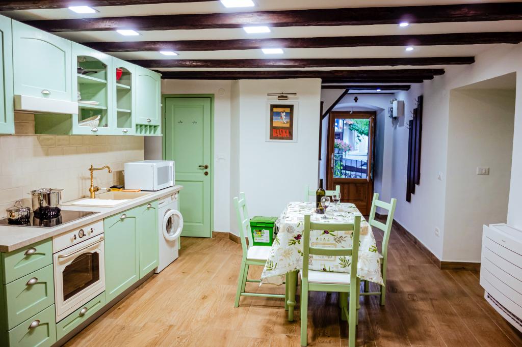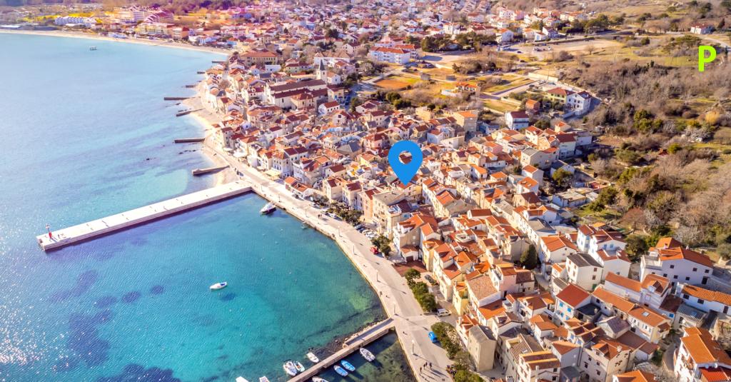 Op een steenworp afstand van de zee, een bescheiden hoekje voor twee personen waar u beschutting en comfort kunt vinden na een dag wandelen en zwemmen in de heldere zee. De appartementen hebben alles wat nodig is om twee personen comfortabel te laten voelen: vaatwasser, wasmachine, airconditioning en wifi. Het heeft een zeer gunstige ligging in het centrum van de stad, het is gelegen in het oudste historische deel van Baška. Tegenover de studio staat het eerste stenen huis in Baška, gebouwd in 1525 (MDXXV). Het ligt naast een oude waterfontein. Er zijn winkels, restaurants, bars en een vismarkt in de buurt. Om het oude deel van de stad en de haven te behouden, is autoverkeer niet toegestaan. De studio heeft een beveiligde parkeerplaats nabij het centrum. Het is een ideale plek voor twee personen die willen sporten, wandelen bij zonsopgang of zonsondergang, genieten van de gastronomische specialiteiten van Baška in de karakteristieke bars van het oude gedeelte van Baška. Wandelen langs de lange promenade langs de zee en de geur van de zee inademen of baden onder het maanlicht en de sterren