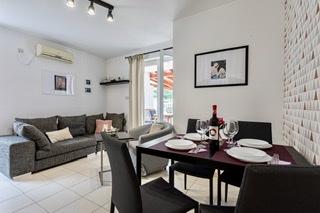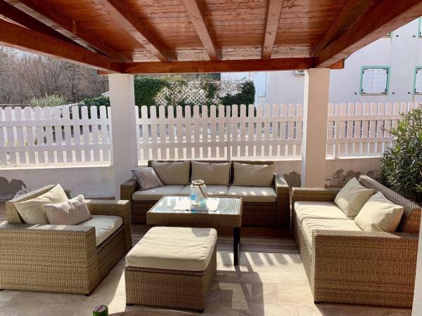 Modern ingericht en volledig uitgerust appartement met een groot terras en tuin. Het is gelegen in Baška, het populairste zomerresort op het eiland Krk, bekend om zijn mooiste zandstrand. Het appartement is gelegen in een rustige straat op slechts 400 meter van het belangrijkste strand van Bašča - het Vela-strand, alle restaurants, cafés en een promenade die het 3 km lange strand omringt. Het appartement bestaat uit een keuken uitgerust met een kookplaat, oven, koelkast, benodigde serviesgoed, waterkoker, broodrooster, filterkoffiezetapparaat. De slaapkamer is uitgerust met een bed van 160x200 en een kledingkast. Badkamer met douchecabine. De woonkamer is voorzien van een televisie, een schotelantenne, een grote bank en een eettafel. Het tweede bed, afmeting 160x200, bevindt zich in de woonkamer. Het appartement is voorzien van airconditioning en onbeperkte WiFi. Het terras is voorzien van tuinmeubilair en in de tuin kunt u heerlijk ontspannen op de ligstoelen in de tuin en genieten van de zonnestralen. Er is 1 parkeerplaats per appartement voorzien aan de voorzijde van het gebouw.