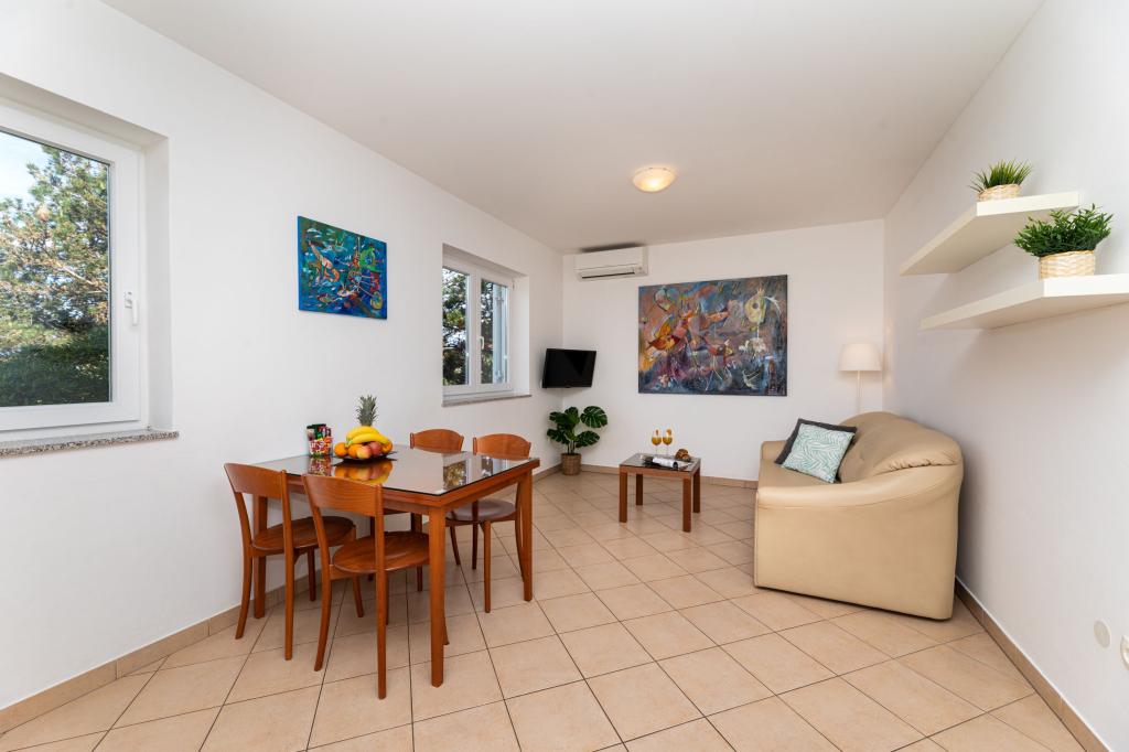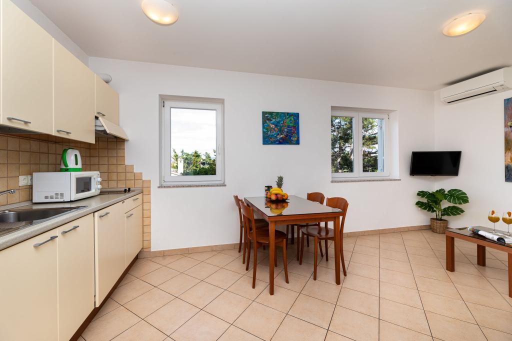 Apartments Klemencic ligt in het rustige deel van Baška (Zarok), op slechts 200 meter van een van de mooiste stranden van de noordelijke Adriatische Zee en op 15 minuten lopen van de oude Baska-basiliek. We kunnen 4 appartementen aanbieden: 2 x A4 / 2 en 2 x A2 / 2. Alle appartementen hebben een volledig uitgeruste keuken, satelliet-tv, airconditioning en gratis WiFi (WiFi). Parkeerplaatsen zijn beschikbaar op het erf van het gebouw. We zijn blij dat we u vanaf onze zomer van 2016 ons vierde appartement op de begane grond van ons huis kunnen aanbieden. Nieuw appartement A4 / 2 (ID: 49605) bestaat uit 2 slaapkamers, 2 badkamers, een keuken en een woonkamer met een extra bed voor nog eens twee personen. Heeft een vaatwasser, een wasmachine ,. . Extra bed mogelijkheid - opklapbed op matraswielen die naar het appartement kunnen worden gebracht. Het kan worden gebruikt voor de 5e persoon in appartementen A2 / 2 of voor de 7e persoon in appartement A4 / 2. Gasten kunnen gebruik maken van een kinderbedje (op aanvraag), een kinderstoel / wieg (op aanvraag) en een babywieg (op aanvraag)