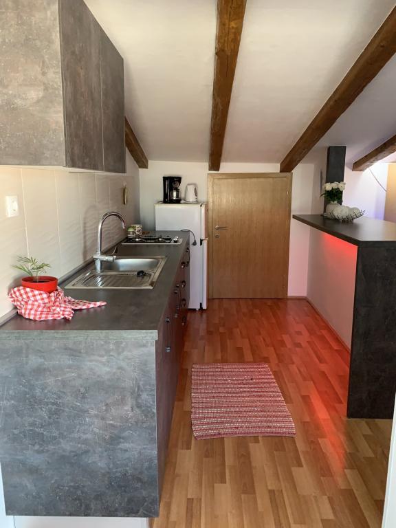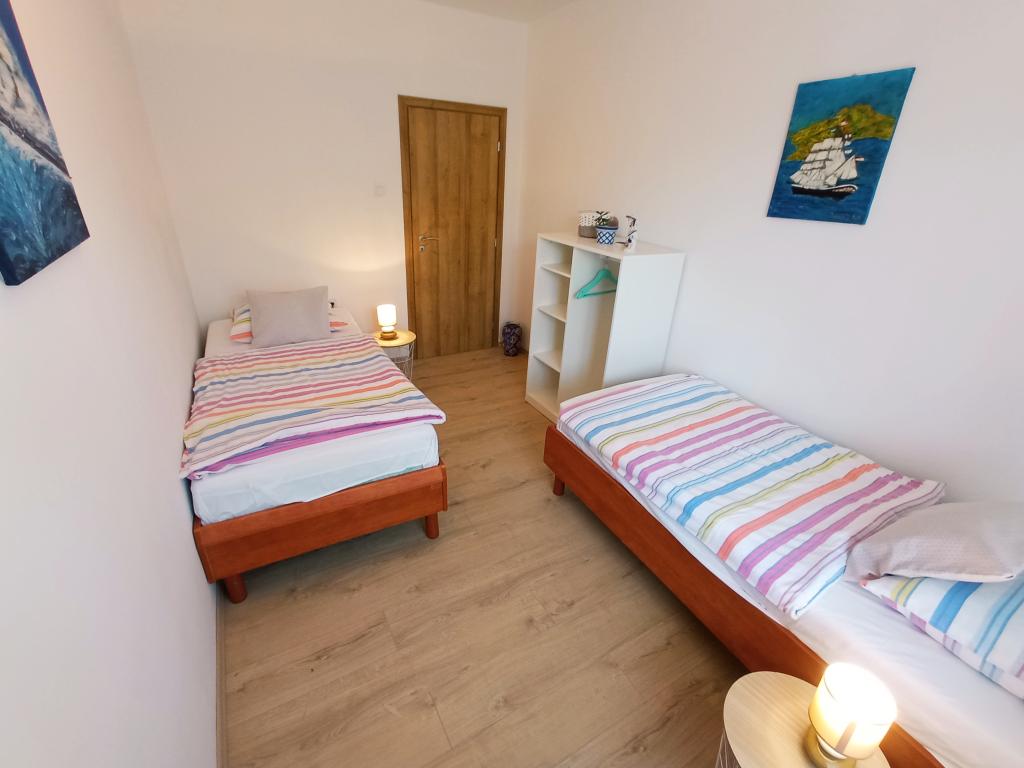 Accommodatie faciliteit is gelegen in het centrum, 3 min lopen naar de hoofdstraat, 5 min naar het strand, winkels, bakkerijen, slagers, restaurants. Centrum, en toch een rustige omgeving met parkeergelegenheid, WiFi, airconditioning. Gasten kunnen genieten van ons mooiste kiezelstrand aan de Adriatische Zee, de promenades aan zee, maar ook wandelen (30 of zo gemarkeerde paden van 2-12 km) omdat Baska in een vallei ligt, rond zijn interessant, rotsachtig, heuvels, rijk in geneeskrachtige kruiden zoals salie, immortelle. De heuvels zijn vooral mooi in juni als de jeneverbessen bloeien en de bedwelmende geur zich door de lucht verspreidt. Fietsliefhebbers zullen geen spijt krijgen van een bezoek aan dit gebied. Er zijn ook gemarkeerde paden voor hen.Elke dag zijn er rondvaartboten die toeristen naar de naburige eilanden (Goli otok, Grgur, Rab) brengen. Het is dus nooit saai. Wie Baška één keer bezoekt, komt altijd terug en vergelijkt elke andere plaats ermee. Baska is een bezoek waard. De appartementen zijn eenvoudig, functioneel en schoon. We staan tot uw beschikking voor alle informatie en we zullen altijd helpen.