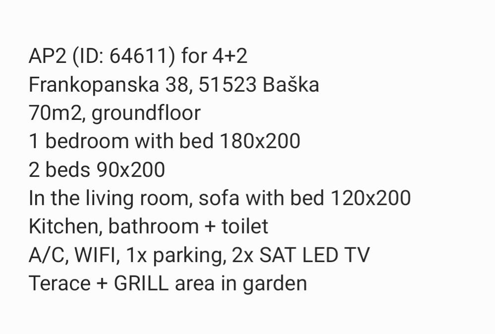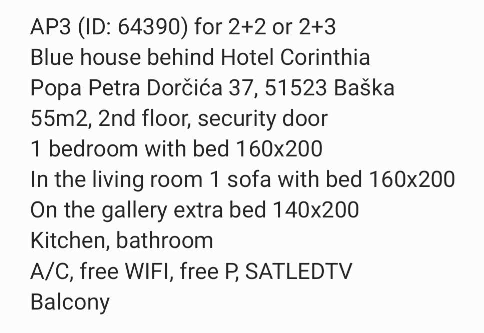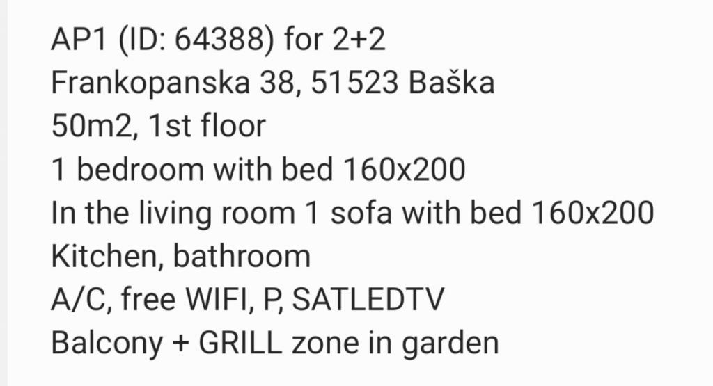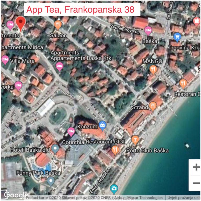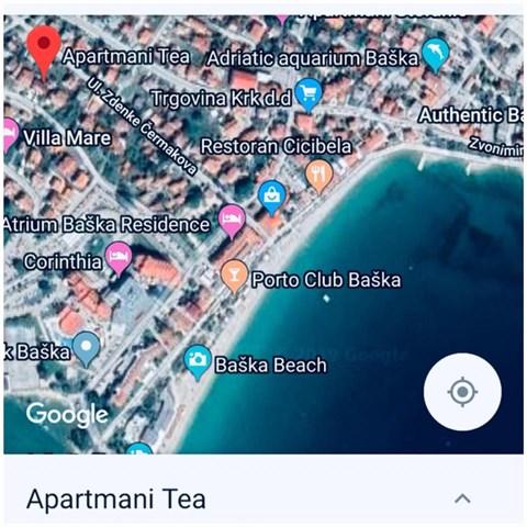 Apartments Tea zijn gezinsappartementen in Baška op het eiland Krk. Ze bevinden zich op verschillende locaties in Baška, vlakbij Hotel Corinthia Sunny en in Draga Baška. De appartementen zijn van alle gemakken voorzien en liggen in een rustige straat vlakbij het centrale strand Vela Plaža.