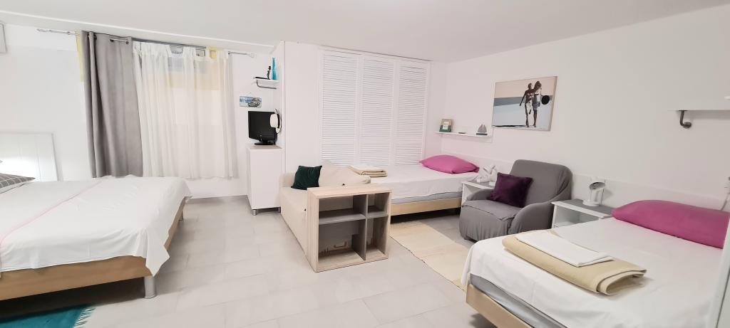 Accommodatie eenhedenBij het boeken is een niet-restitueerbare aanbetaling van 40% van het totaalbedrag vereist. De aanbetaling wordt betaald op basis van het aanbod. Het resterende bedrag van uw reservering dient bij aankomst in het appartement contant te worden betaald. De prijs per nacht is inclusief registratie bij de VVV, toeristenbelasting, gebruik van airconditioning, babybedje, wifi, parkeren en milieubelasting. Inchecken is op de dag van aankomst vanaf 14:00 uur en uitchecken op de dag van vertrek tussen 07:00 en 09:00 uur. Bij het boeken dient u het exacte aantal personen dat in het appartement verblijft op te geven. Alle personen die in het appartement verblijven, dienen geregistreerd te zijn bij de VVV. Een babybedje dient bij de boeking te worden gereserveerd. Er zijn geen extra kosten verbonden aan een babybedje. Huisregels: Feesten zijn niet toegestaan. Gasten mogen geen lawaai maken tussen 23:00 en 07:00 uur.