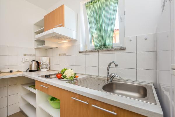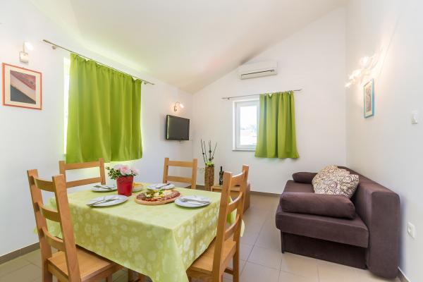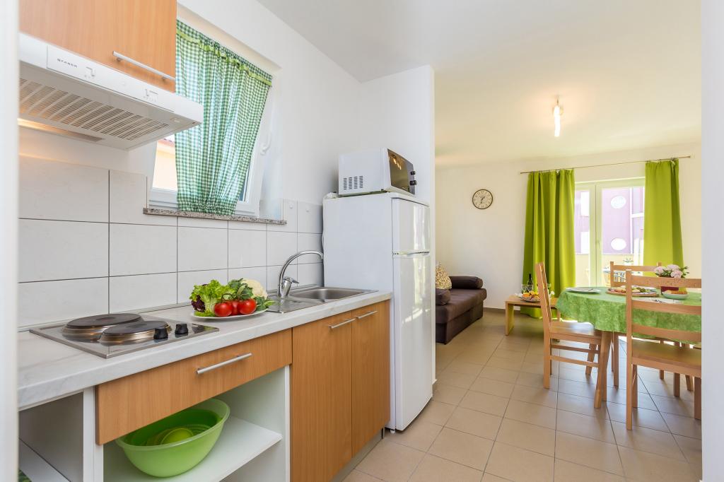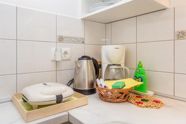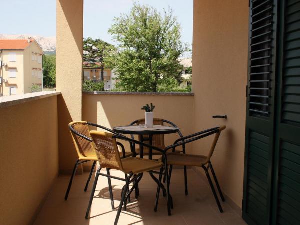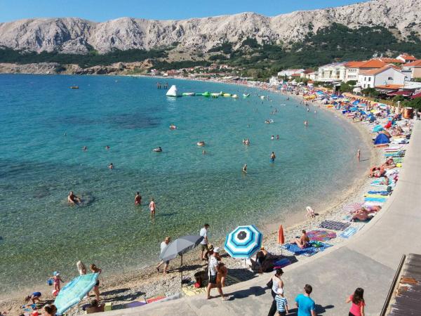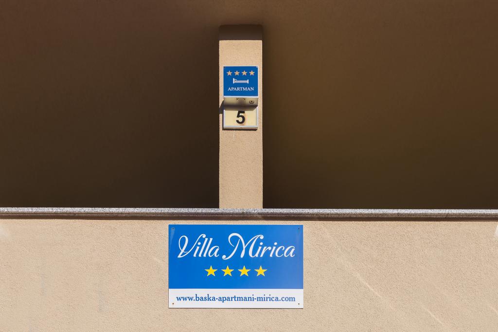 Villa Mirica 4 sterren - beschikt over 4 moderne, volledig en eigentijds ingerichte appartementen (2 en 2). Oppervlakte: 40 m², met een overdekt privéterras van 10 m² in een rustige buurt van Baška met uitzicht op de tuin en een rustige straat. De accommodatie ligt op 5 minuten lopen van Vela Beach en alle voorzieningen. De prachtige appartementen van Mirica hebben een slaapkamer met tweepersoonsbed, een badkamer met douche, föhn, wasmachine en wasmiddel, een keuken met vaatwasser, koelkast en föhn, een woonkamer met slaapbank en een matrastopper van 5 cm voor extra comfort, een strijkplank en strijkijzer, een broodrooster, een waterkoker, een magnetron en een heteluchtfriteuse. Eén appartement biedt plaats aan maximaal 4 personen. De appartementen zijn modern ingericht en beschikken over gratis wifi, gratis parkeergelegenheid met zonnepanelen, airconditioning, een privéterras, tv, satelliet, kluis, bedlinnen en handdoeken. Alle 4 appartementen zijn identiek en identiek ingericht. Er is een gratis laadstation voor elektrische voertuigen op de parkeerplaats - op aanvraag! In de tuin is een barbecue beschikbaar voor gasten. Een babybedje en kinderstoel zijn op aanvraag beschikbaar.