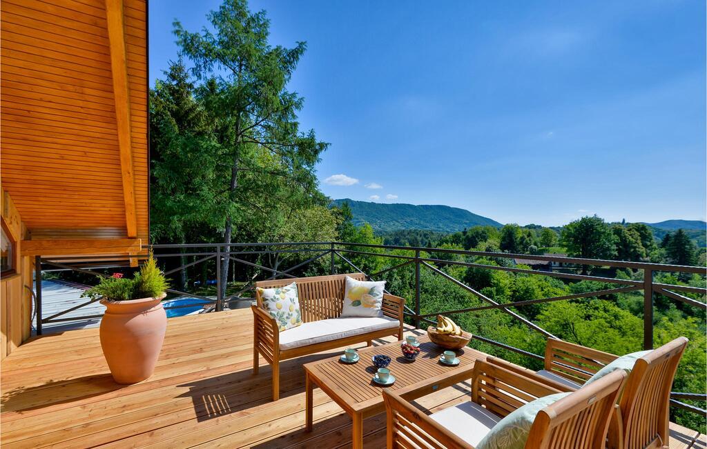 Op de heuvel naast het kasteel Trakošćan ligt dit prachtige vakantiehuis met zwembad en indoor wellness. Het huis is het meest gedecoreerd met zijn uitstekende ligging, op een heuvel van waaruit het uitzicht reikt tot het nabijgelegen kasteel Trakošćan en het parkbos. Het is ideaal voor een vakantie voor een gezin dat van de natuur houdt. Op de begane grond bevindt zich een indoor wellness met hydromassage en sauna, waardoor het huis in de winter een ideale keuze is en in de zomer verkoeling kunt zoeken in het buitenzwembad. Op de begane grond van het huis is een woonkamer met keuken, eetkamer en badkamer en op de eerste verdieping zijn twee slaapkamers.