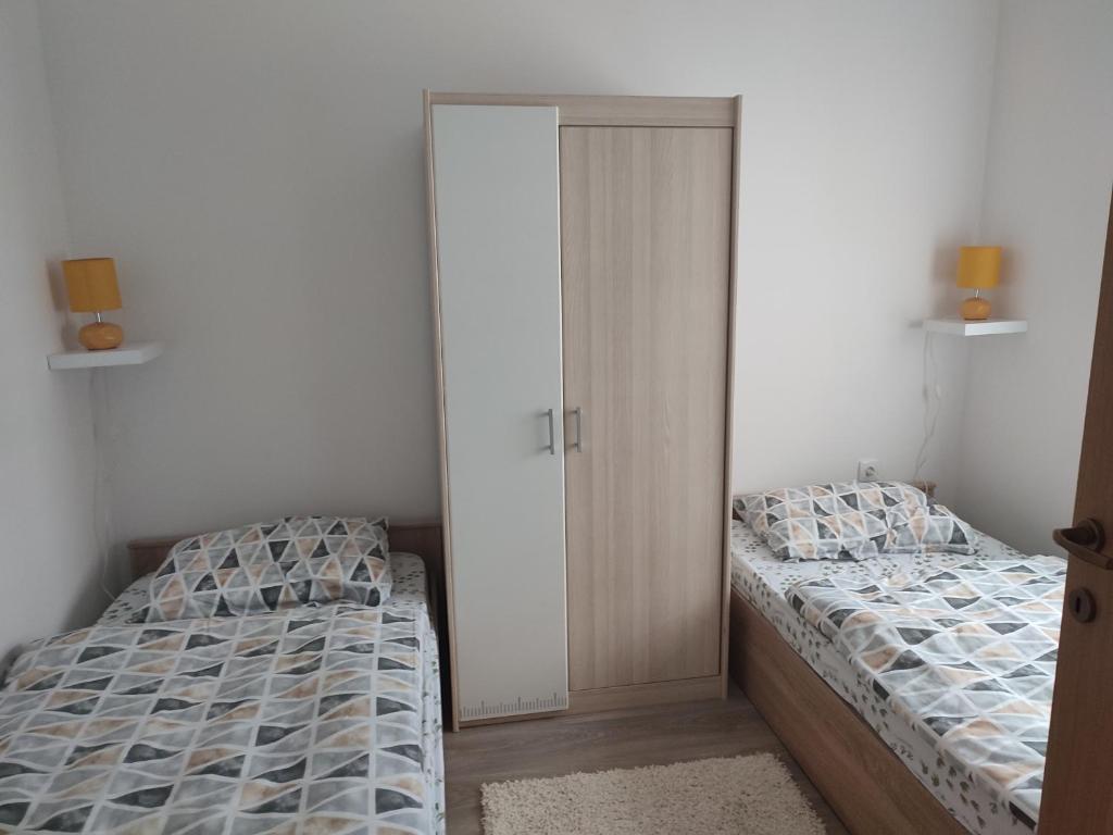 Het appartement met airconditioning bestaat uit 2 slaapkamers, een woonkamer, een volledig uitgeruste keuken met een koelkast en een waterkoker, en 1 badkamer met een douche en een haardroger. Het appartement heeft ook een zithoek, een wasmachine die ook een droger is, wi-fi en parkeergelegenheid voor een voertuig in het gebouw, het heeft ook een terras met een barbecue, wat ook een plek is voor rokers, aangezien het niet toegestaan in het appartement. Er is geen host in het appartement, dus je hebt het hele appartement tot je beschikking.