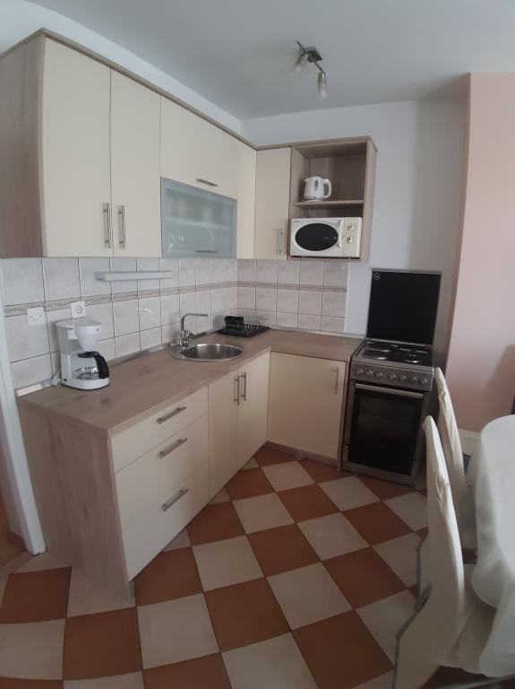 Een geweldige plek om te ontspannen, dicht bij een klein kiezelstrand, het appartement is schoon en gezellig (het is jammer dat "onzichtbare" muggen ons de eerste nacht "verwelkomden", maar je kunt ermee omgaan (door muggenspray te kopen), een geweldig terras waar je kunt zitten (jammer dat het pal naast de straat ligt, maar dat was geen groot probleem). Al met al een geweldige plek om te ontspannen. Oh, onze Duitse herdershonden voelden zich daar heel goed. De gastvrouw was erg aardig en communicatief, geen probleem, ware het niet dat we elk jaar een andere plek bezoeken, we komen graag terug. Volledig uitgeruste keuken, verschoning van bedlinnen en handdoeken na een week, alles zoals het hoort.